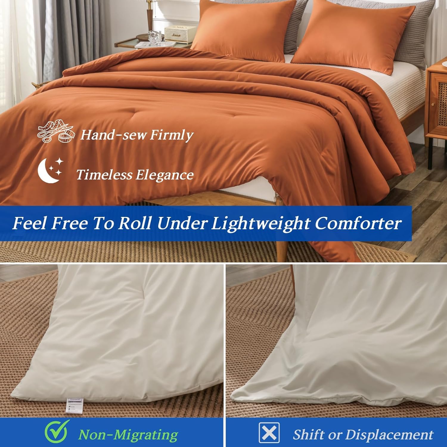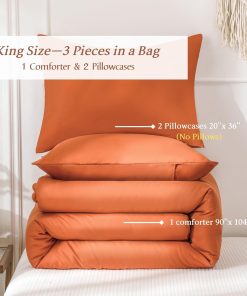 1. ¡Siente la libertad de enrollarte bajo un edredón ligero! Dile adiós al relleno errante con nuestro edredón de cama. Disfruta de un confort sin restricciones mientras cosemos expertamente el relleno a lo largo de los cuatro bordes del edredón, manteniendo perfectamente su elegancia atemporal mientras aseguramos que el relleno se mantenga en su lugar de forma segura. Enrolla y lanza tu edredón king libremente sin preocupaciones. 2. Más suave que suave. Nuestro juego de edredón king lleva la suavidad a un nuevo nivel con su relleno alternativo al plumón de alta resilencia de 260gsm. Experimenta una sensación increíblemente mullida y cómoda que no solo mima tus sentidos, sino que también añade una elegancia lujosa y llena de cuerpo cuando se coloca encima de tu cama. Con el grosor justo, es una elección ideal para disfrutar durante todo el año. 3. Simplicidad en tonos sólidos y tejido resistente al pelo de mascotas. La técnica de relleno fijo en todo el edredón ha reemplazado por completo el acolchado en caja de la generación anterior, elevando tu dormitorio con un aire de elegancia refinada. 4. Cuidado fácil. El juego de edredón queen lavable a máquina te ahorrará tiempo. El relleno alternativo al plumón de alta resilencia sigue esponjoso y cálido incluso después de muchos lavados. Recomendamos lavar a máquina y secar a baja temperatura para prolongar la vida del producto. 5. Lo que obtienes. El set de cama king de 3 piezas incluye 1 edredón king de color naranja (90″x104″) y 2 fundas de almohada (20″x36»). Si no te gustan nuestros productos, ofrecemos un reembolso incondicional. Siempre puedes contactarnos con cualquier pregunta que puedas tener.