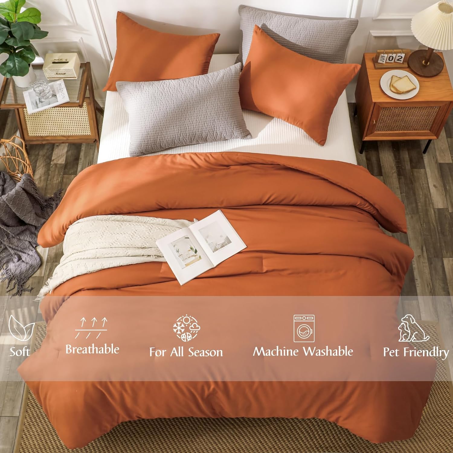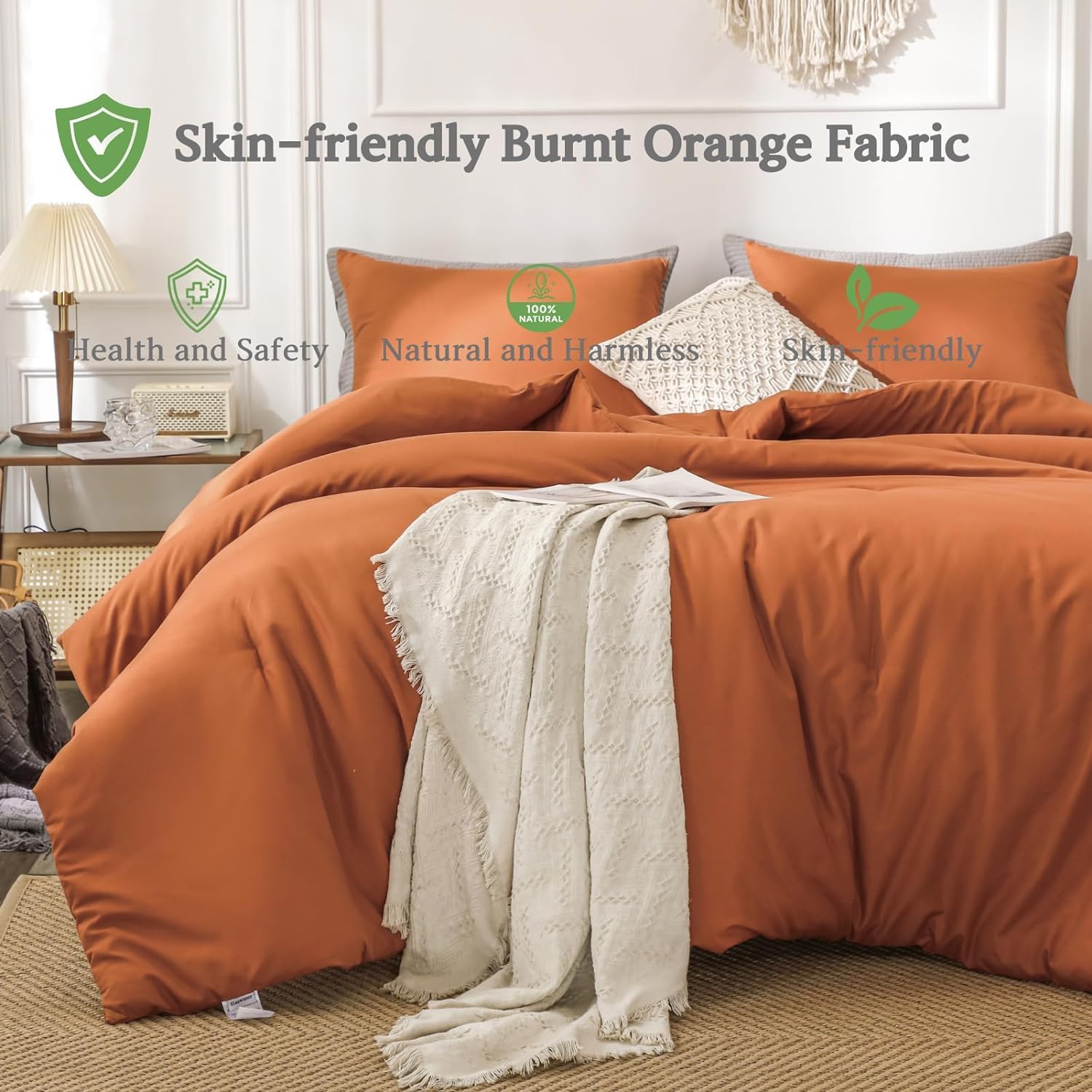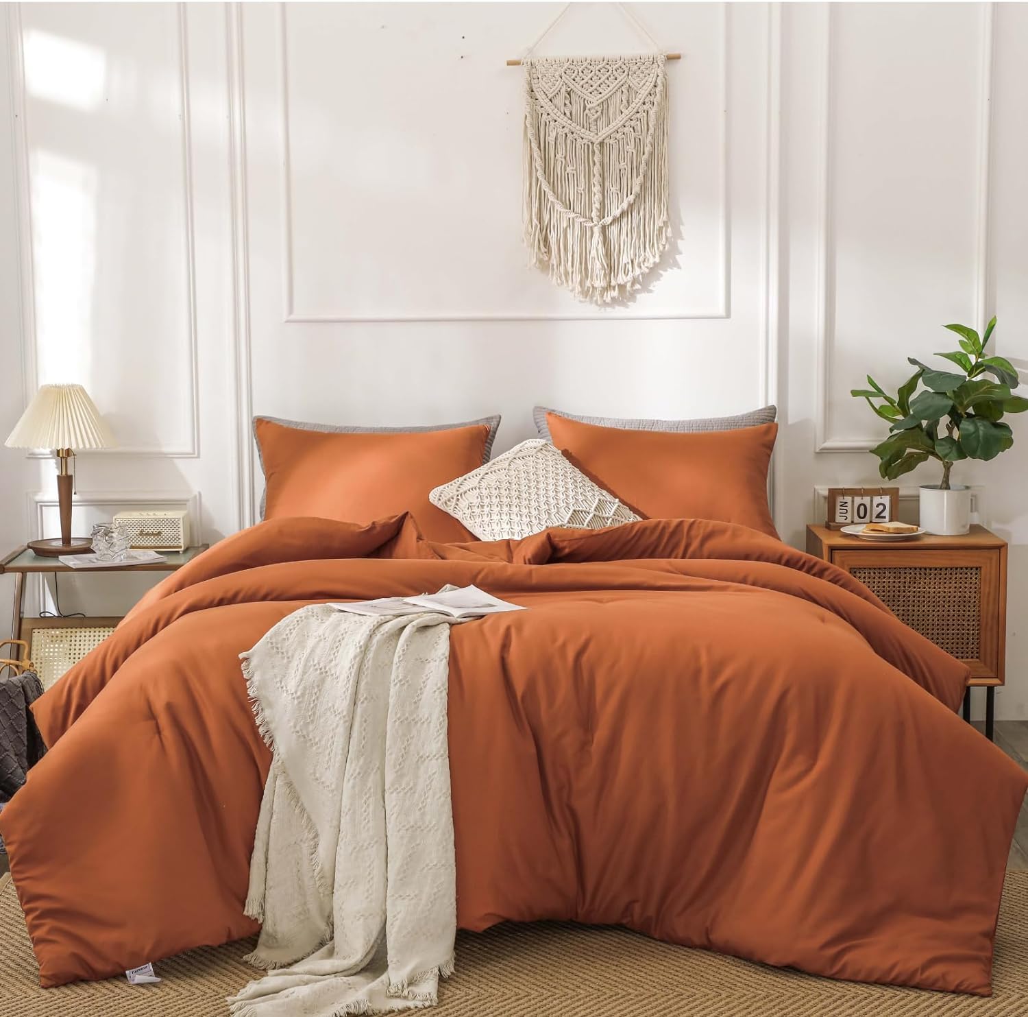 Juego de Edredón de Color Naranja Quemado King Size Hecho a