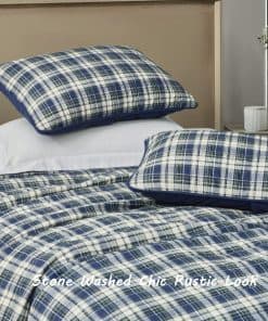 Juega con el aspecto de tu dormitorio con el Juego de Edredón de Cuadros de Algodón Chezmoi Collection Chad de 3 Piezas. Este juego de edredón incluye un edredón y dos fundas de almohada diseñadas en un tamaño King extra grande para mayor cobertura. El diseño clásico de cuadros le da a tu dormitorio un toque atemporal, con la opción reversible de un color azul sólido en el reverso para mayor versatilidad. Hecho de algodón 100% lavado a la piedra, este juego de edredón es ligero y duradero, proporcionando un tacto suave y liso que garantiza comodidad transpirable durante todo el año. Lava a máquina con agua fría en un ciclo suave y evita el uso de lejía para mantener la frescura de los colores. Este juego de edredón es la adición perfecta para darle a tu dormitorio un aspecto elegante y acogedor.
