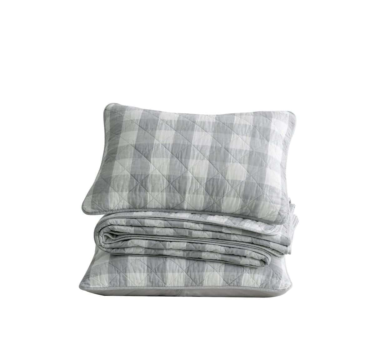 Juego de Edredón de Cuadros Gris Blanco de 3 Piezas Chezmoi
