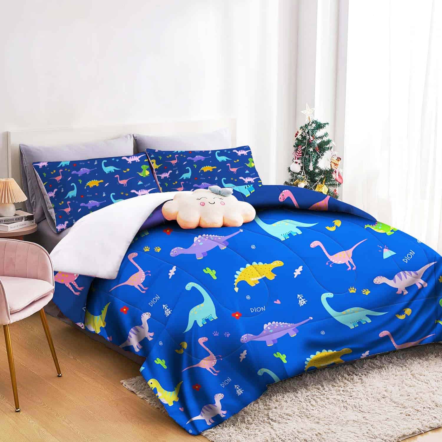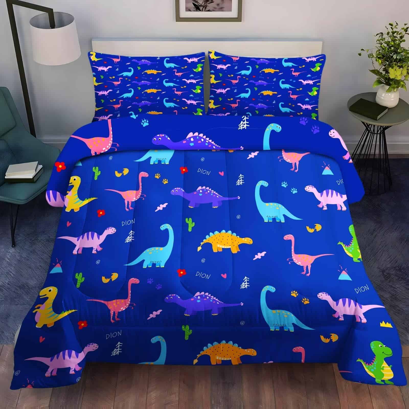 1. Tamaño: El juego de edredón de dinosaurio queen incluye 1 edredón (90×90 pulgadas) y 2 fundas de almohada (20×30 pulgadas). Notas: los insertos de almohada no están incluidos.