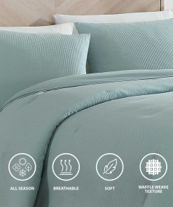 1. OEKO-TEX MADE IN GREEN es una etiqueta rastreable para productos que han sido fabricados en instalaciones respetuosas con el medio ambiente y en condiciones de trabajo seguras y socialmente responsables. La etiqueta MADE IN GREEN también puede tranquilizarle de que este producto está hecho de materiales que han sido probados para sustancias nocivas. 2. Un diseño atemporal de tejido de esponja mezclado con una construcción de algodón/poliéster suave y transpirable para crear la textura y peso perfectos, proporcionándole comodidad durante todas las estaciones y todo el año. 3. Este juego de edredón completo de esponja incluye un edredón y dos fundas de almohada de tamaño estándar. 4. Use el edredón por sí solo como su cubierta principal o añádalo como una capa adicional para darle a su cama un aspecto lujoso y tranquilo. 5. 3 piezas tamaño completo: Edredón: A76″x L86″, Funda: 20″x26″ (2)