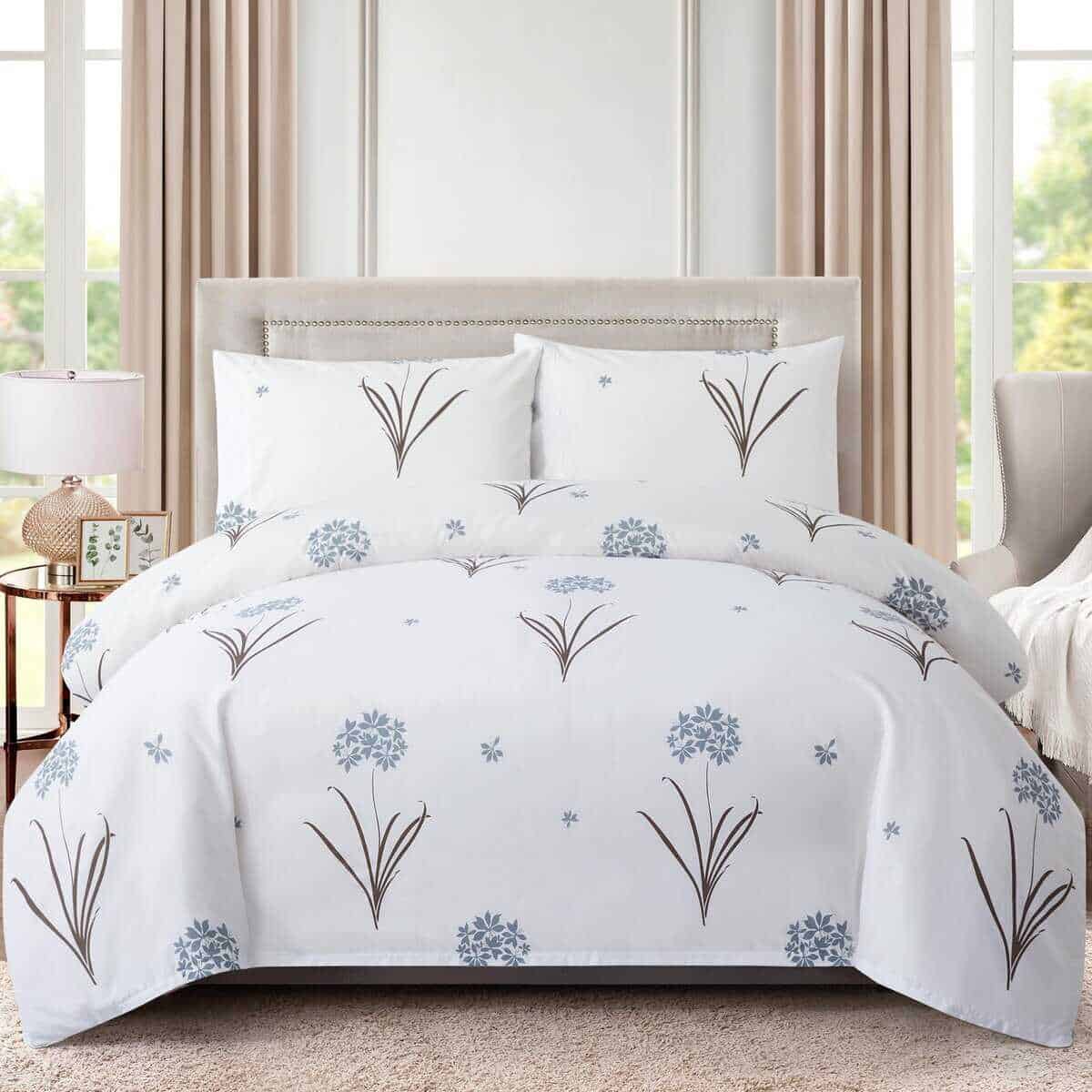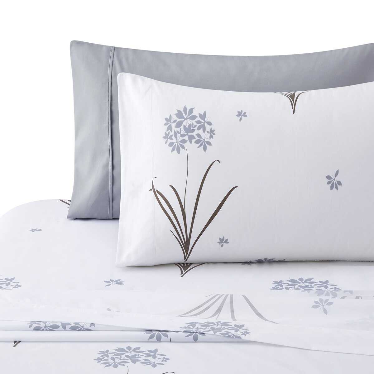 Juego de Edredón de Estampado Floral de Hortensias Gris,