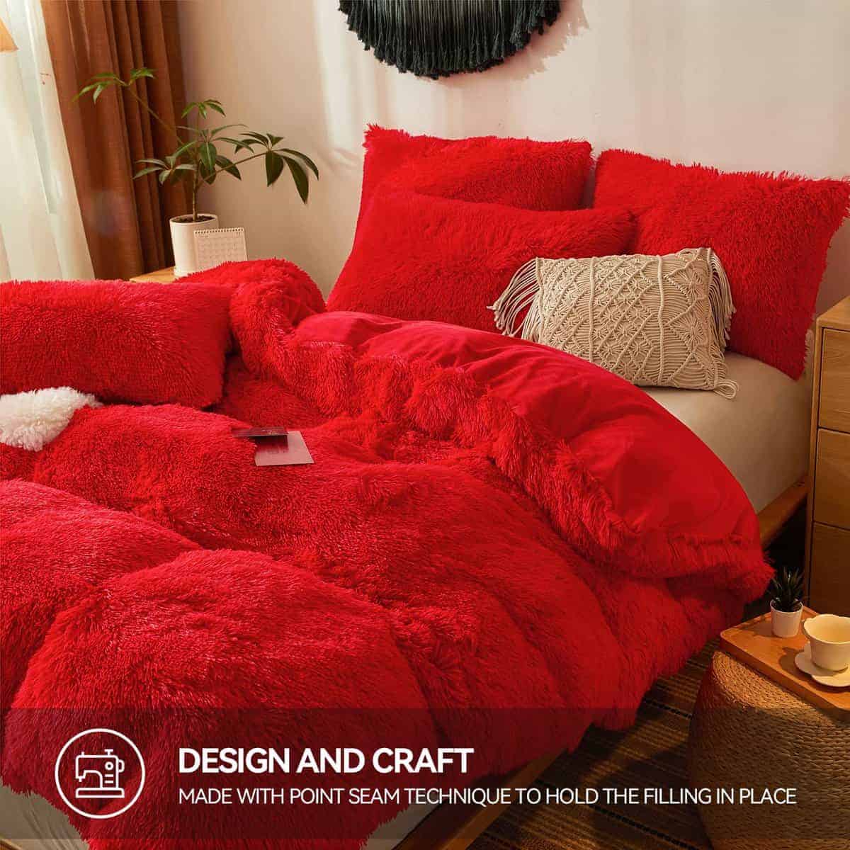 Juego de edredón de felpa suave rojo Queen?Set de edredón
