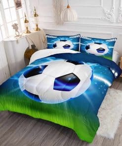 Edredón de cama con estampado de patrón de fútbol 3D, 3 piezas en tamaño queen, el vívido patrón de fútbol hace que parezca que está saliendo del edredón, lleno de aire de deportes y Copa del Mundo, un gran regalo para niños adolescentes y hombres, ¡te sentirás como si estuvieras luchando junto a tu ídolo en el campo!