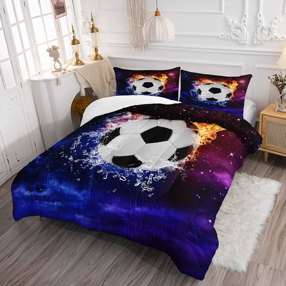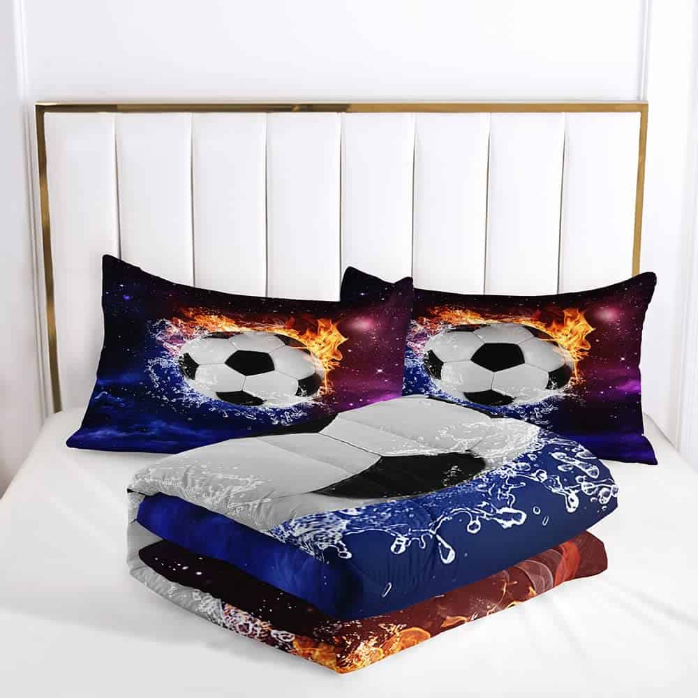 Juego de edredón de fútbol 3D para niños, tamaño queen,