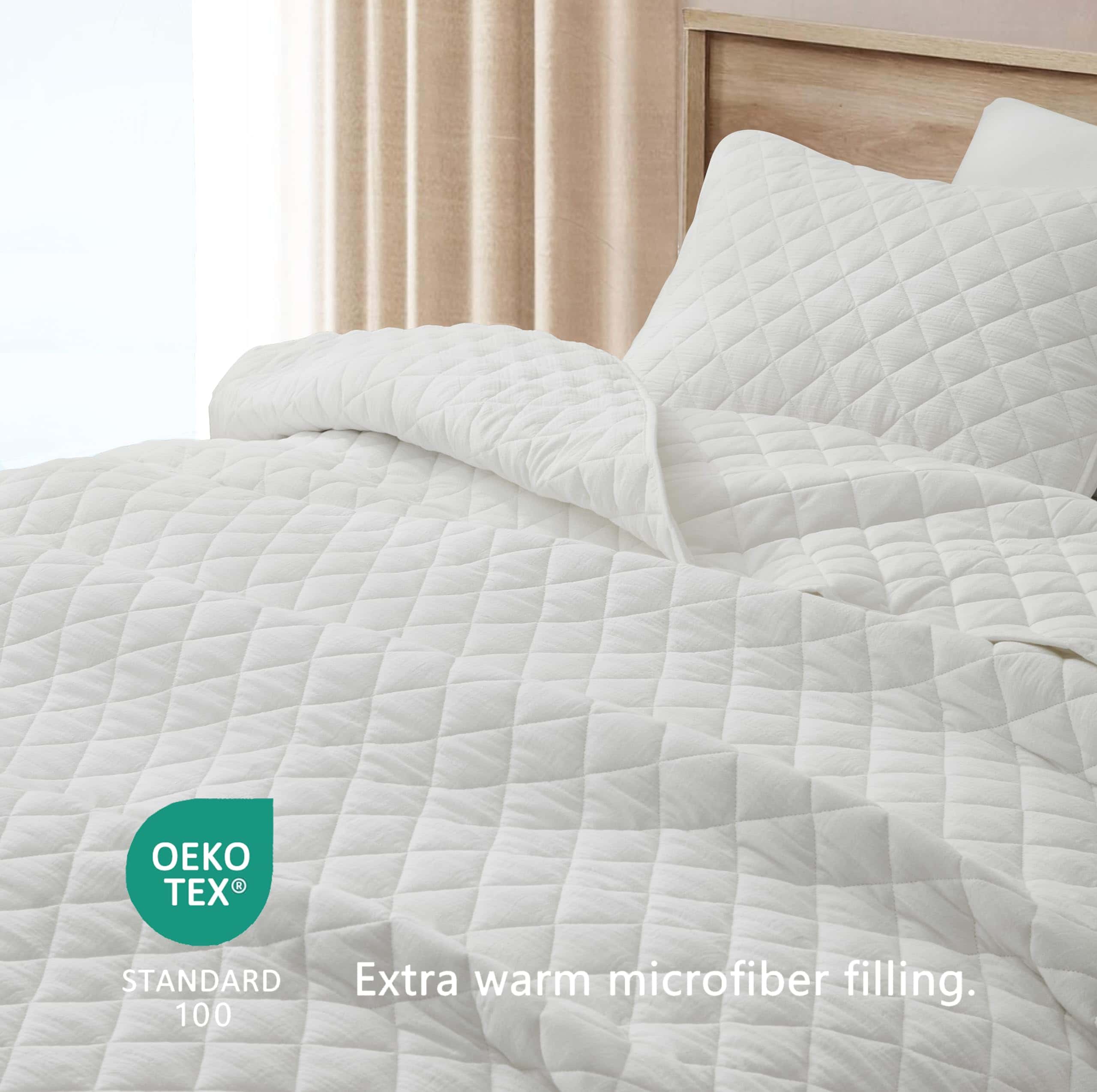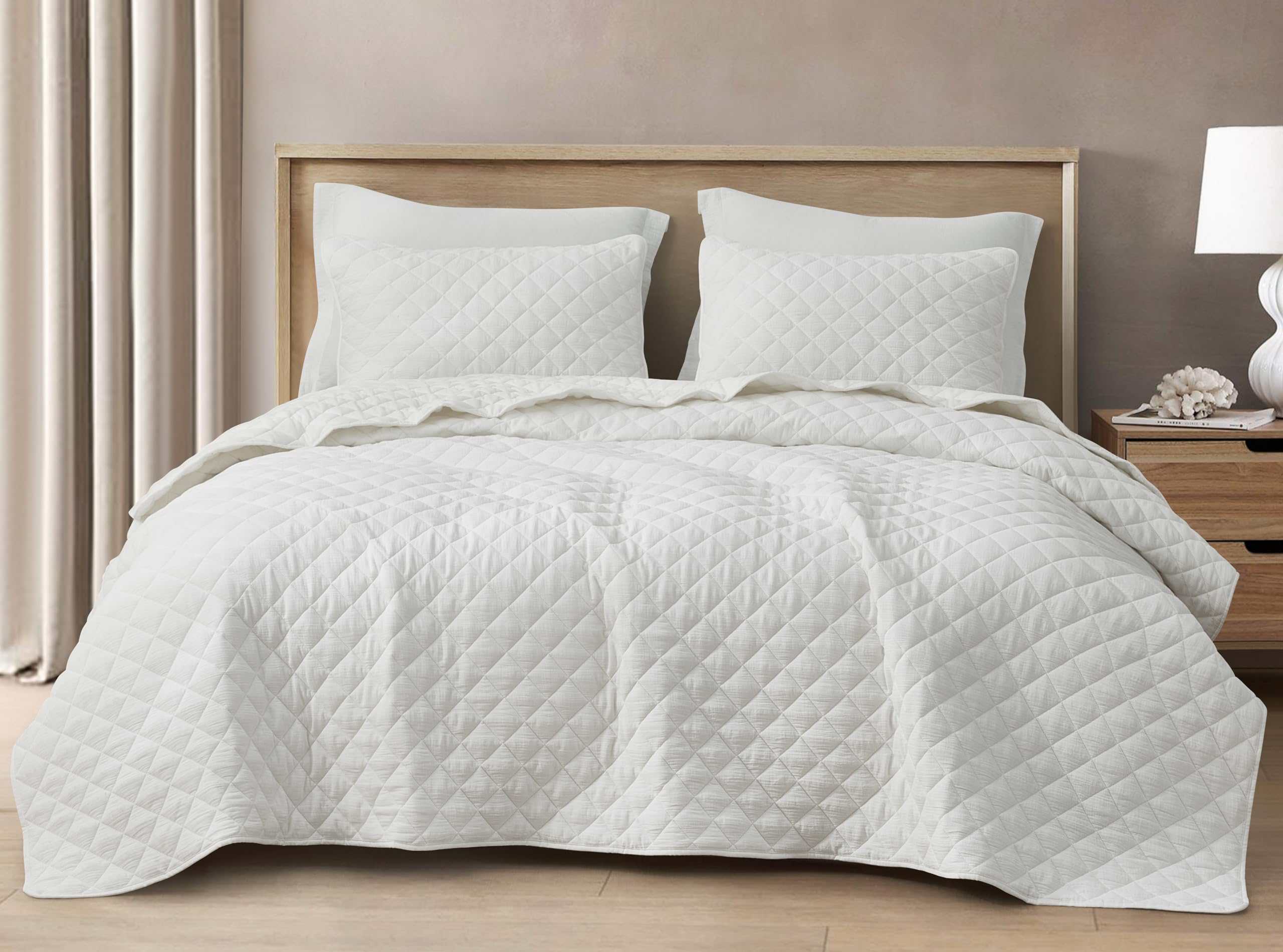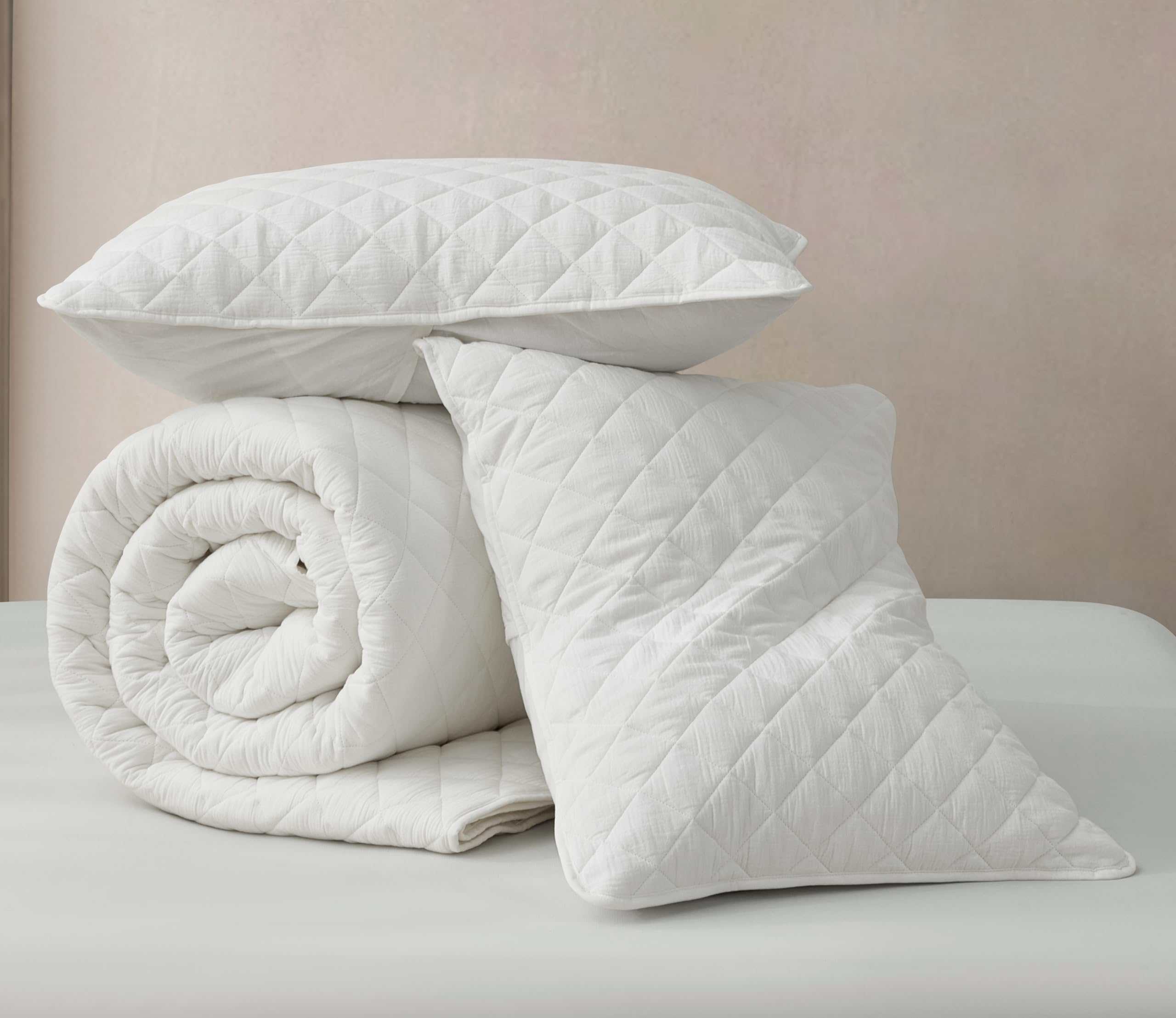 Transforma tu dormitorio en un acogedor refugio con nuestro lujoso Juego de Edredón de Gasa de Algodón de 3 Piezas. Decorado con un acolchado en forma de diamante para un toque clásico. Diseñado para ofrecer máxima comodidad y estilo, este conjunto cuenta con un edredón y fundas de almohada a juego con meticulosa atención al detalle. El frente del edredón está hecho de una tela de gasa de algodón 100%, que ofrece una textura de tejido suelto única y una sensación suave y aireada. Es suave y acogedor como dormir en una nube. La parte posterior está construida con tela de algodón lavado, proporcionando un tacto suave y gentil contra tu piel. Relleno con poliéster de 180gsm, este edredón brinda calidez y comodidad perfectas para uso durante todo el año. Disponible en tonos suaves y relajantes, este conjunto complementa sin esfuerzo cualquier decoración de dormitorio. Eleva tu experiencia de sueño con este juego de edredón premium, diseñado para proporcionar un confort incomparable y una elegancia atemporal.