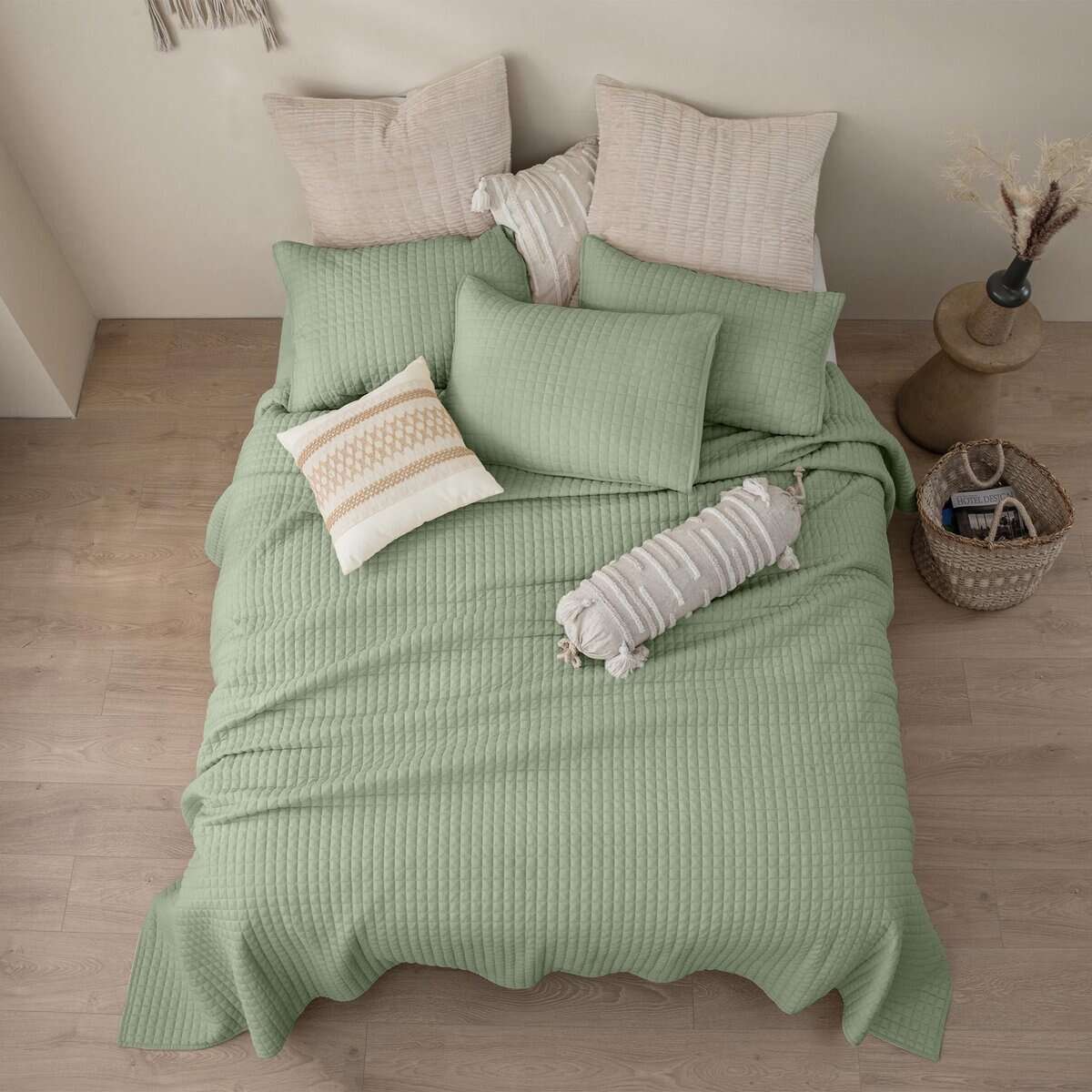 Juego de Edredón de Gofre Sage Maravilloso con Fundas de