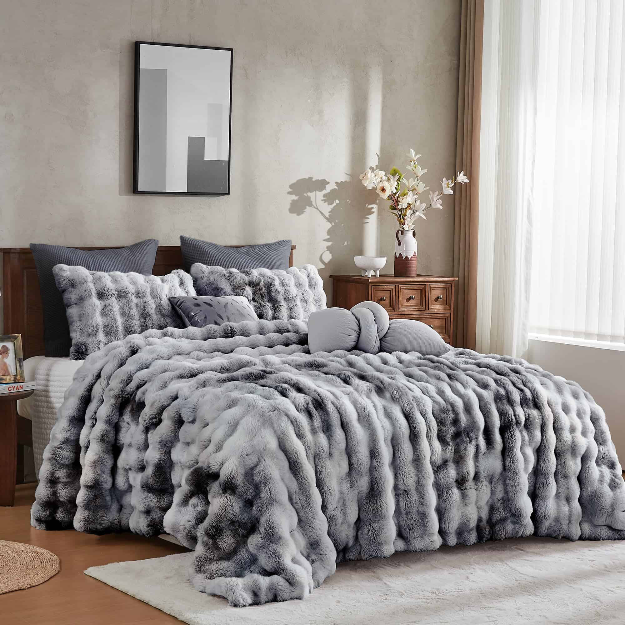 Juego de Edredón de Invierno de Lujo de 3 Piezas de Piel