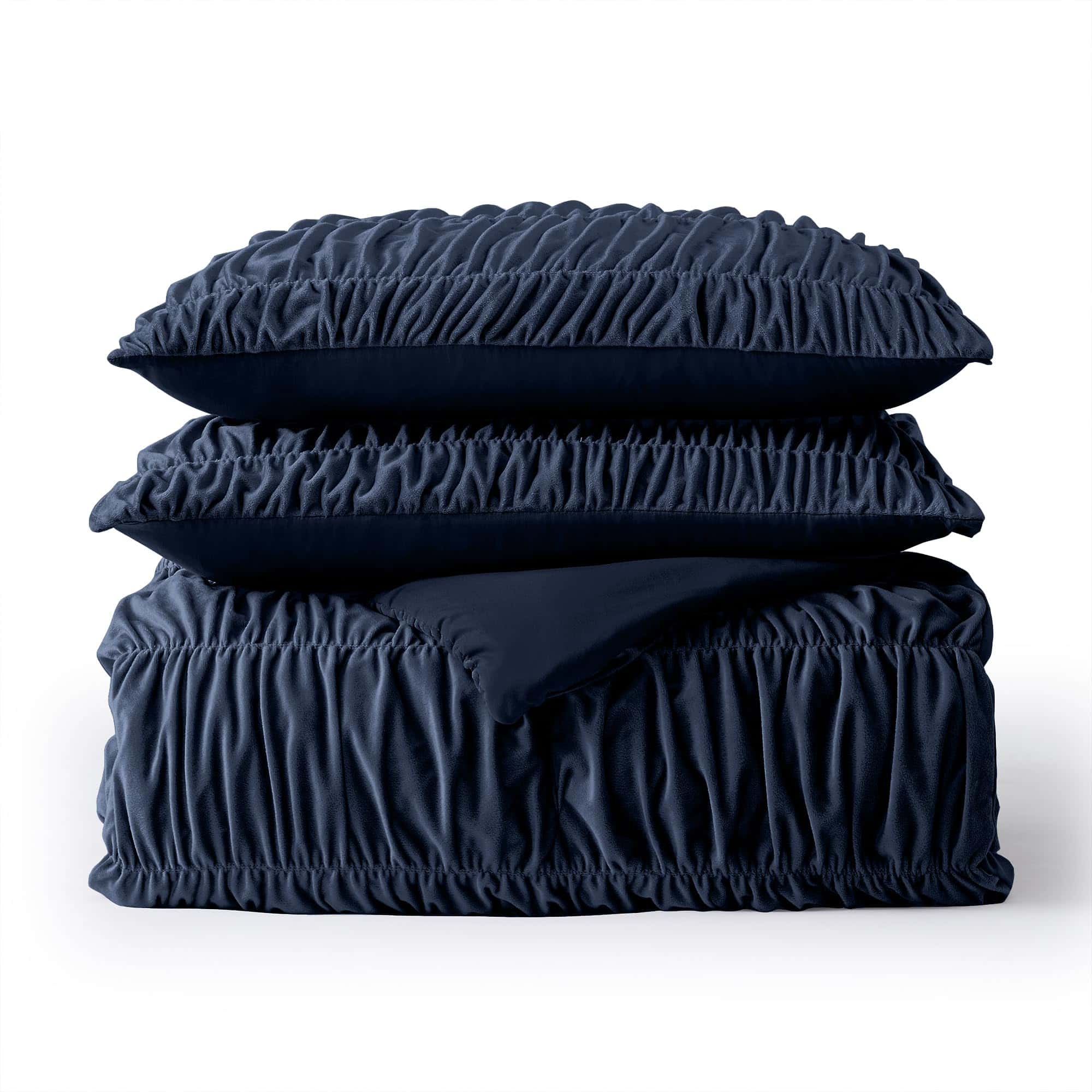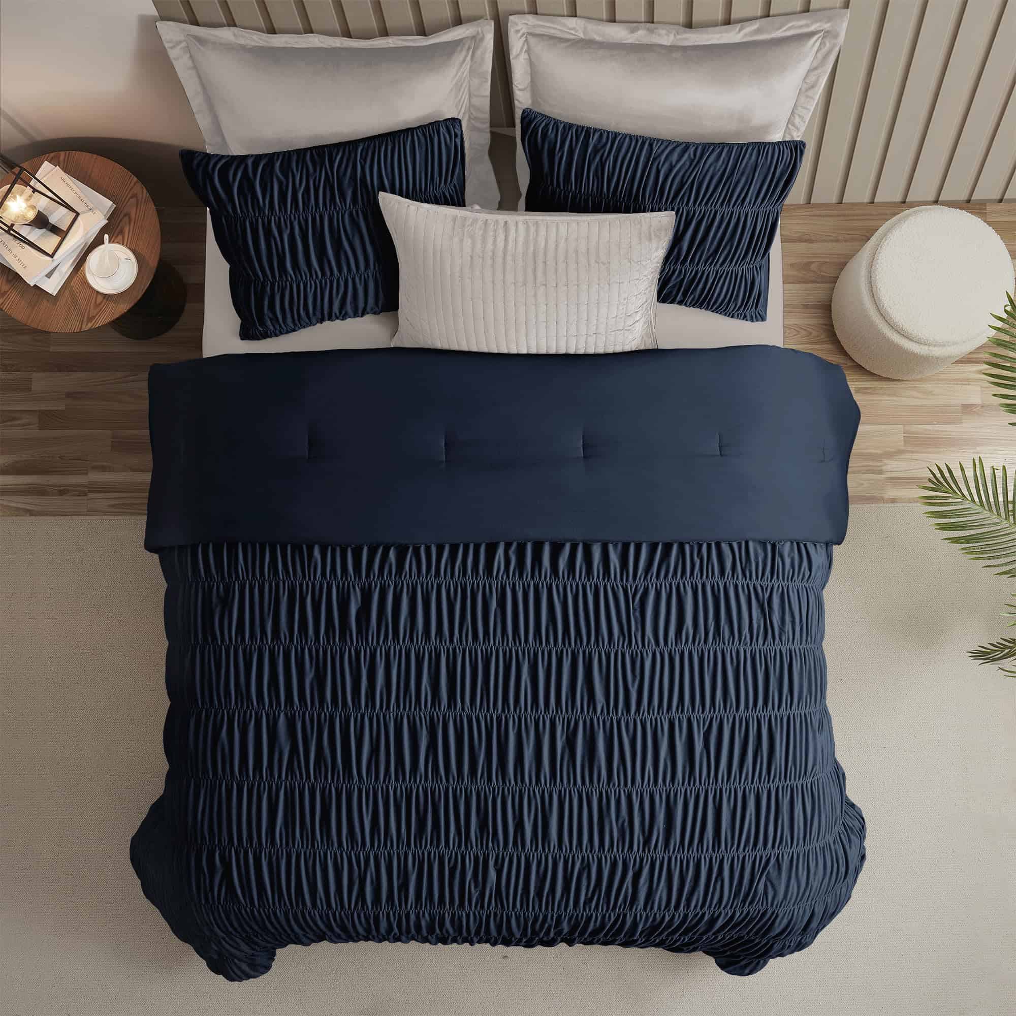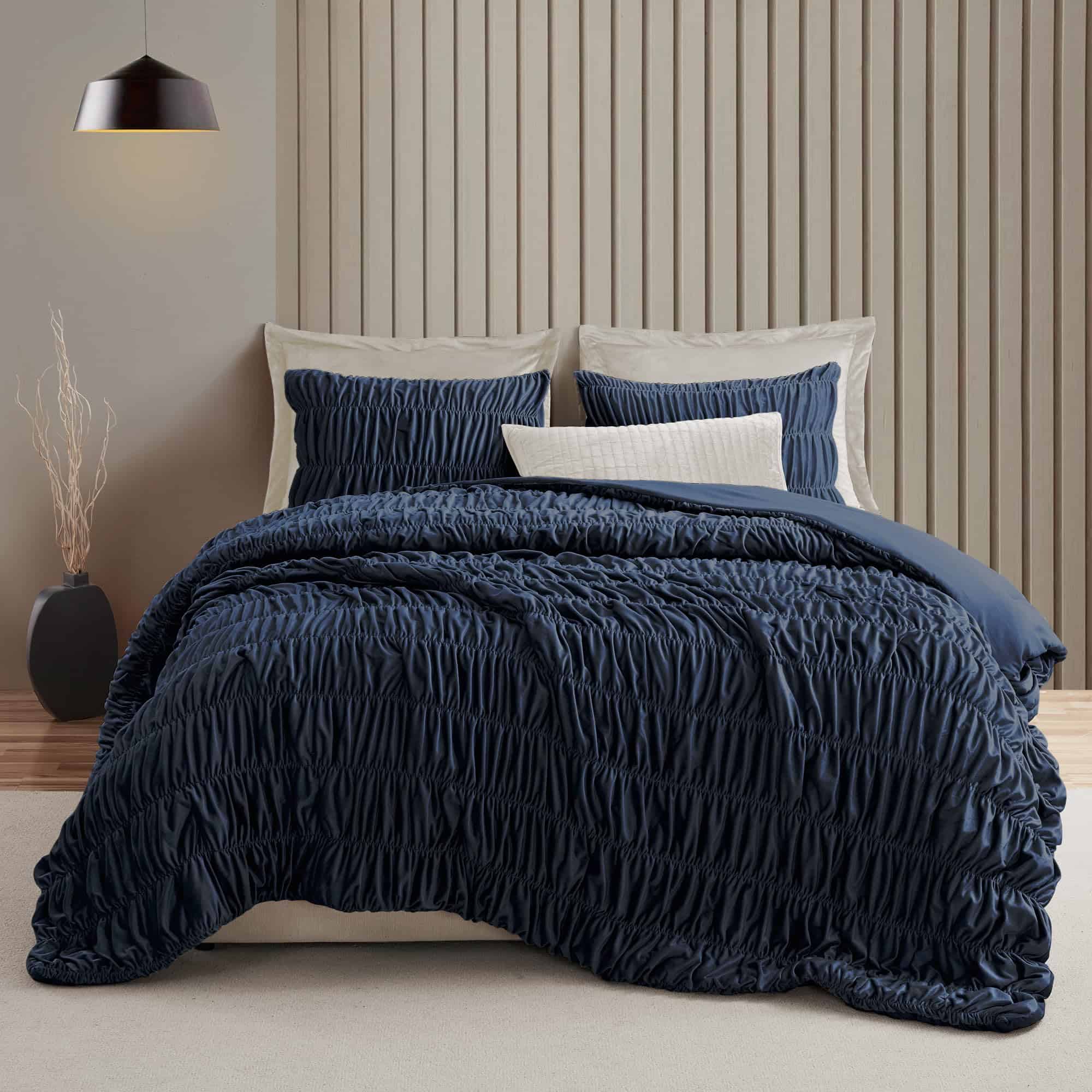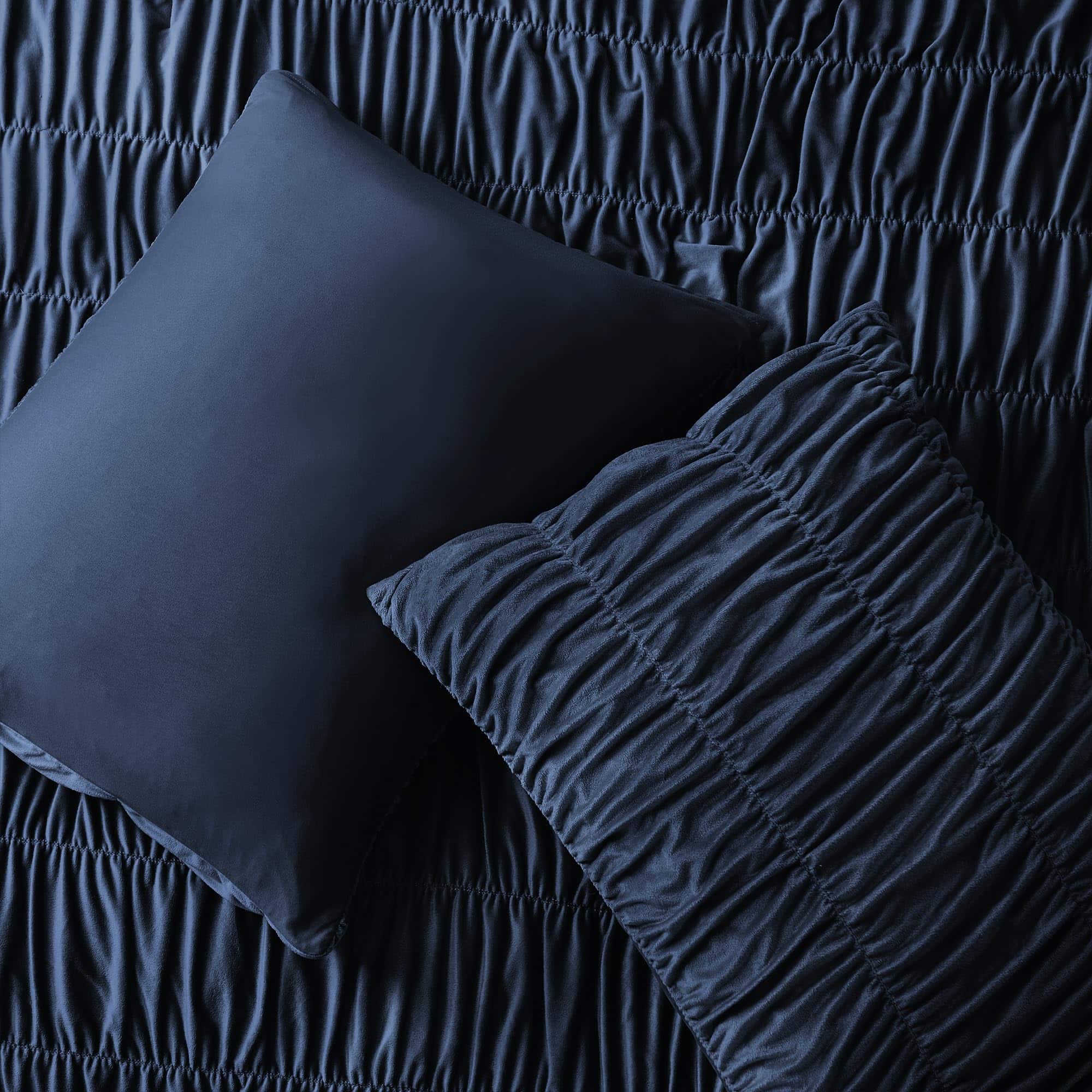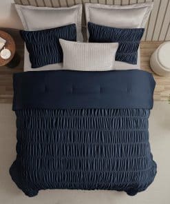 1. Diseño elegante rayado fruncido: La característica sobresaliente de este juego de edredón es su exquisito patrón rayado fruncido, que ofrece una textura refinada que agrega profundidad y dimensión a la decoración de tu dormitorio. Este diseño combina sin esfuerzo sofisticación clásica con estética moderna, creando un ambiente acogedor pero lujoso. Un regalo perfecto para mujeres que aman los interiores del hogar con estilo.