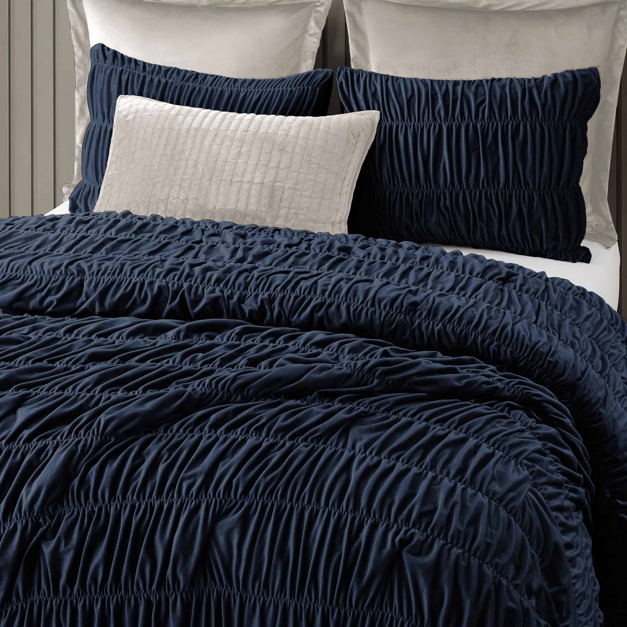 Juego de edredón de lujo de terciopelo fruncido tamaño King