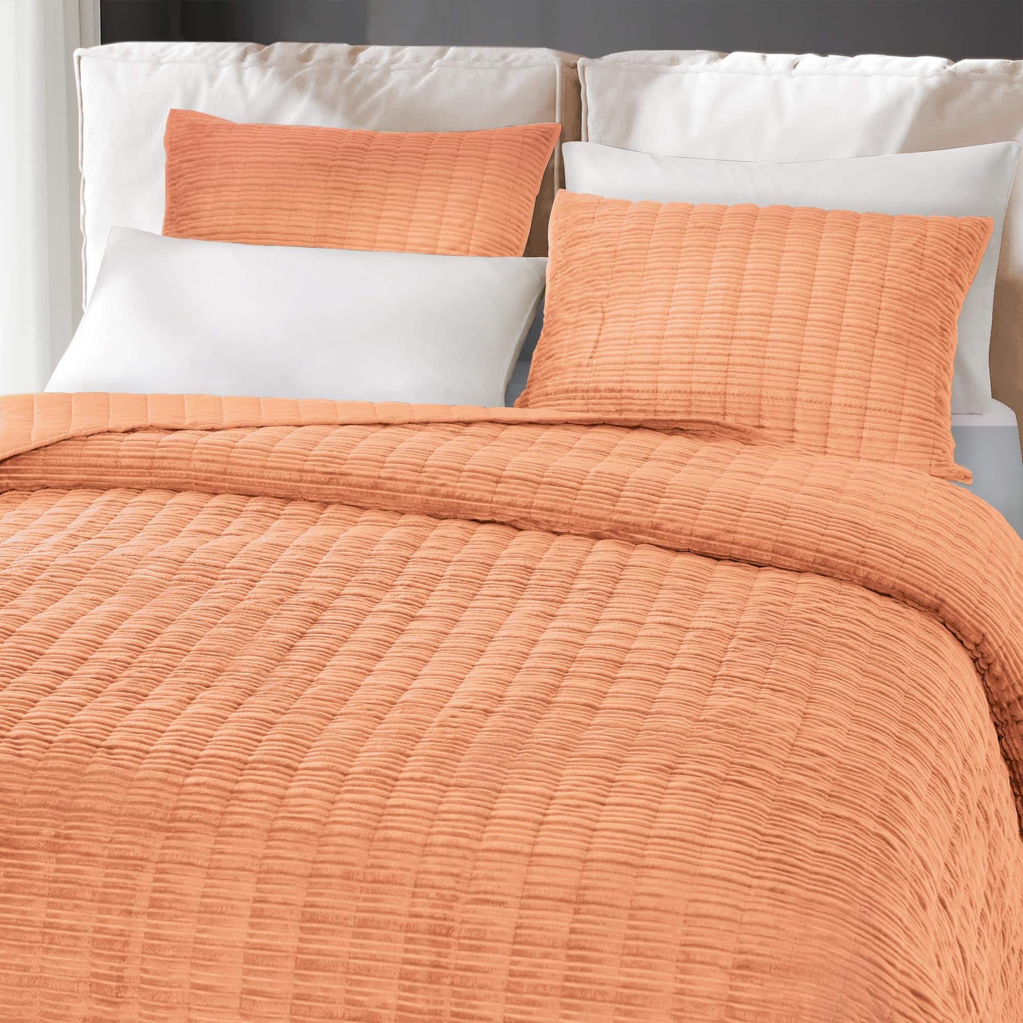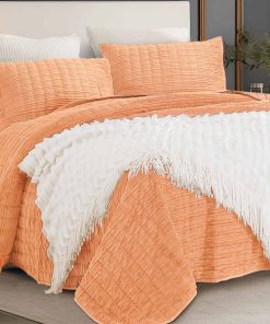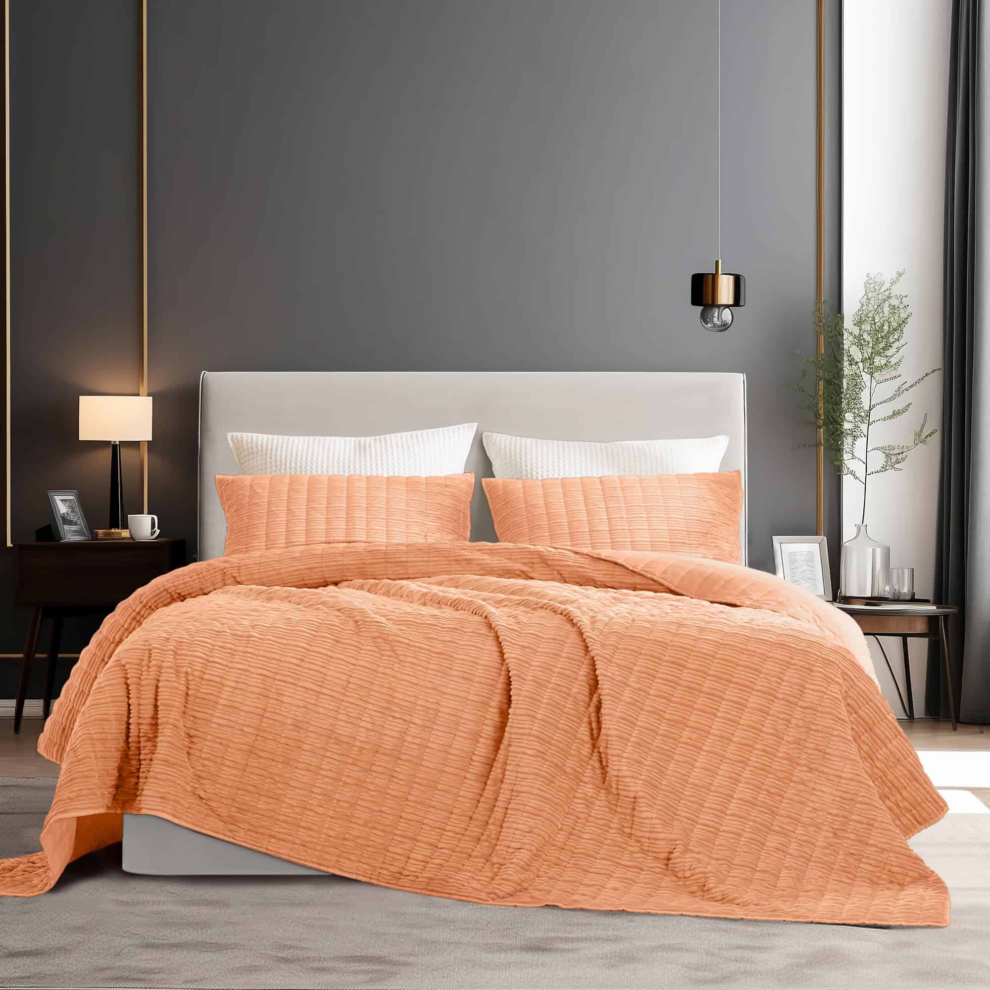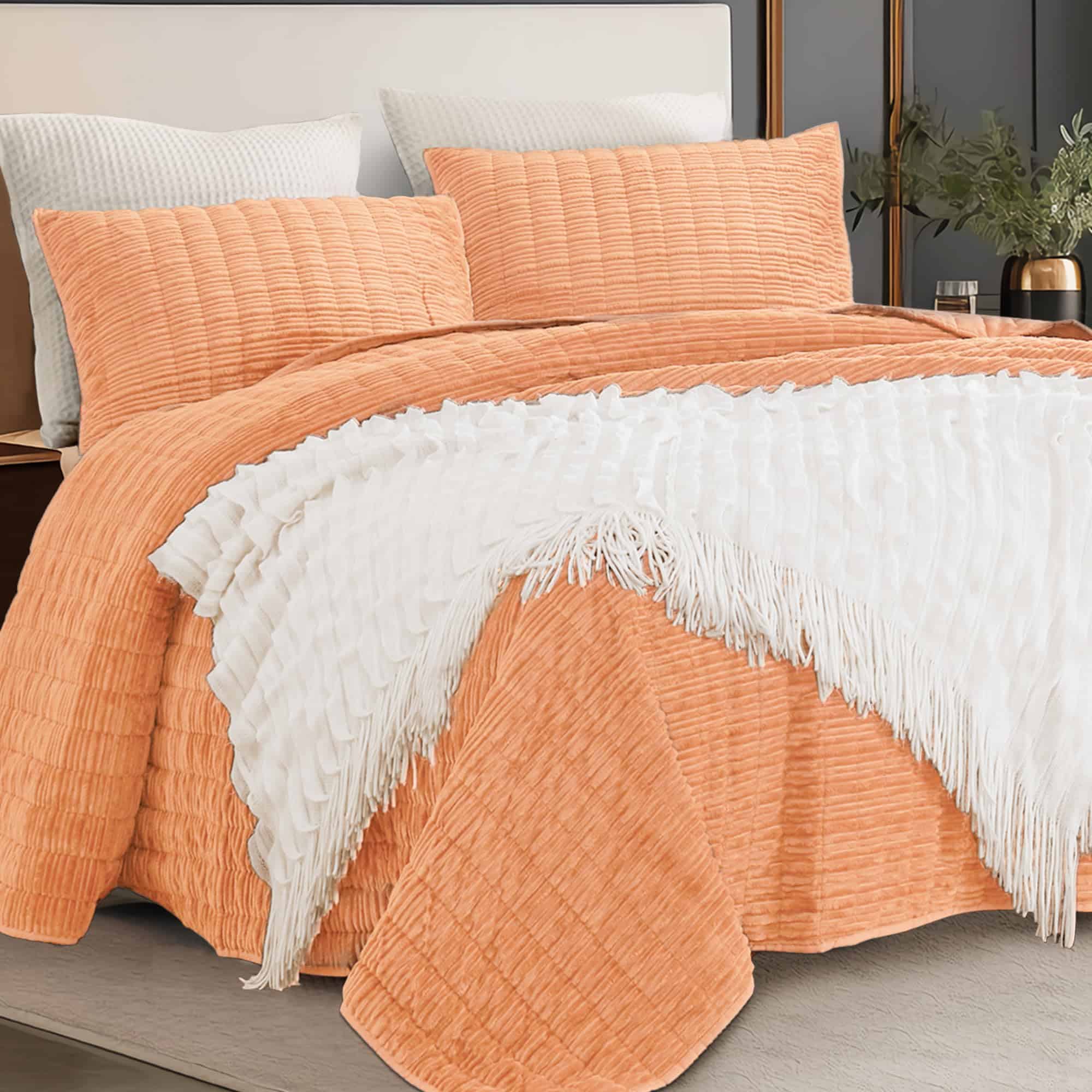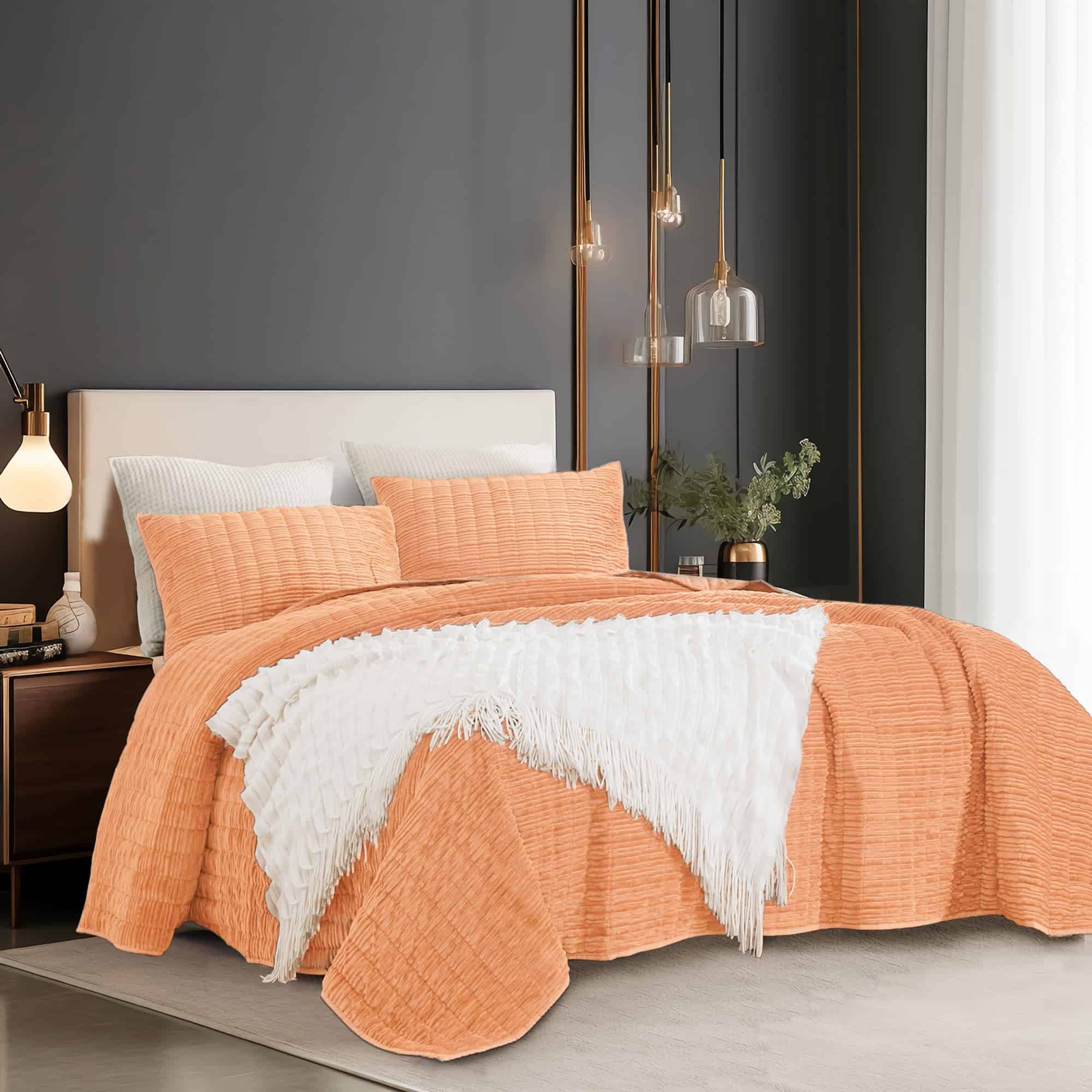 Juego de Edredón de Lujo de Terciopelo King -Naranja Rubor