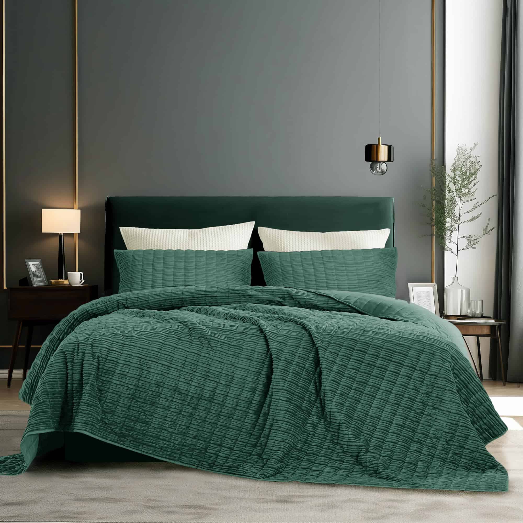 Juego de Edredón de Lujo de Terciopelo Queen -Verde Cazador