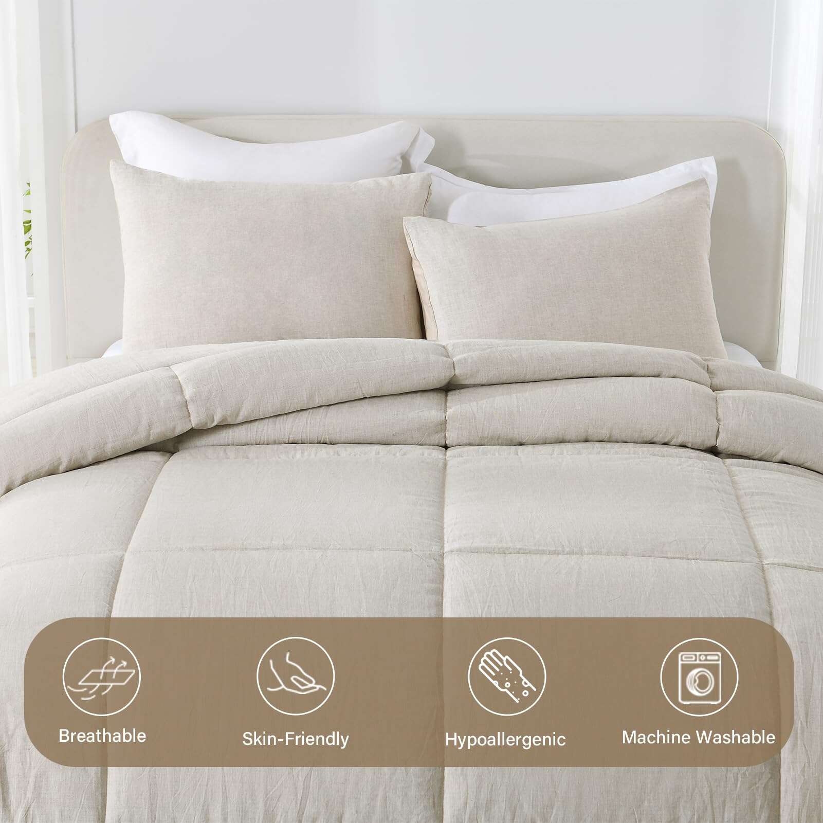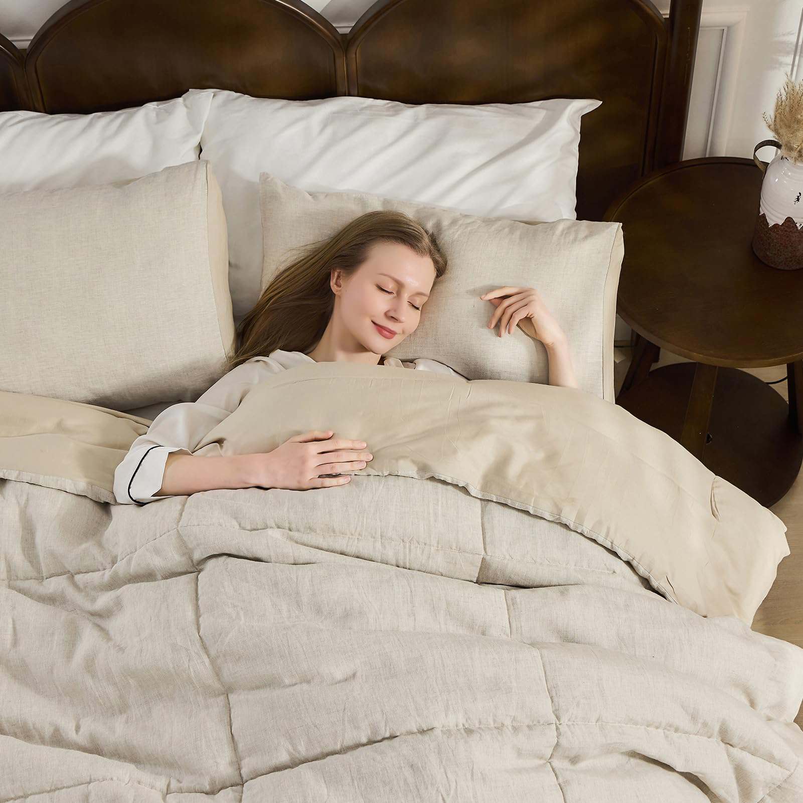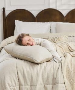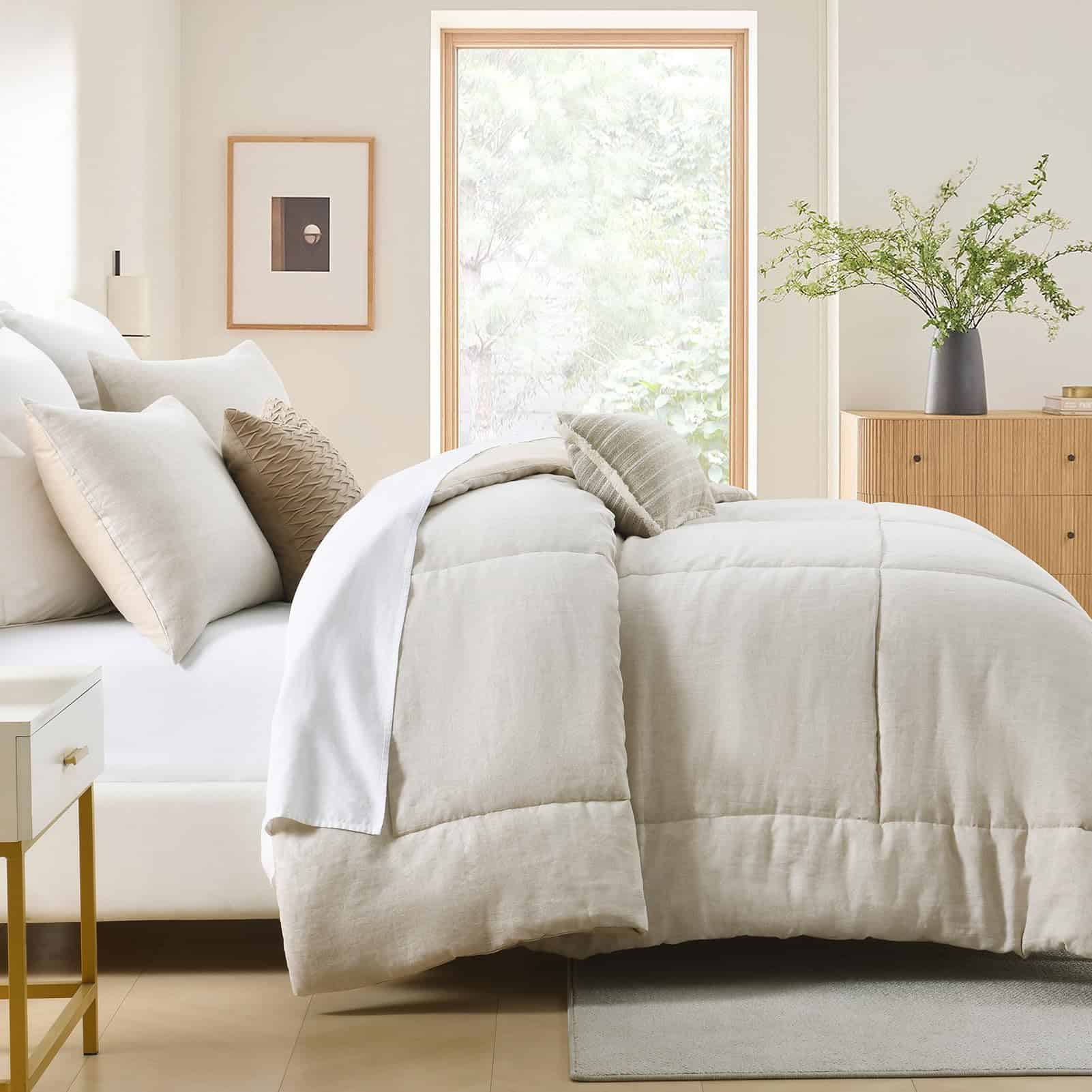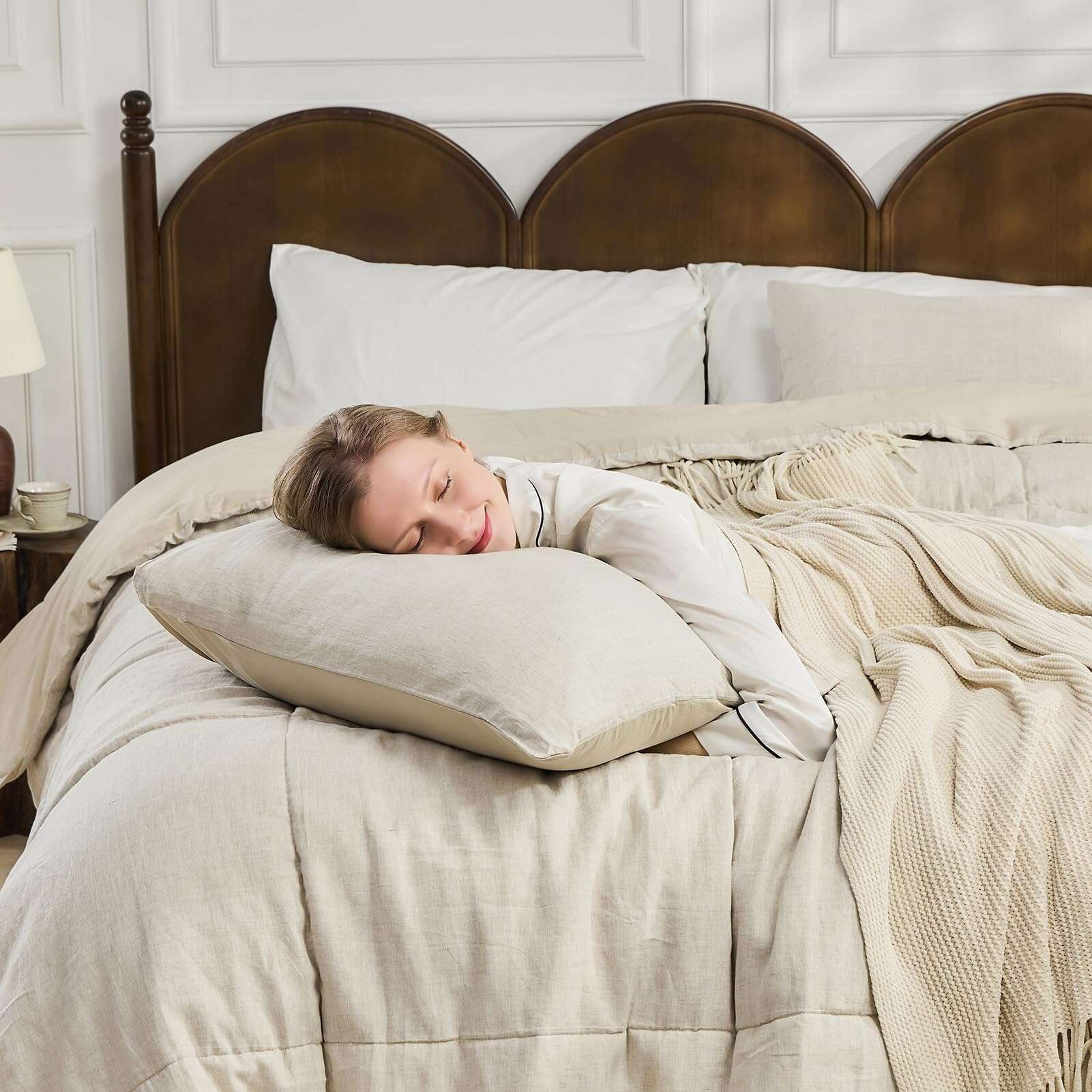 El juego de edredón de lujo Finlonte Queen es la elección perfecta para aquellos que buscan combinar elegancia y comodidad en su dormitorio. La parte delantera de lino puro proporciona una superficie natural y transpirable, ideal para garantizar un sueño reparador durante todo el año. En contraste, la parte trasera de algodón suave y duradero ofrece una sensación de lujo y comodidad extra. El relleno de poliéster de alta calidad garantiza un confort excepcional y calidez en las noches más frías. El diseño clásico de cuadros minimalista en color lino crea una atmósfera discreta pero lujosa y elegante en cualquier habitación. Las delicadas costuras y los exquisitos detalles de fabricación agregan un atractivo visual sin igual a este juego de edredón. Con un tamaño de 90″x90″, el set incluye 1 edredón queen y 2 fundas de almohada coordinadas de 20″ x 26″ + 2″. El juego de edredón es perfecto para usar durante todas las temporadas, manteniéndote abrigado en invierno y fresco en verano. El diseño acolchado garantiza una distribución uniforme del relleno en el interior del edredón, mientras que las costuras ajustadas evitan que el relleno se desplace, asegurando su durabilidad a lo largo del tiempo. Además, el juego de edredón es fácil de mantener: se puede lavar a máquina en ciclo suave con agua fría y luego secar al sol o planchar para restaurarlo a su estado original. El juego de edredón Finlonte Queen ha sido certificado Standard 100 por OEKO-TEX, lo que garantiza que cumple con los criterios de prueba más rigurosos para productos químicos dañinos, siendo seguro incluso para personas con alergias. Disfruta de un descanso de ensueño con este exquisito y confortable juego de edredón de lujo.