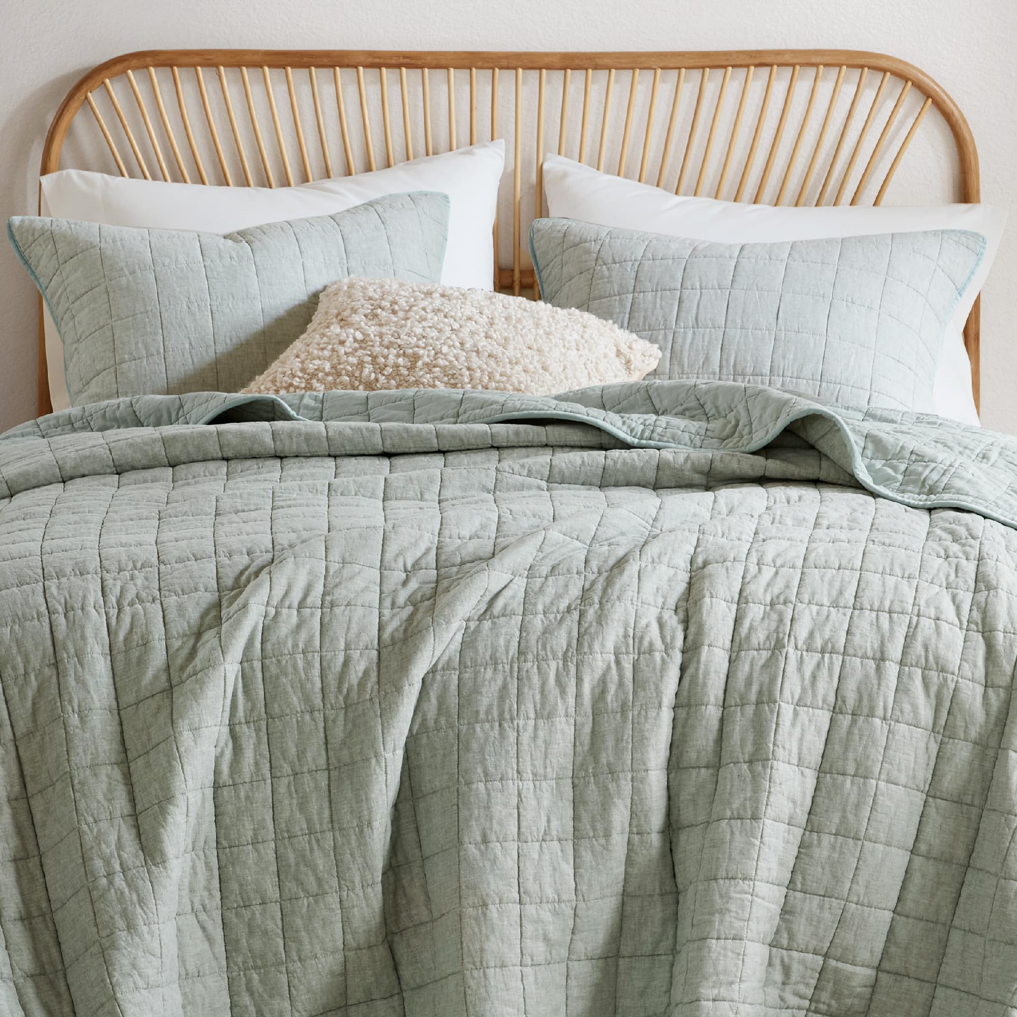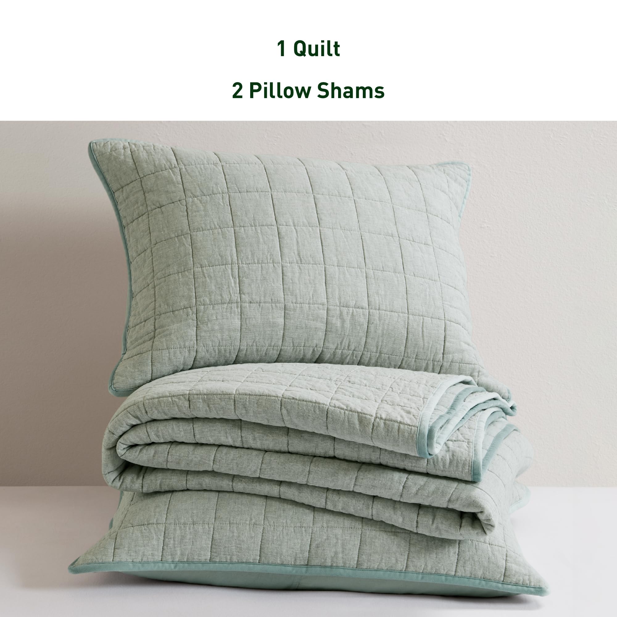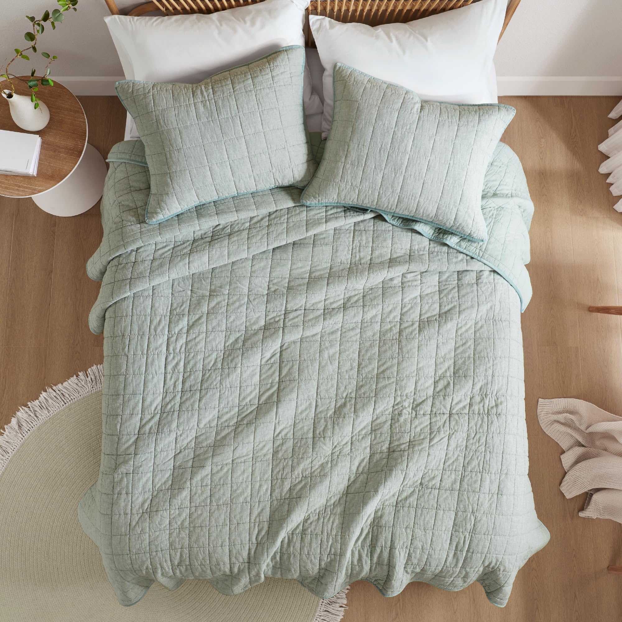 2. Estilo sin esfuerzo: Este juego de edredón de mezcla de algodón y lino encarna una elegancia orgánica y moderna, fusionando perfectamente texturas naturales con simplicidad refinada para un aspecto verdaderamente casual.