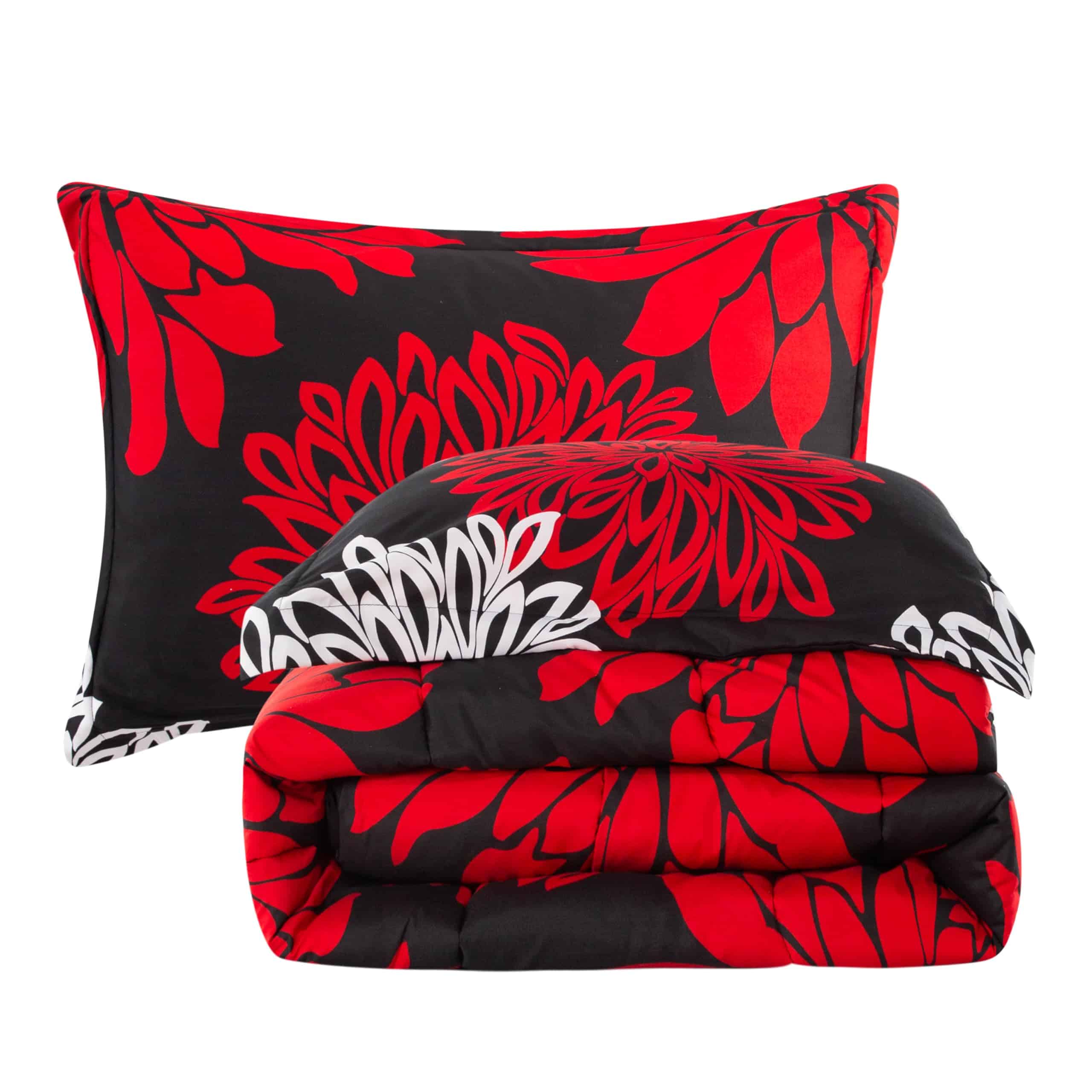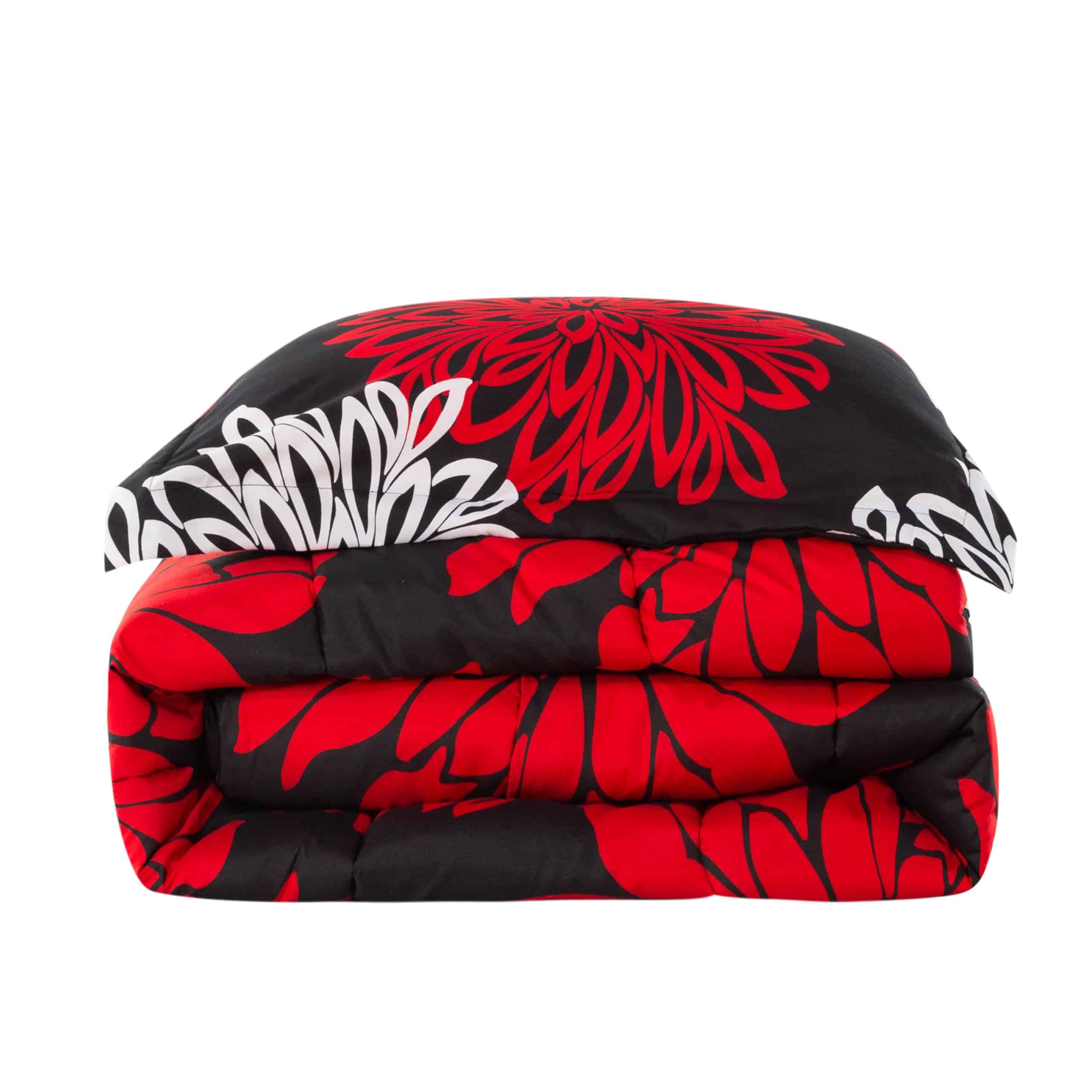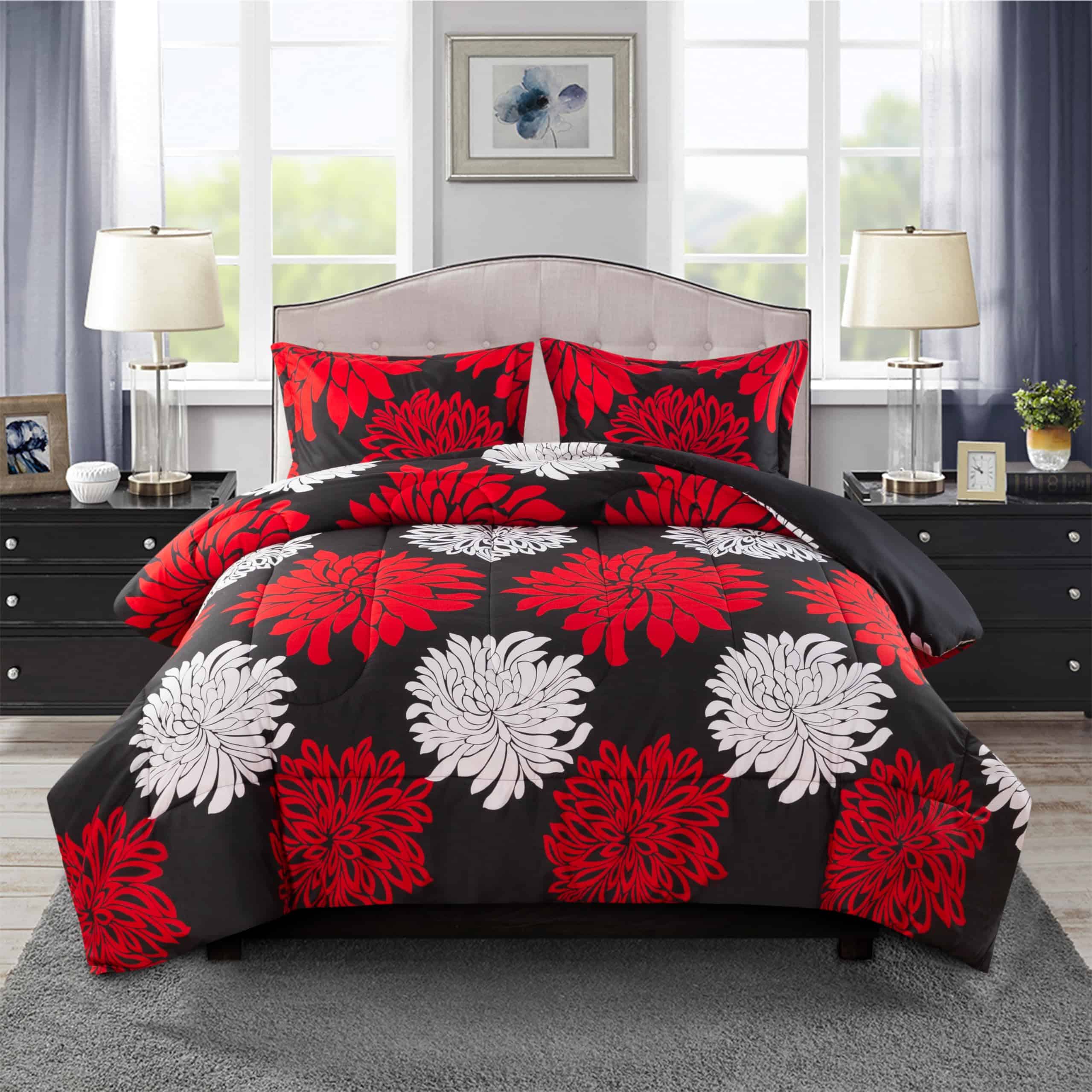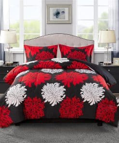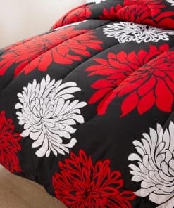 Diseño y características: Este diseño floral moderno tiene una base negra con grandes crisantemos florales rojos y blancos decorados en ella. Diseño impreso a juego en la funda de la almohada. Juego de ropa de cama Marina Decoration Goose Down Alternative con estampado rico. El edredón es extragrande y excesivamente relleno. Diseño de pespunte en cuadros para evitar que el edredón se desplace. Dimensiones: Este juego de tamaño Queen Full incluye 1 edredón de 90 x 90 pulgadas y 2 fundas de almohada impresas de 20 x 26 + 2 pulgadas. Material: 100% poliéster. El edredón está rellenado con 250 GSM de poliéster. La tela está hecha de microfibra cepillada de 90 GSM. Libre de arrugas, ultra suave, transpirable, hipoalergénico y con bolsillo profundo. Sea cómodo durante todo el año con el juego de edredón Marina Decoration. Este juego de cama es una opción de regalo perfecta para su amante, esposa, esposo, padre, madre, vecino, familia y amigos para cumpleaños, Navidad, bodas, aniversarios, inauguraciones, regalos de San Valentín. Puede usar el juego de edredón en casa, dormitorio, cuarto principal, habitación de invitados, habitación de niños, casa de vacaciones, cabaña, cabaña, casa en el lago, casa de montaña, camping, escenario del hogar o decoración de cabaña. Instrucciones de cuidado: Lavable a máquina en frío. Lavar por separado blancos y colores. No usar lejía en los colores. Secar a baja temperatura.