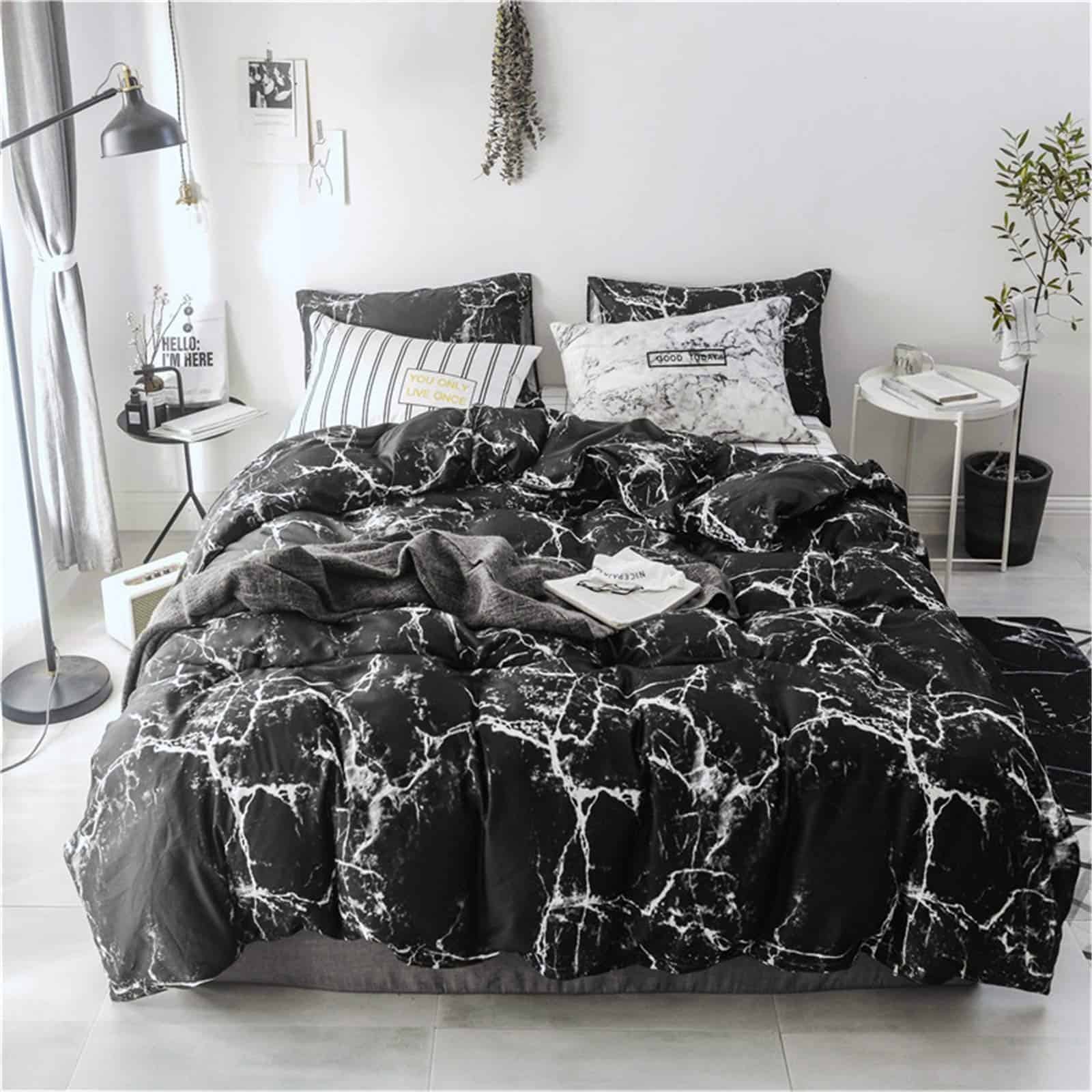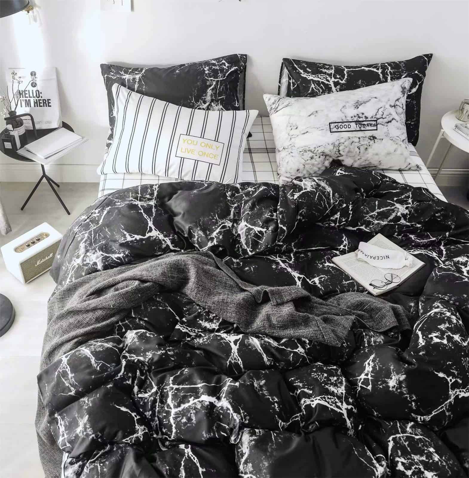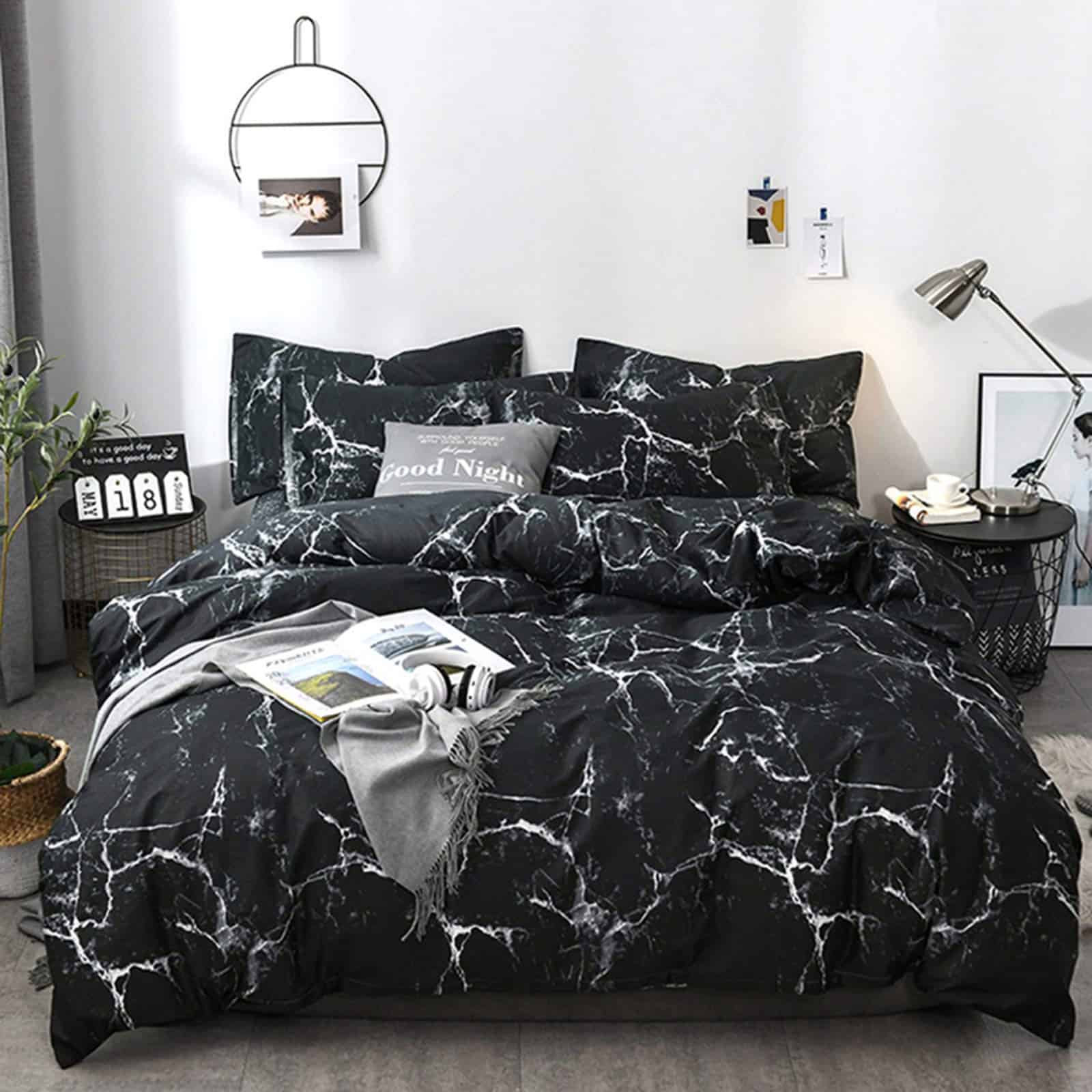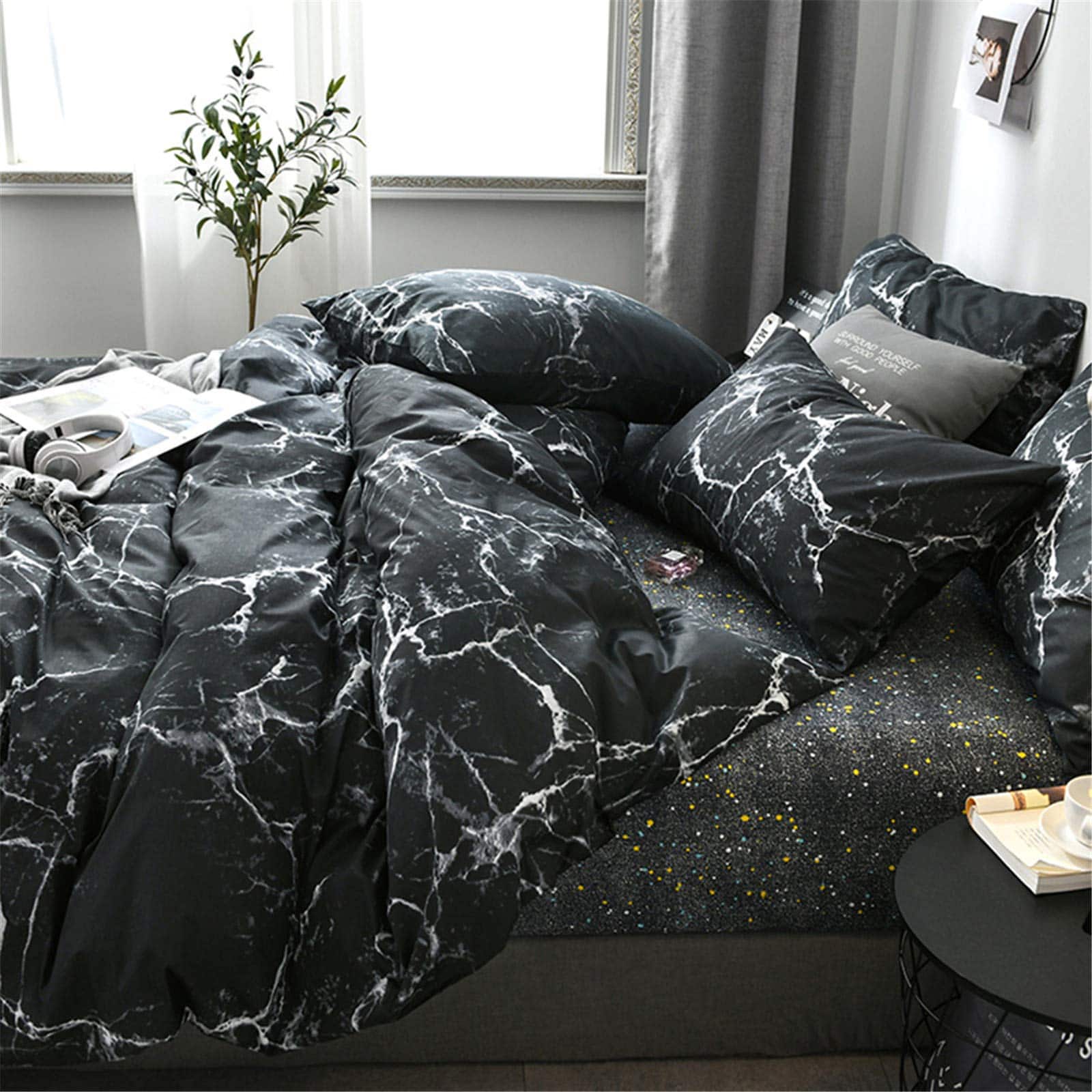 Juego de Edredón de Mármol Negro Cottonight King Size Juego