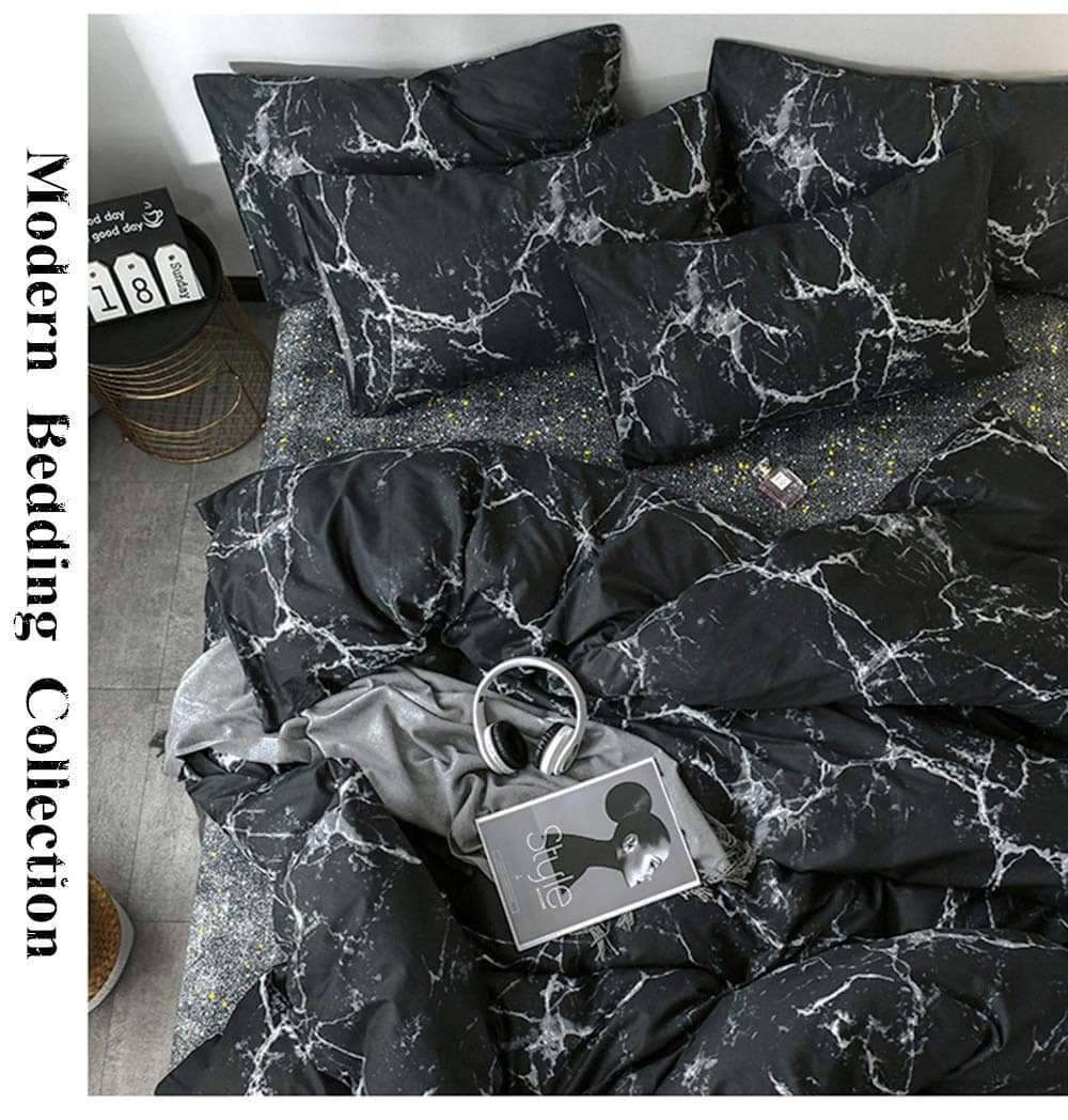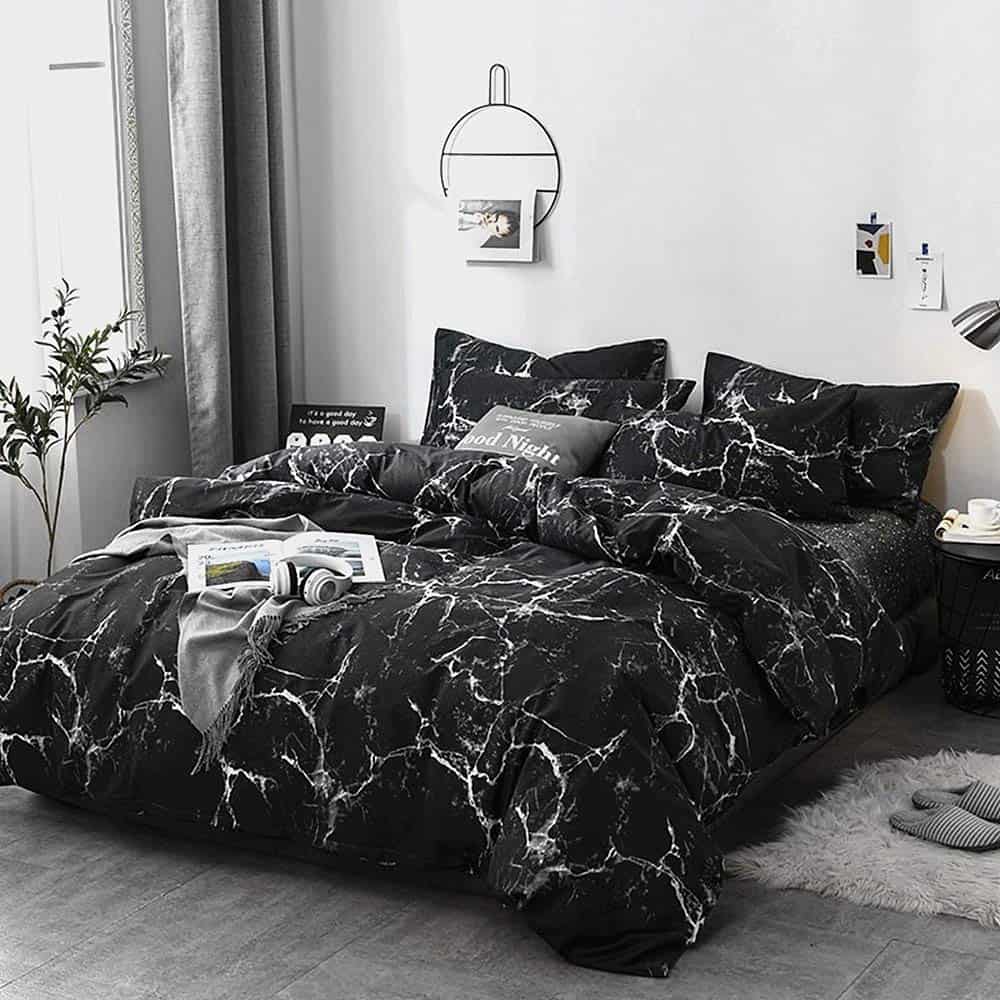 Juego de edredón de mármol negro Houseri para cama tamaño