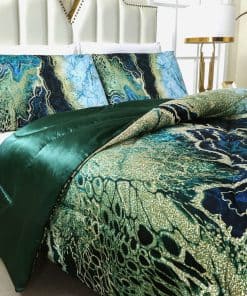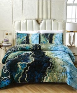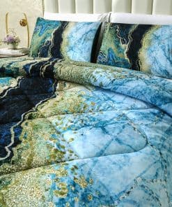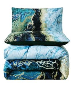 Juego de edredón de mármol verde para cama King – 3 piezas