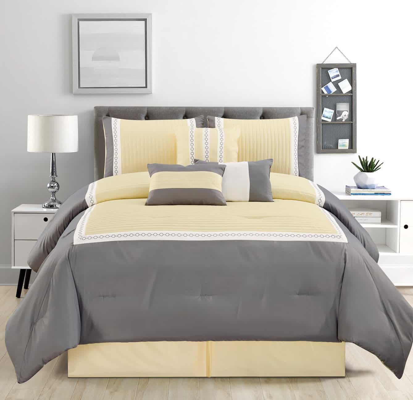 Añade un toque de clase a tu dormitorio con este Juego de Edredón de Decoración de Bloques de Color de 7 Piezas. Este juego de cama en una bolsa añadirá un toque de calidez y creará un ambiente tranquilo y relajado para tu dormitorio. Los juegos de edredones están diseñados para mantenerte actualizado y a la moda de la forma más conveniente y económica posible. Nuestros juegos de edredones son una tremenda combinación de colores atrevidos y vibrantes. Pueden transformar una habitación de sombría a luminosa y alegre en cuestión de minutos. Nuestro juego de edredón decorará tu dormitorio con estilo. Convierte tu hogar en un refugio con nuestra hermosa colección de edredones. Nuestros edredones vienen en muchas tallas, incluyendo edredones king, edredones queen e incluso juegos de edredones California King. Hemos incluido todo lo que necesitas para renovar tu dormitorio como edredón, fundas de almohada y faldas de cama. Los juegos de edredones son cómodos, duraderos y hermosos. Nuestros juegos de edredones están diseñados para ser cómodos durante todo el año.