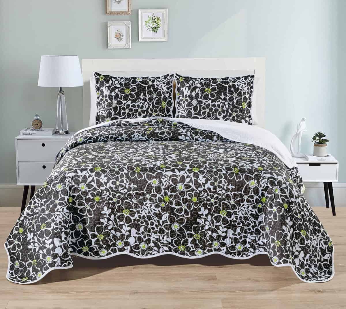 Mejora la decoración de tu dormitorio con esta lujosa colcha sobredimensionada en diseño Negro Blanco Verde, Floral, perfecta para cualquier persona que busque mejorar su colección de ropa de cama con estilo y comodidad. Hecho de microfibra premium, ultra suave, este edredón ligero pero duradero es ideal para uso durante todo el año, brindando el equilibrio adecuado entre calor y transpirabilidad para mantenerte fresco en verano y acogedor en invierno. Estos diseños extragrandes brindan una generosa cobertura y están disponibles en tamaños Twin, Full Queen, King y California King, ofreciendo un aspecto lujoso, elegante y a medida que complementa a la perfección cualquier estilo, desde moderno, rústico, vintage, hasta costero, minimalista y clásico. Perfecto para una variedad de espacios incluyendo dormitorios principales, habitaciones de invitados, dormitorios de niños y alquileres vacacionales, esta versátil colcha se puede utilizar como cubrecama, manta, edredón, alternativa al edredón o manta decorativa para adaptarse a tus necesidades. Está diseñado para ser conveniente y duradero, siendo lavable a máquina, resistente a la decoloración, sin arrugas y de secado rápido, lo que lo hace ideal para hogares ocupados, hogares aptos para mascotas y familias. Esta colcha de alta calidad y multiusos agrega un toque suave, acogedor e invitador a cualquier habitación, lo que la convierte en una excelente opción para los entusiastas de la ropa de cama de lujo o cualquier persona en busca de elementos esenciales de ropa de cama suaves, cómodos y hermosos. Perfecto como regalo de inauguración, regalo de bodas, regalo de cumpleaños o regalo de vacaciones para amigos y familiares, esta elegante y sofisticada colcha de cama combina elegancia, practicidad y diseño atemporal, asegurando que se convierta en una parte querida de tu hogar durante muchos años