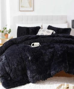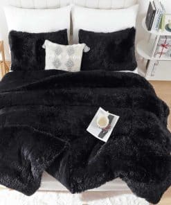 Juego de edredón de pelo sintético Smoofy negro tamaño