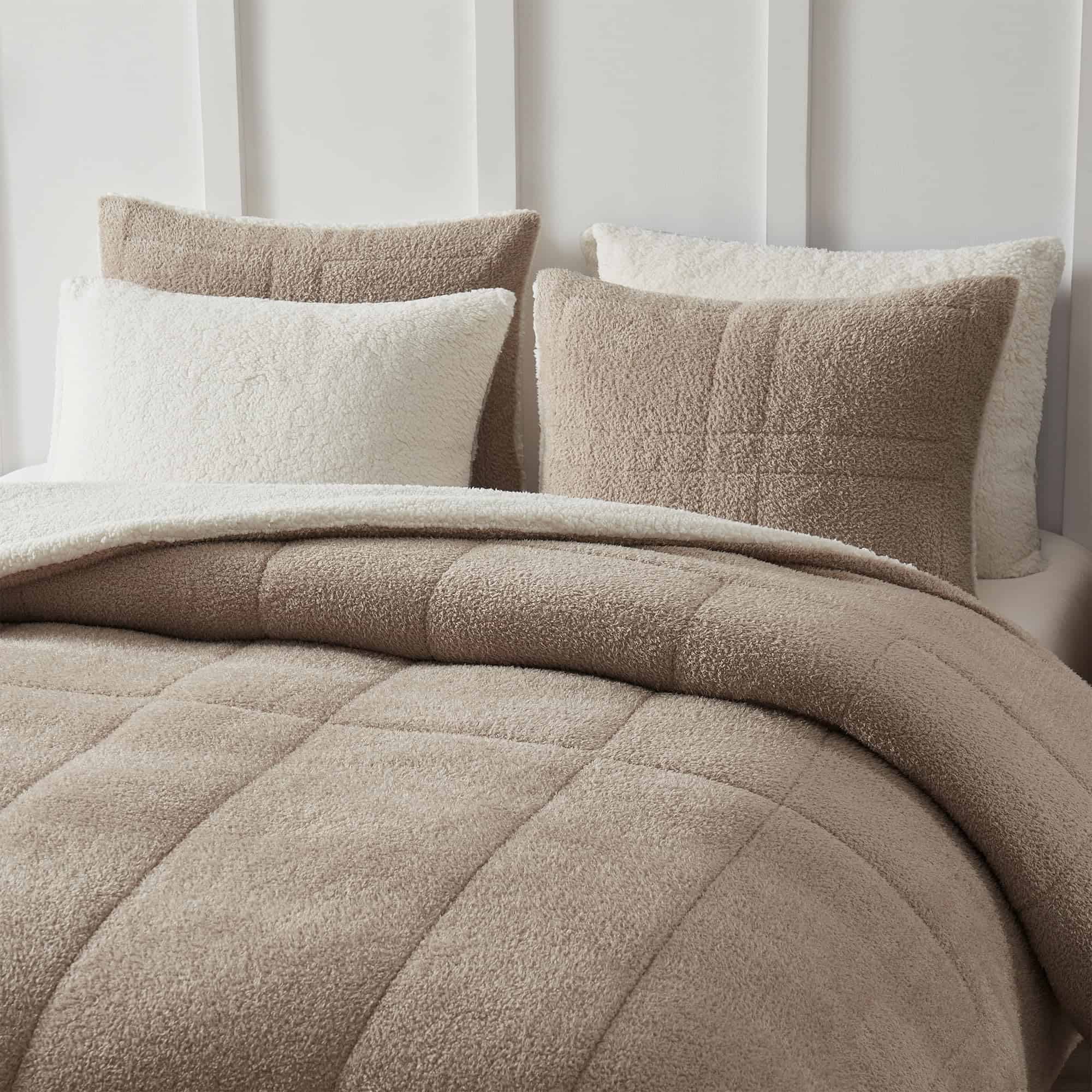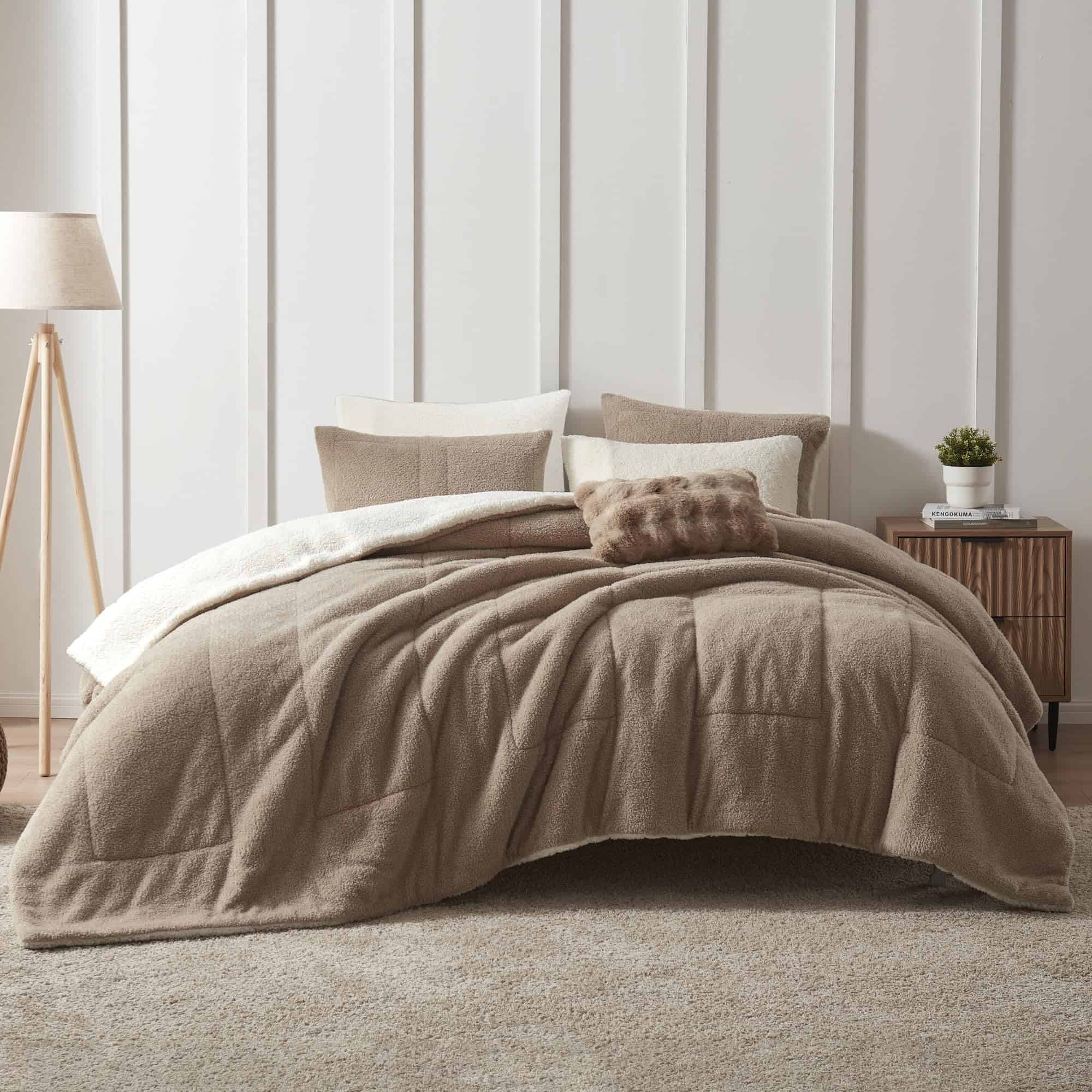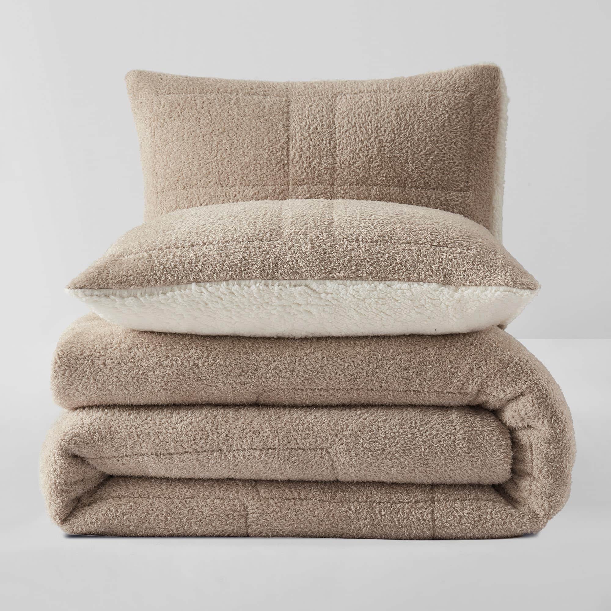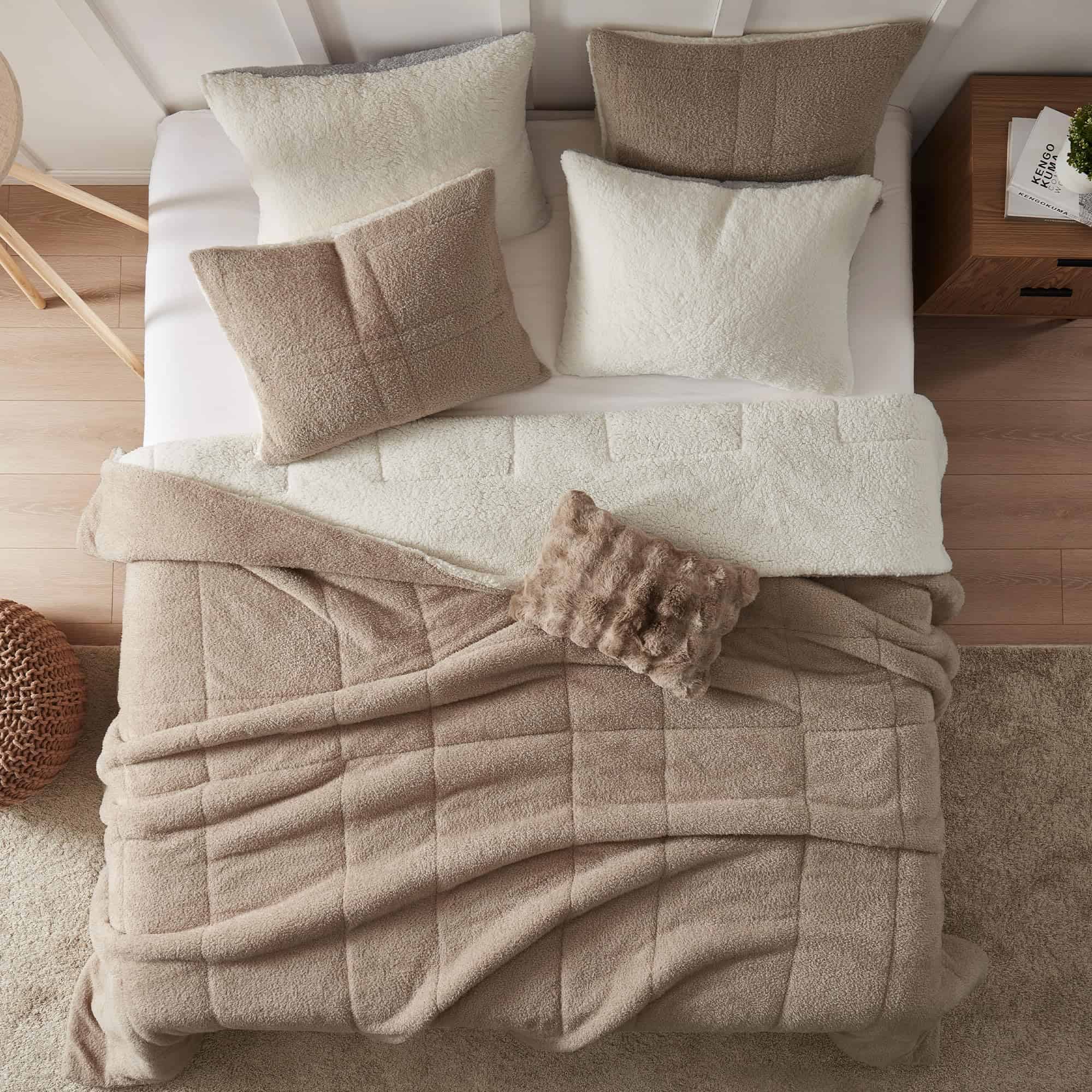 1. Maravilloso edredón de peluche Nuestro suave edredón de felpa está hecho de cara peluche teddy y espalda con tela de lana de cordero, textura acanalada súper suave y cálida para ti y tu familia en el invierno. 2. Edredón acolchado de diseño de patrón a cuadros Estilo de peluche teddy con diseño de patrón de costura a cuadros, mantiene el relleno sin deslizarse, para que tu habitación parezca más dinámica, hermosa y cómoda. Nuestro diseño de doble cara de piel sintética hace que el producto sea más lujoso y cómodo y te brinda la sensación más cómoda cuando te quedas dormido. 3. Edredón de lujo para todas las estaciones Ideal para todas las estaciones, que te brinda la máxima comodidad y calidez reversible, pero también te ayuda a sumergirte en una profunda relajación. También se puede utilizar en un sofá o sillón, suave, grueso y cálido. 4. Medidas y tamaños La ropa de cama de la colección incluye 1 edredón con 2 fundas de almohada. Queen: 1 x edredón 90″ x 94″, 2 x fundas de almohada 20″ x 26″. King: 1 x edredón 106″ x 94″, 2 x fundas de almohada 20″ x 36″. 5. Cuidado fácil – Lavable a máquina Lavable a máquina, lavar a máquina a temperatura ambiente, secar al sol o en secadora. No usar lejía ni planchar. Nuestro edredón se entrega en un paquete sellado al vacío. Golpee suavemente el edredón y déjelo descansar hasta 48 horas para restaurar su máxima esponjosidad. O puedes secarlo en secadora a baja temperatura.