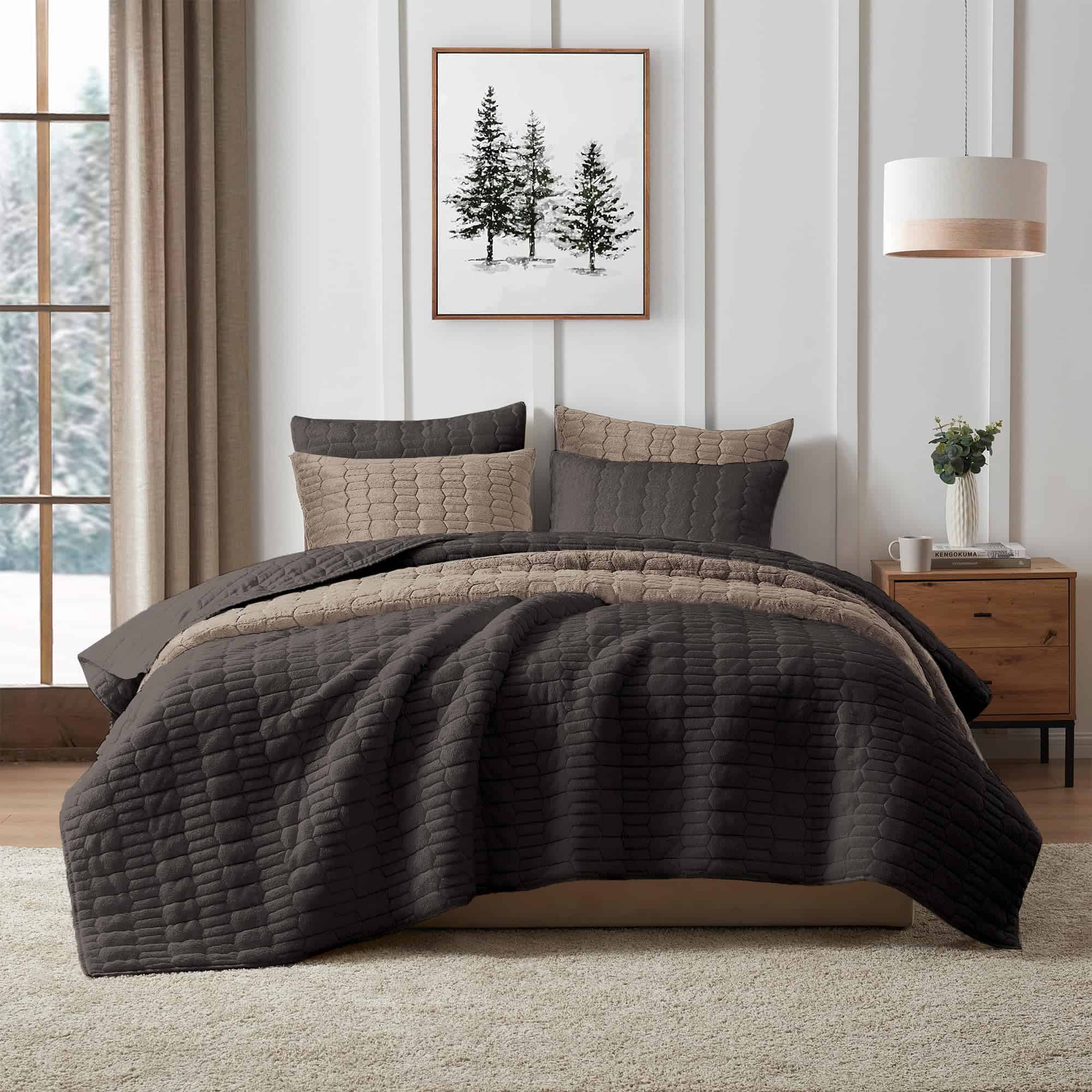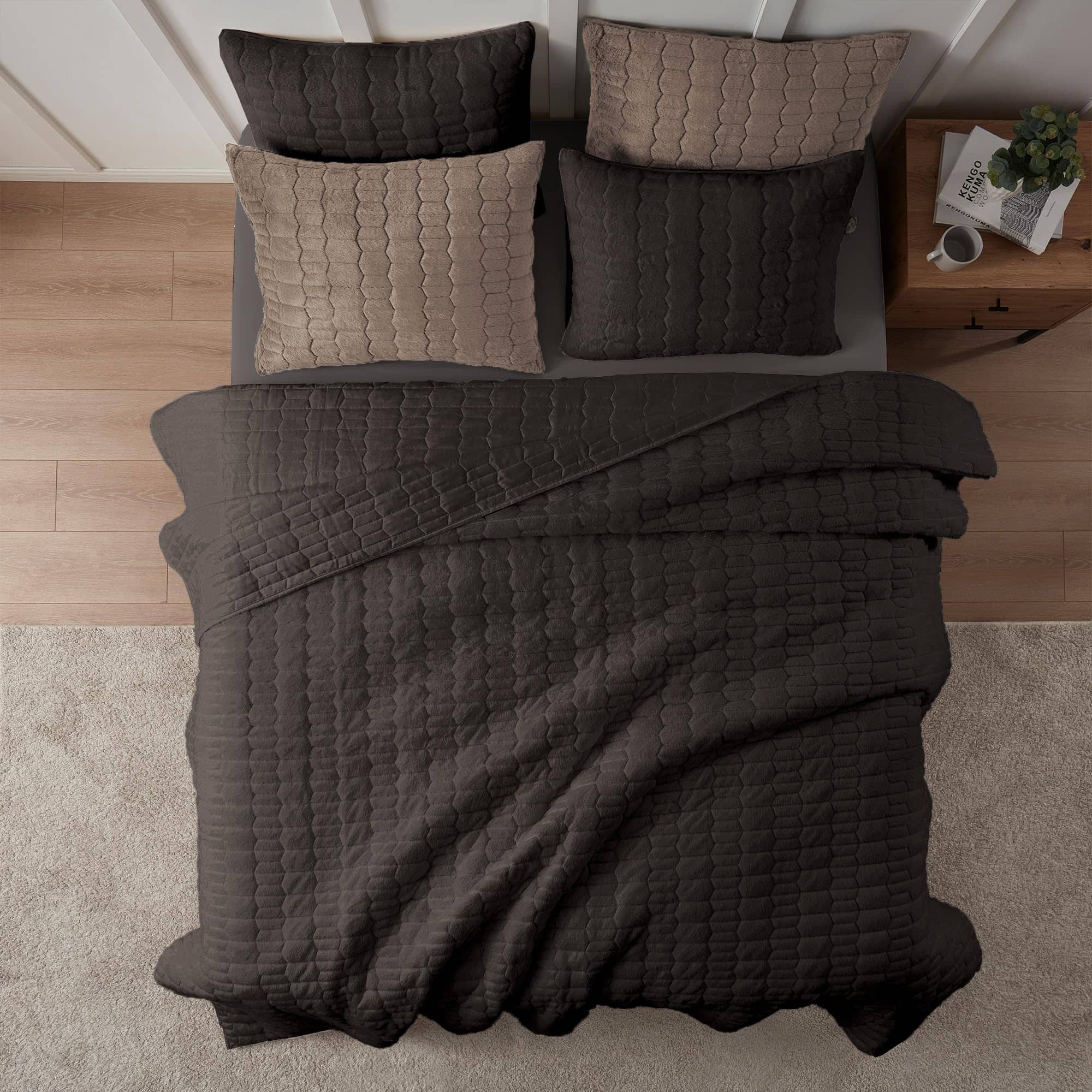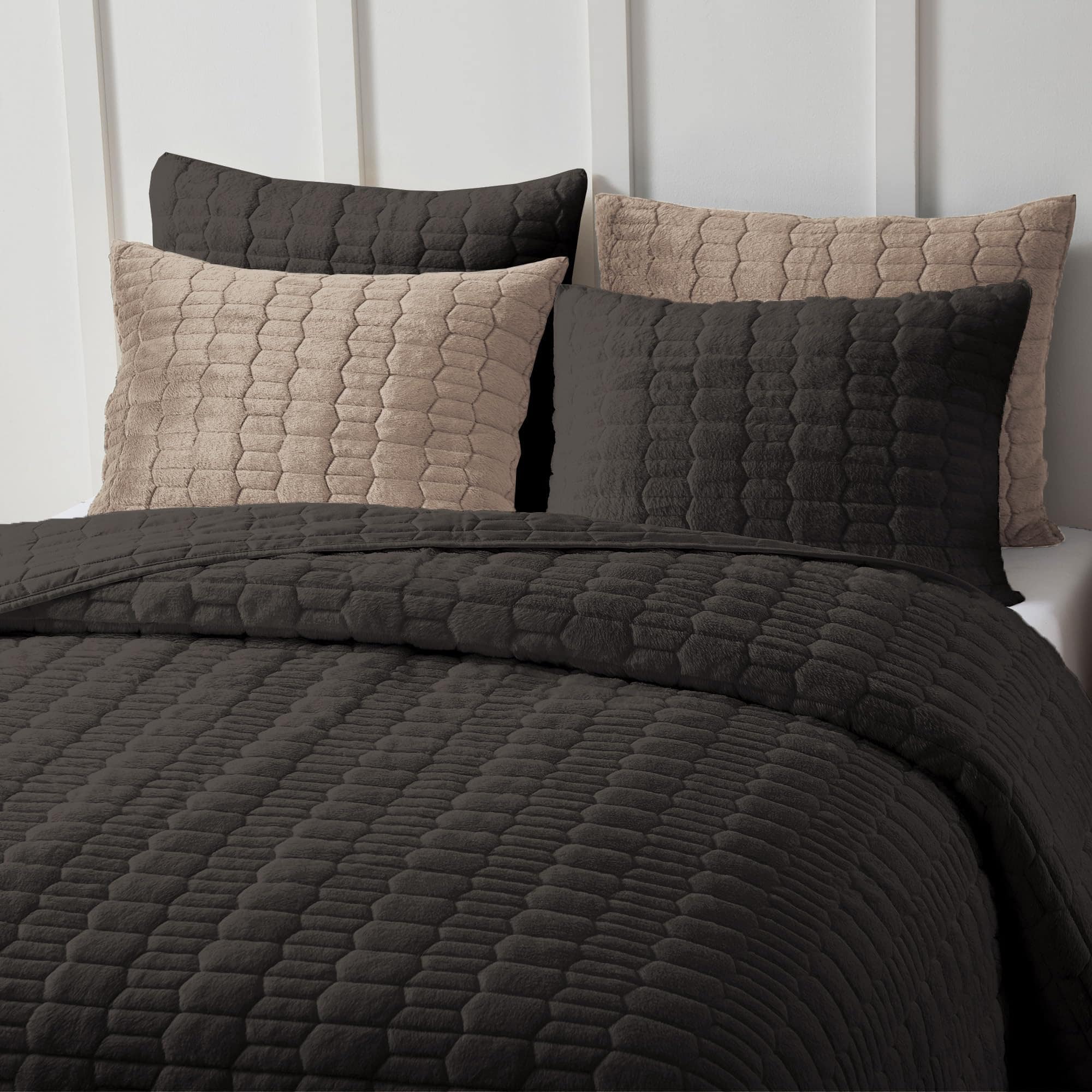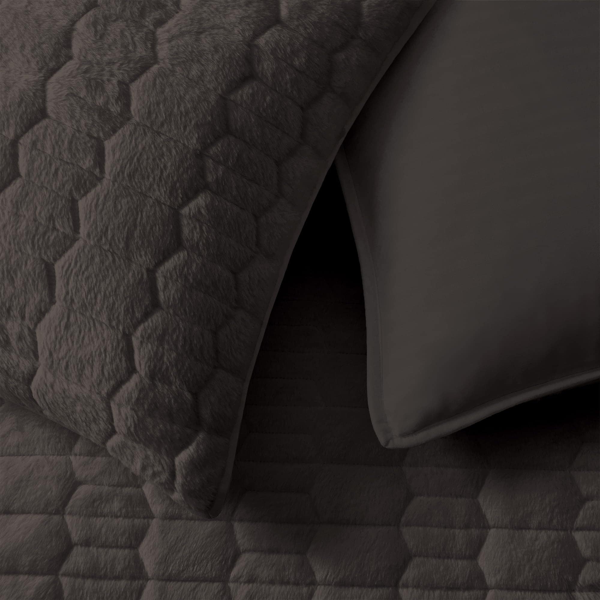 1. Juego de Edredón de Piel Sintética Maravilloso Nuestro edredón de piel sintética ligero tiene el frente hecho de una rica piel sintética acolchada en un patrón de acolchado geométrico y la parte trasera es de tela super suave de cationic. El lujoso y esponjoso juego de edredón ofrece un aspecto glamuroso, mullido y difuso con suavidad y calidez, ideal para acurrucarse en el sofá o la cama, completando la decoración del hogar, para uso al aire libre o una elección significativa para cualquier ocasión. 2. Patrón Geométrico Clásico Acolchado Diseño clásico de patrón geométrico, adecuado para varios estilos para combinar. La colección geométrica es un clásico atemporal, un clásico instantáneo. Es enormemente versátil. Úsalo como tu principal cubrecama o como una pieza de capas. Querrás llevarlo contigo donde quiera que te acurrucas en un sofá, frente a un fuego o con esa persona especial. 3. Uso Diverso Ideal para cubrir, manta de piel sintética, edredón, decoración del hogar y manta para mascotas. También se puede utilizar como edredón. Aunque nuestro edredón es ligero, no afecta su conservación del calor. Además, esta manta funciona muy bien como una elección considerada para un festival especial. 4. Medición y Tamaño La ropa de cama de la colección incluye 1 edredón con fundas para almohadas; Tamaño Individual: 1 edredón de 68″x92″ con 1 funda de almohada de 20″x26″; Tamaño Queen: 1 edredón de 88″x92″ con 2 fundas de almohada de 20″x26″; Tamaño King: 1 edredón de 104″x92″ con 2 fundas de almohada de 20″x36″. 5. Certificación OEKO-TEX y Lavable a Máquina Hecho en una fábrica certificada según el estándar 100 de OEKO-TEX, un sistema de certificación independiente que garantiza que los textiles cumplan con altos estándares de seguridad y medioambientales. Lavable a máquina, lavar a máquina en temperatura ambiente, secar al sol o en secadora. No usar lejía ni planchar. Nuestro edredón se entrega en un paquete sellado al vacío. Golpee suavemente el edredón y déjelo reposar hasta 48 horas para restaurar su máxima esponjosidad. O puede secarlo en secadora a baja temperatura.