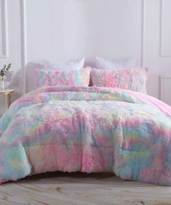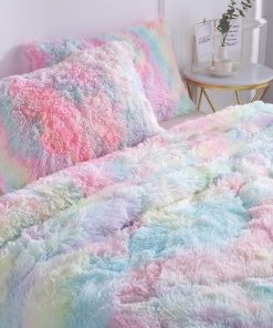 Juego de edredón de piel sintética Wajade Rainbow fluffy,