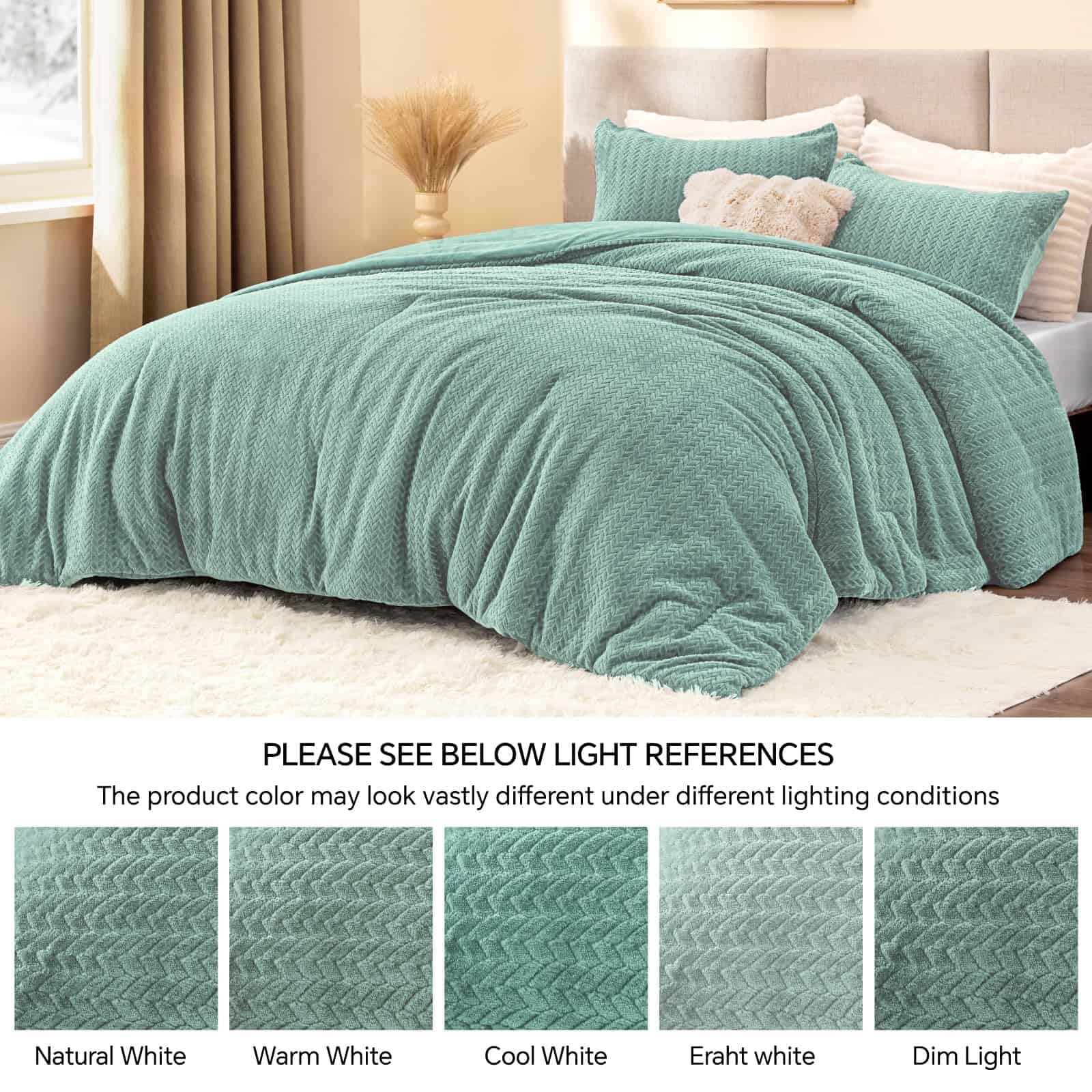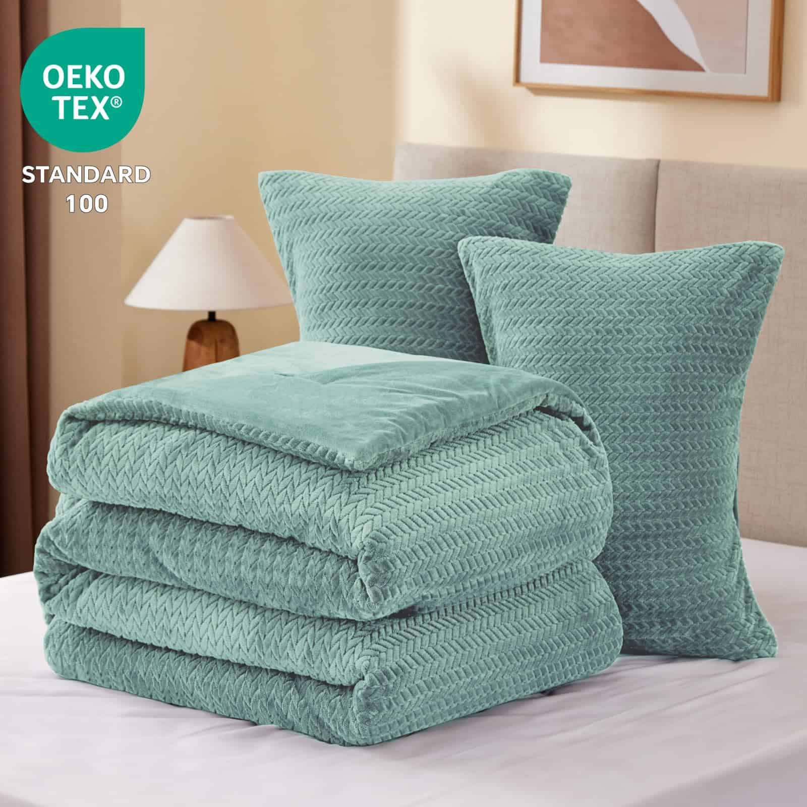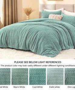 Nuestro juego de edredón de reina ChiXpace es perfecto para agregar calidez y estilo a cualquier dormitorio. Con un diseño reversible suave y cálido, este juego de cama presenta un lado adornado con un tejido de punto bordado de franela y el otro lado hecho de terciopelo esponjoso y suave. Ideal para el clima frío, este juego de edredón añade un toque simple y elegante a la decoración de tu habitación. Además, nuestro juego de edredón está certificado por OEKO-TEX, lo que significa que cumple con altos estándares de seguridad y está libre de materiales dañinos, brindando a los durmientes calidad asegurada. El relleno de microfibra de poliéster premium proporciona una sensación suave y transpirable de calor supremo, para que te sientas como si estuvieras durmiendo en una nube. Además, es fácil de cuidar, ya que es lavable a máquina, se puede secar en secadora a baja temperatura y no se decolora después del lavado. No usar lejía, no planchar ni limpiar en seco. El embalaje en caja del juego de edredón es perfecto para regalar y almacenar. Una vez abierto, recomendamos un rápido batido para revivir la suavidad original del edredón. Disfruta de la máxima combinación de estilo, comodidad y tranquilidad con nuestro juego de edredón de reina ChiXpace. ¡Hazte con el tuyo hoy mismo!