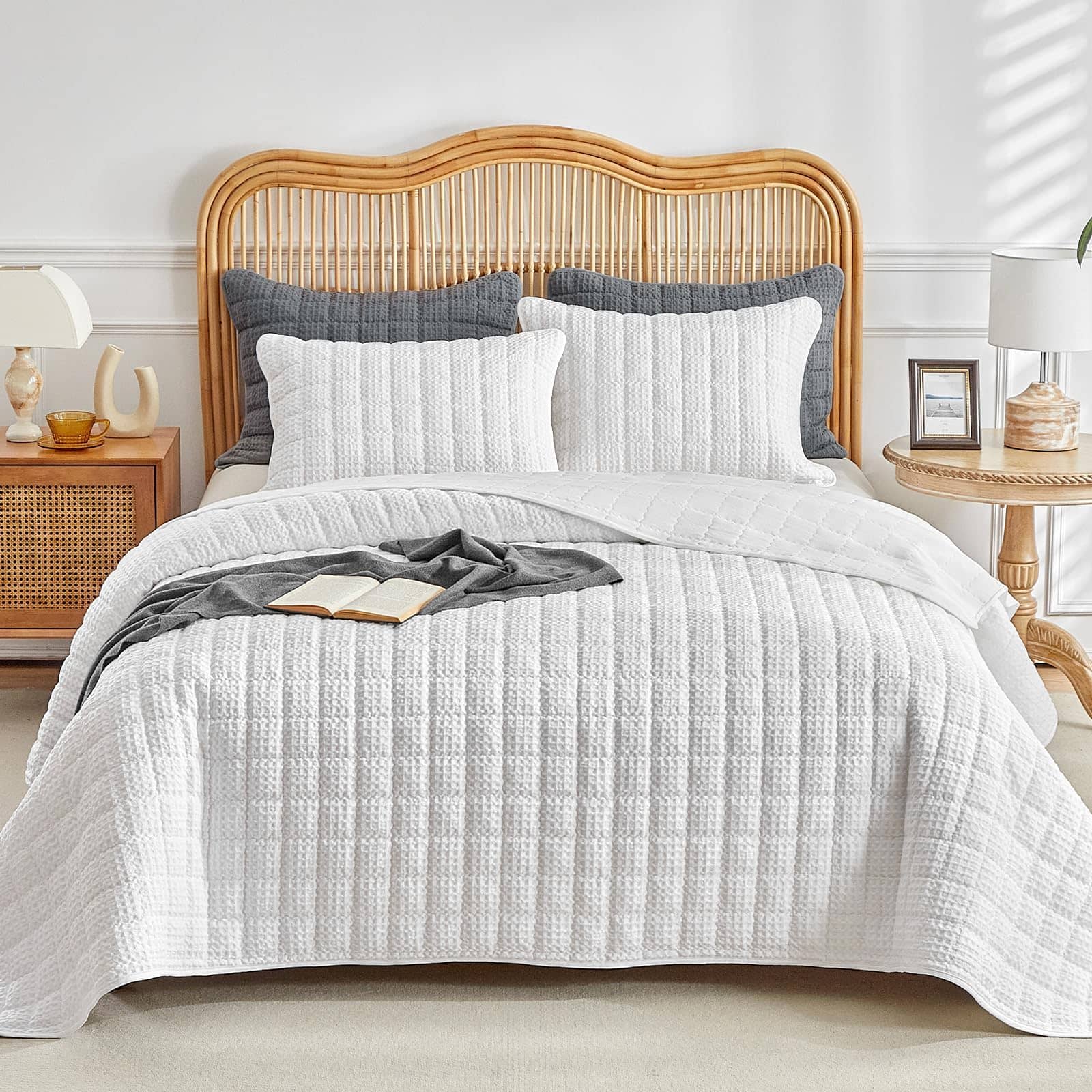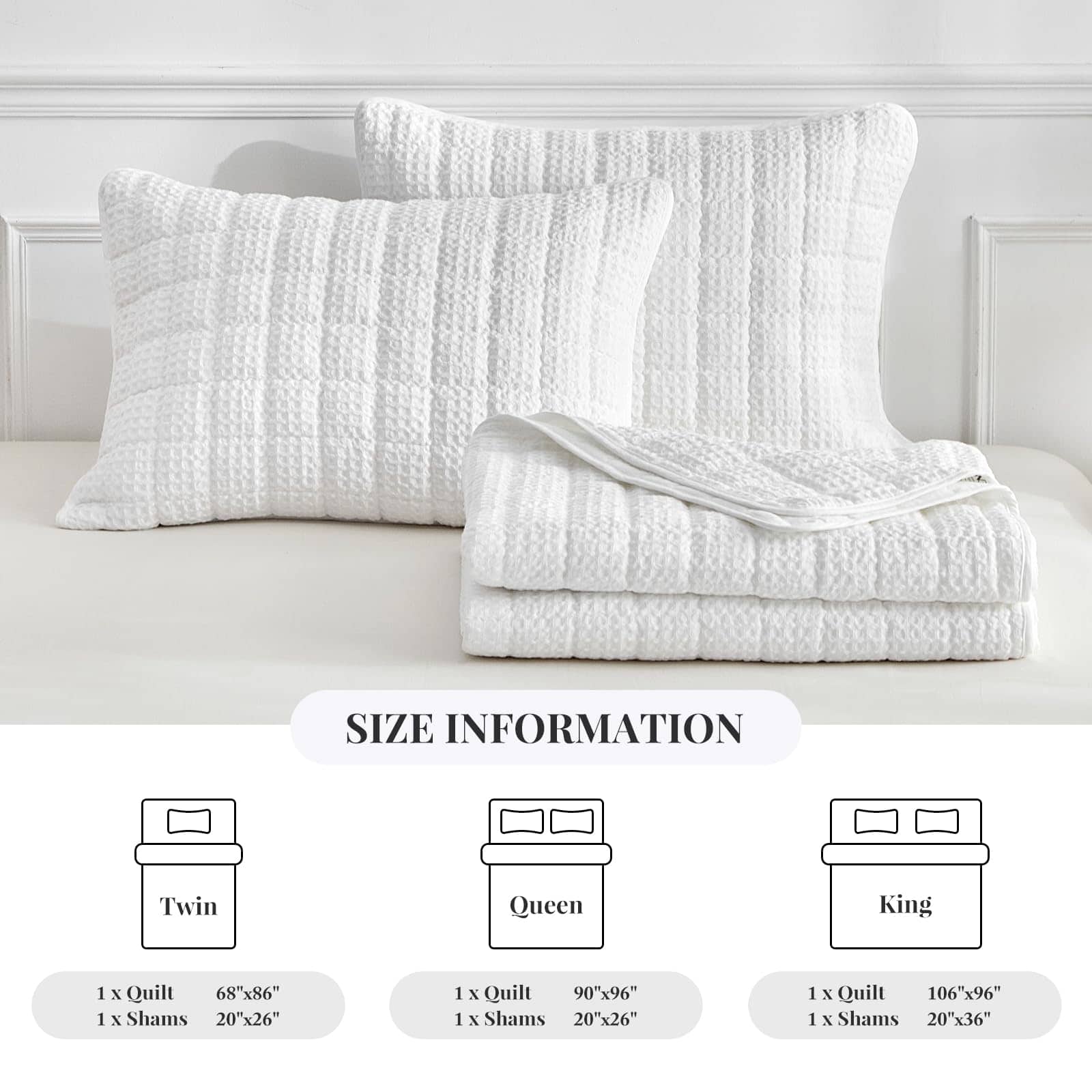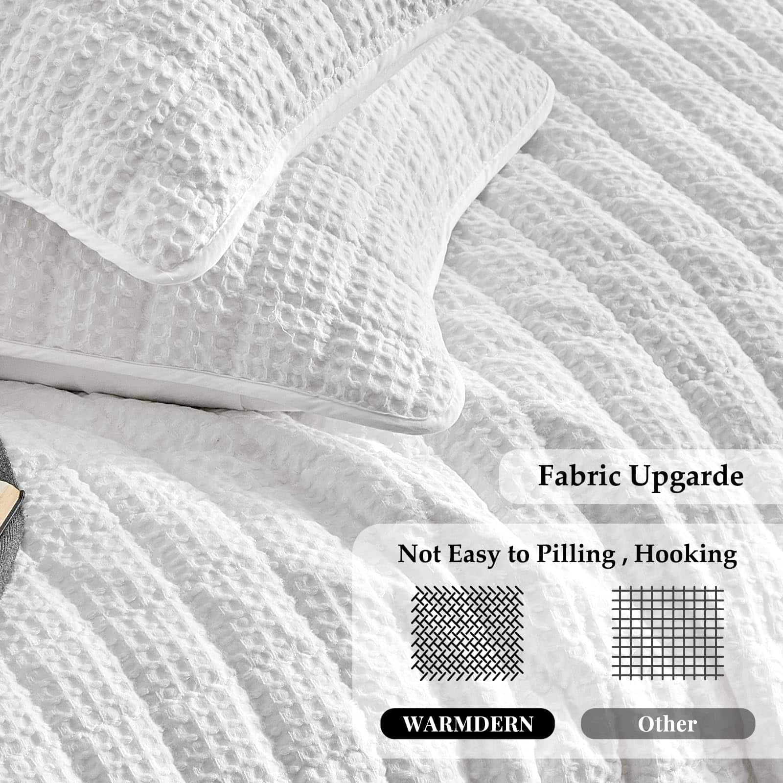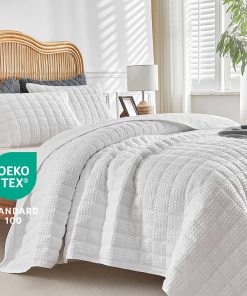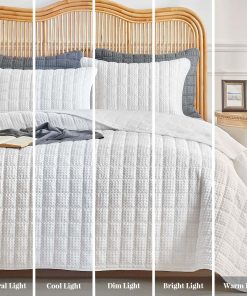 Juego de Edredón de Rompecabezas WARMDERN Tamaño King, Edredón Clásico de Cuadros Blancos Suave y Ligero para Verano, Cubrecamas para Todas las Estaciones, Incluye 1 Edredón (106″ x 96″) + 2 Fundas de Almohada (20″ x 36″). Este juego de edredón de rompecabezas de WARMDERN está hecho de 100% microfibra, ultra suave y transpirable, amigable con la piel, certificado por el estándar 100 de OEKO-TEX. Nuestro juego de cubrecamas edredón le brindará comodidad toda la noche. Diseño de cuadros con patrón de rompecabezas en nuestro juego de cubrecamas edredón blanco. Costuras exquisitas, proceso de teñido especial que no se desvanece y mantiene el color brillante. Los juegos de edredón de color sólido se adaptan a una variedad de estilos de hogar y serán una decoración perfecta para sus habitaciones, habitaciones infantiles o habitaciones de invitados. El juego de edredón ligero de WARMDERN es adecuado para todas las estaciones, especialmente para personas que duermen calientes y sudan en verano. También se puede usar con otros juegos de ropa de cama como cubrecamas o colchas para proporcionar calor adicional en épocas frías. Para mantener una buena experiencia, se recomienda lavar este edredón de rompecabezas antes de usarlo por primera vez. Lavar por separado, lavable a máquina en agua fría en ciclo suave. No usar lejía, lavar suavemente en agua fría y secar a baja temperatura si es necesario. Este juego de edredón WARMDERN certificado según el estándar 100 de OEKO-TEX incluye 1 edredón king (106″ x 96″) y 2 fundas de almohada (20″ x 36″). WARMDERN siempre busca obtener la confianza y la satisfacción de cada cliente con un servicio atento. Si tiene alguna pregunta, contáctenos. Se ofrece reembolso o reemplazo dentro de los 30 días.