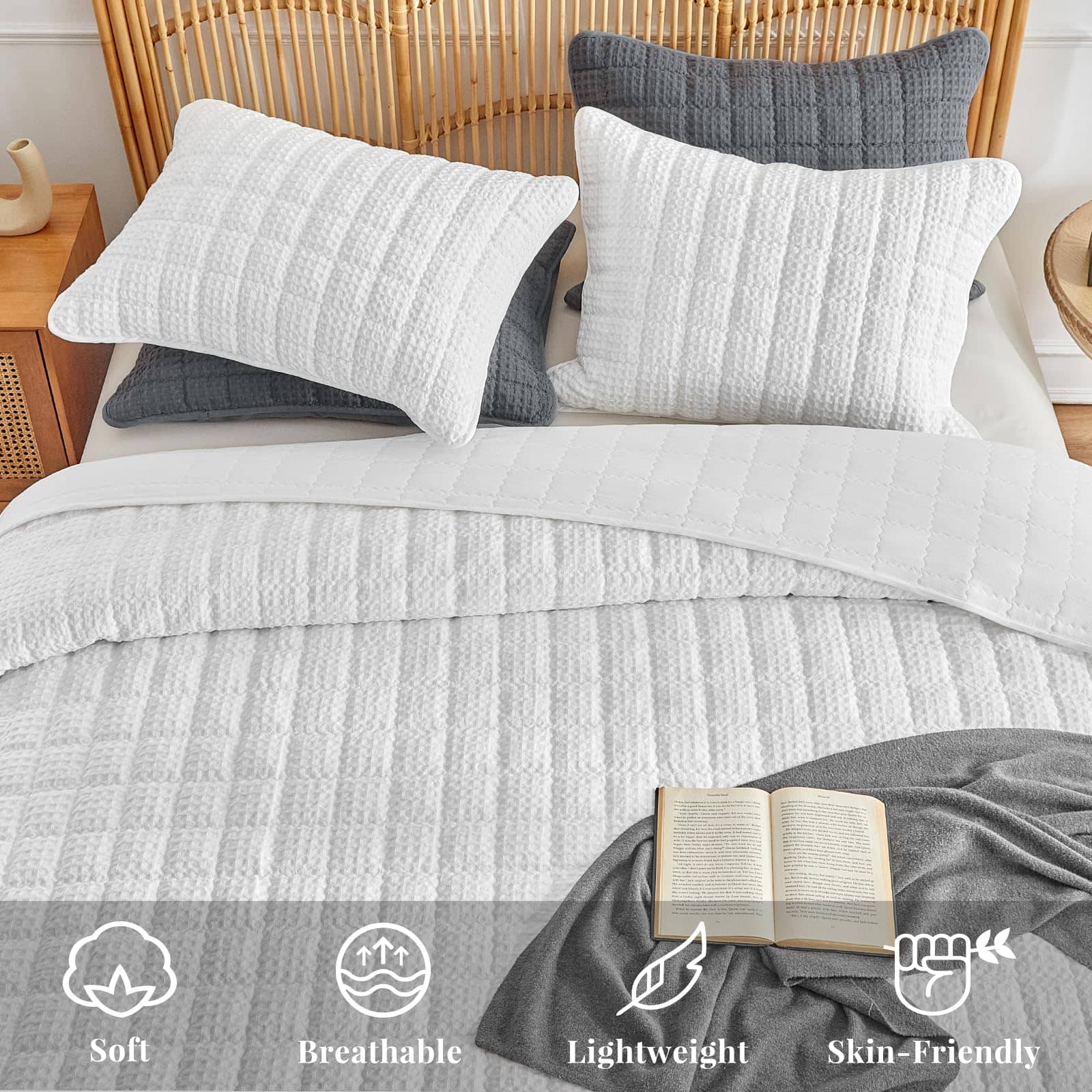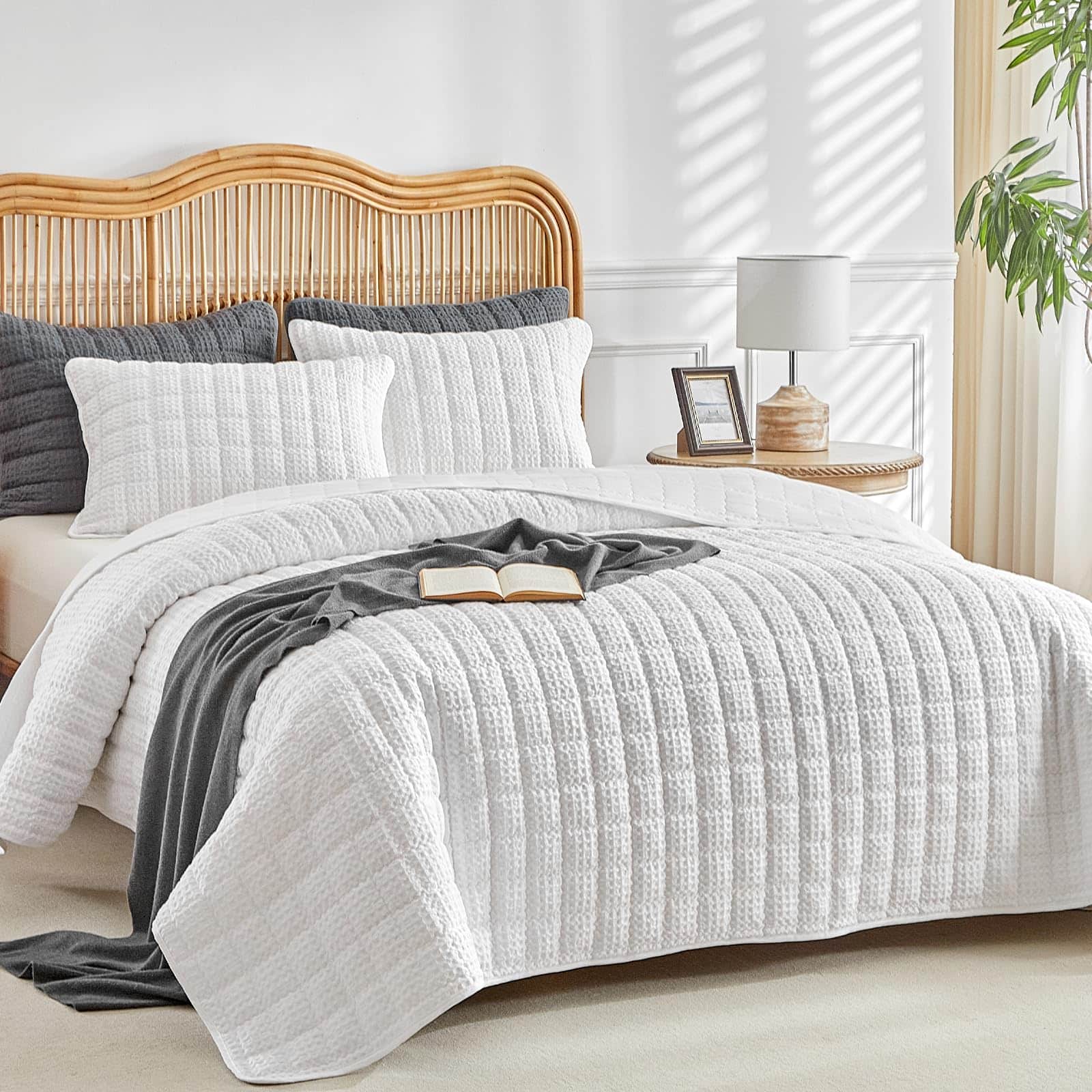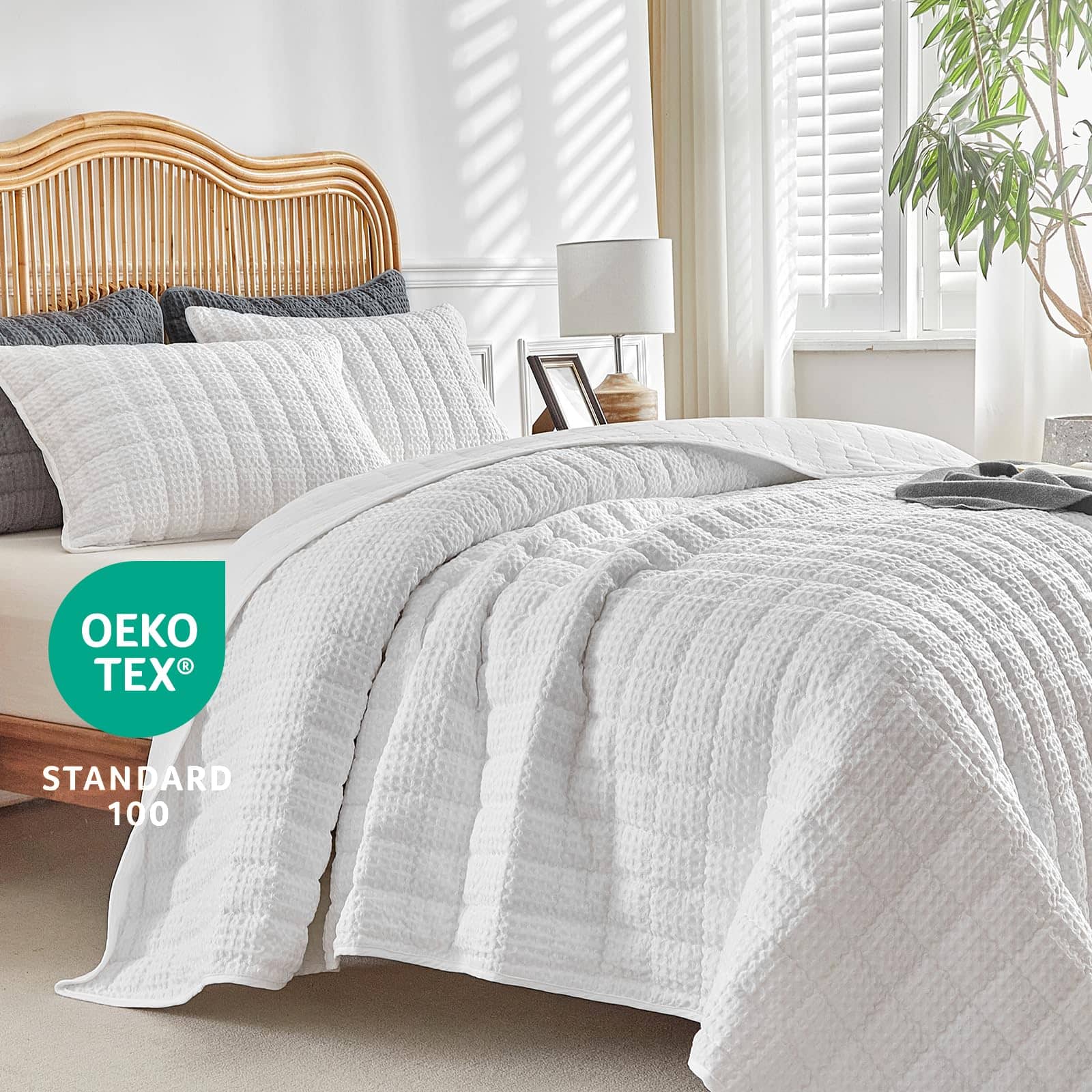 Juego de Edredón de Rompecabezas WARMDERN Tamaño King, Edredón Clásico de Cuadros Blancos Suave y Ligero para Verano, Cubrecamas para Todas las Estaciones, Incluye 1 Edredón (106″ x 96″) + 2 Fundas de Almohada (20″ x 36″). Este juego de edredón de rompecabezas de WARMDERN está hecho de 100% microfibra, ultra suave y transpirable, amigable con la piel, certificado por el estándar 100 de OEKO-TEX. Nuestro juego de cubrecamas edredón le brindará comodidad toda la noche. Diseño de cuadros con patrón de rompecabezas en nuestro juego de cubrecamas edredón blanco. Costuras exquisitas, proceso de teñido especial que no se desvanece y mantiene el color brillante. Los juegos de edredón de color sólido se adaptan a una variedad de estilos de hogar y serán una decoración perfecta para sus habitaciones, habitaciones infantiles o habitaciones de invitados. El juego de edredón ligero de WARMDERN es adecuado para todas las estaciones, especialmente para personas que duermen calientes y sudan en verano. También se puede usar con otros juegos de ropa de cama como cubrecamas o colchas para proporcionar calor adicional en épocas frías. Para mantener una buena experiencia, se recomienda lavar este edredón de rompecabezas antes de usarlo por primera vez. Lavar por separado, lavable a máquina en agua fría en ciclo suave. No usar lejía, lavar suavemente en agua fría y secar a baja temperatura si es necesario. Este juego de edredón WARMDERN certificado según el estándar 100 de OEKO-TEX incluye 1 edredón king (106″ x 96″) y 2 fundas de almohada (20″ x 36″). WARMDERN siempre busca obtener la confianza y la satisfacción de cada cliente con un servicio atento. Si tiene alguna pregunta, contáctenos. Se ofrece reembolso o reemplazo dentro de los 30 días.