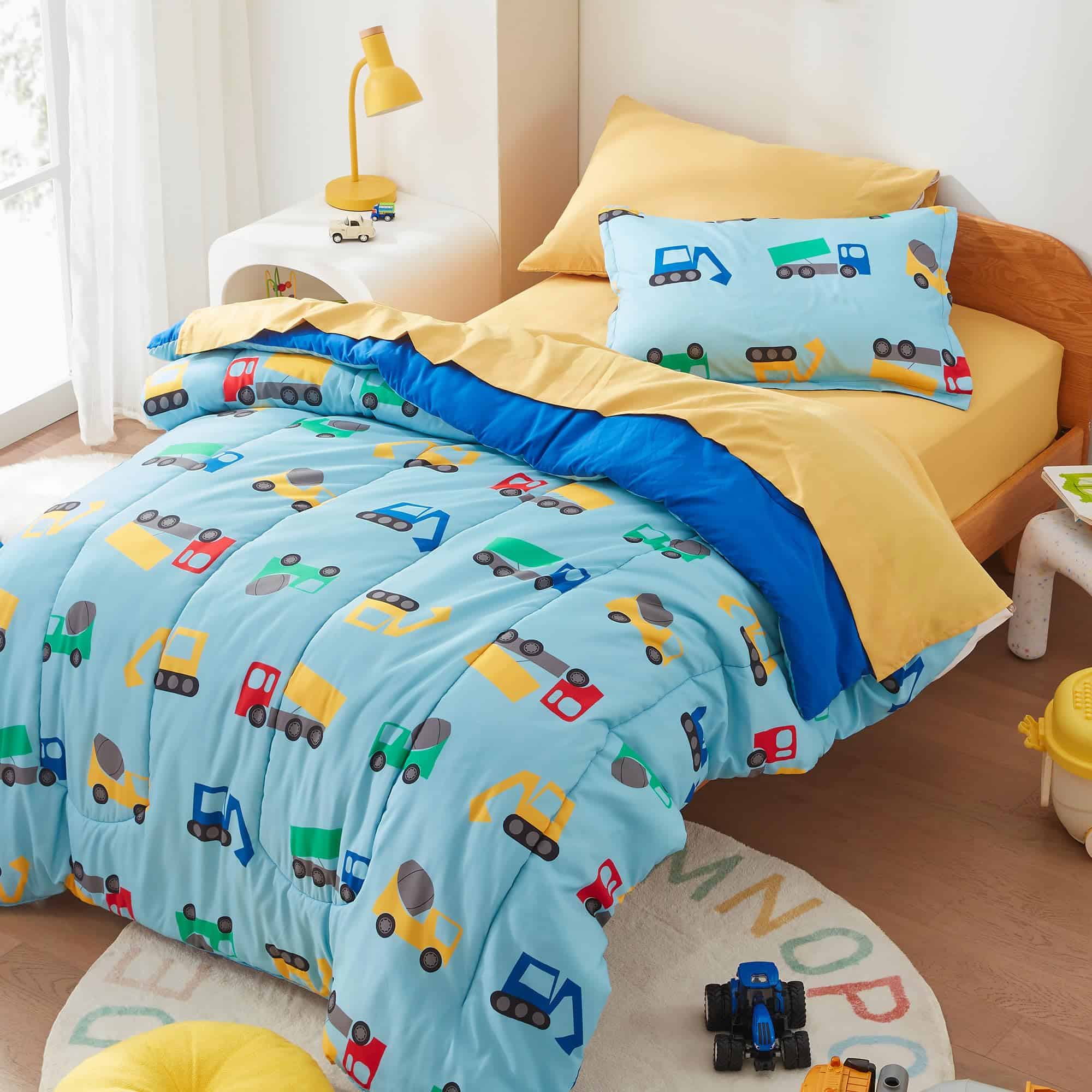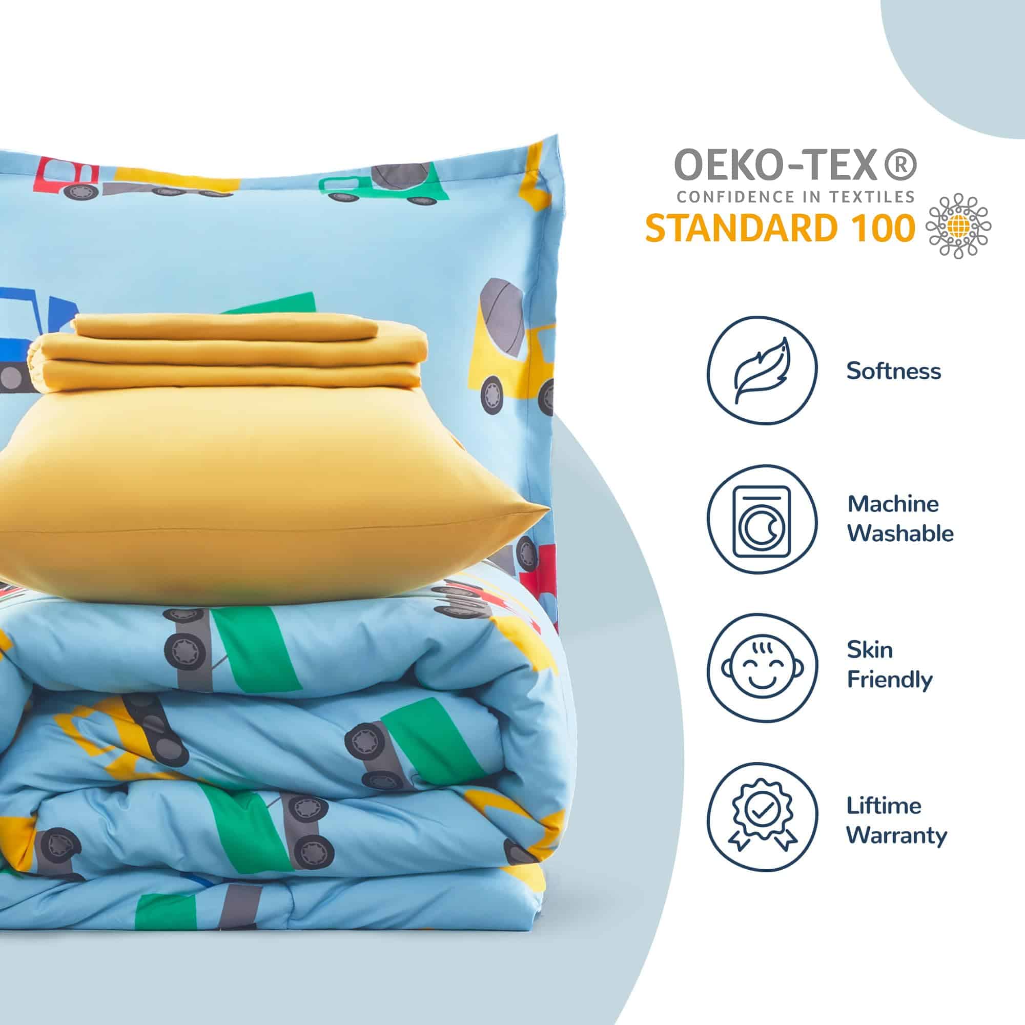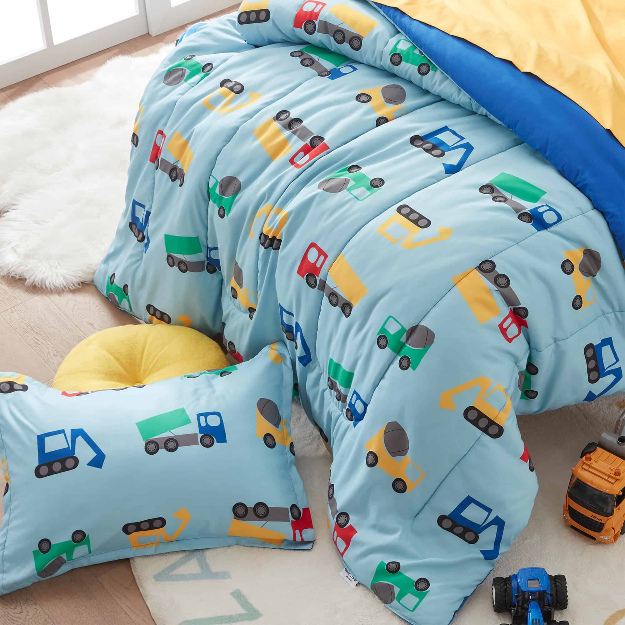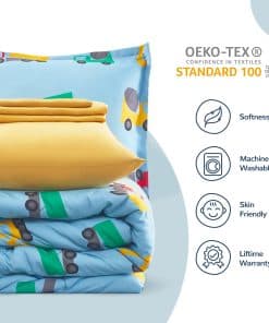 We seek inspiration from a large range of classic design works. Construction Truck pattern is so cute and charming that your kids will fall in love with this bedding at the first glance. The comforter’s fabric is thick brushed microfiber, feels super soft and comfortable. The filling is 200gsm resilient fiber mixed with cooling INVISTA fiber, super breathable & fluffy like sleeping on a cloud. The classic quilting design keeps it fits the body snugly. The elegant piping not only looks beautiful but also effectively prevents edge breakage. The durable precise stitching prevents the fillers from squeezing together even after many washes. Skin-Friendly dyeing and printing process, excellent color fastness. Machine wash cold, don’t use bleach, tumble dry low. SLEEP ZONE has more than 40 years’ experience in the design and manufacture of high-quality bedding. Our products are Oeko-Tex Standard 100 certified to be free of harmful chemicals. You can buy with confidence under our excellent product quality and customer service. If you have any inquiries or issues, please feel free to contact us, we’ll get back to you within 24 hours.