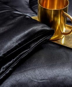 Disfruta de un excelente descanso nocturno con nuestro juego de edredón de satén de seda negra. Este juego de ropa de cama de lujo brinda comodidad y estilo a tu dormitorio. El tejido ultra suave y transpirable te mantendrá cómodo en todas las estaciones, absorbiendo la humedad de tu cuerpo en verano y manteniéndote abrigado en invierno. El juego incluye un edredón de 228 cm x 228 cm y 2 fundas de almohada de 50×70 cm, perfecto para una cama de tamaño Queen. La artesanía de calidad y el diseño cuidadoso garantizan la longevidad del producto, con costuras curvas que evitan que el edredón se mueva mientras duermes. Además, el fácil cuidado hace que este juego de edredón sea conveniente de mantener, lavable a máquina y apto para secadora a baja temperatura. Este juego de edredón de satén negro es un regalo de lujo ideal para hombres, mujeres, niños y adolescentes, brindándoles una experiencia de dormir de primera clase. Añade un toque de elegancia a tu dormitorio con este exquisito juego de edredón de satén de seda negra.