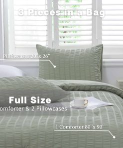 Juego de Edredón de Seersucker Verde Salvia Haowaner Tamaño