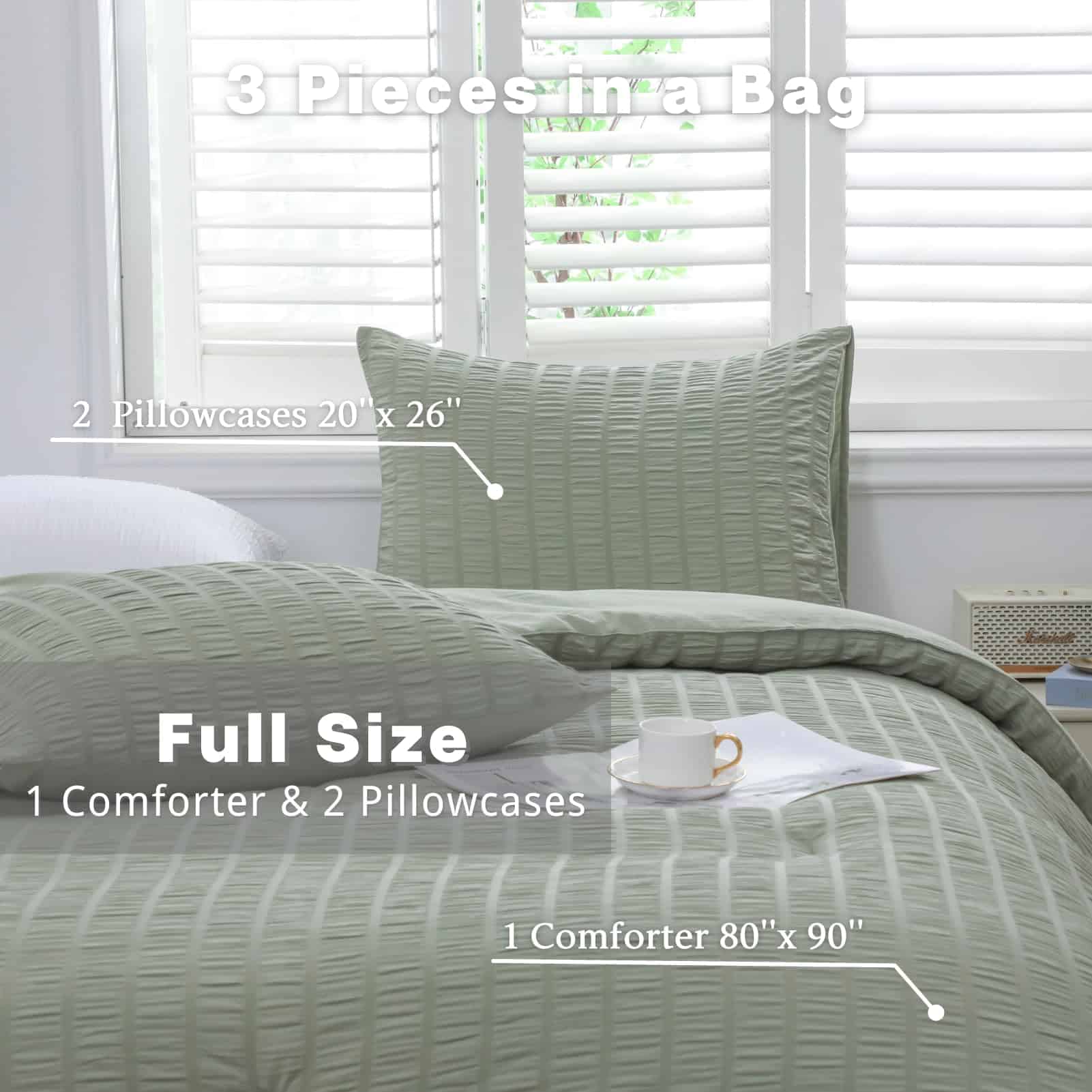 Haowaner Juego de Edredón Seersucker, Tamaño Completo, Verde Salvia