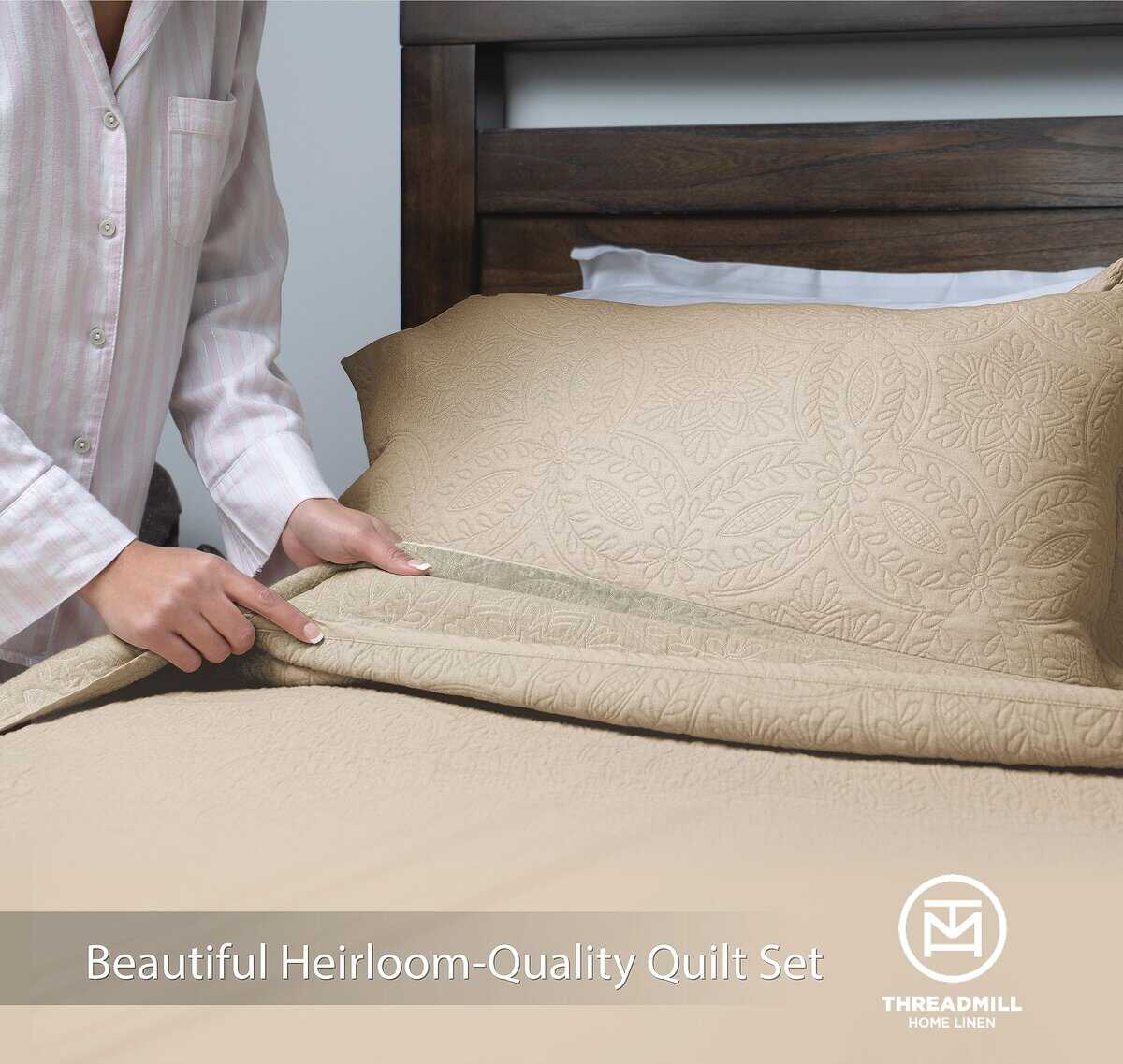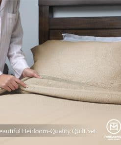 Treat yourself to elegance with a Threadmill Home Linen deluxe Quilt bedding set. Adorn your own bed or the guest room with our gorgeous traditional bed ensemble and see how it uplifts the entire space. Constructed with exquisite all-natural fabrics in a stunning design perfect for all spaces & seasons, select a favorite shade then dress the slumber space with flair in a top quality comforter made for both exceptional looks & practical longevity.
