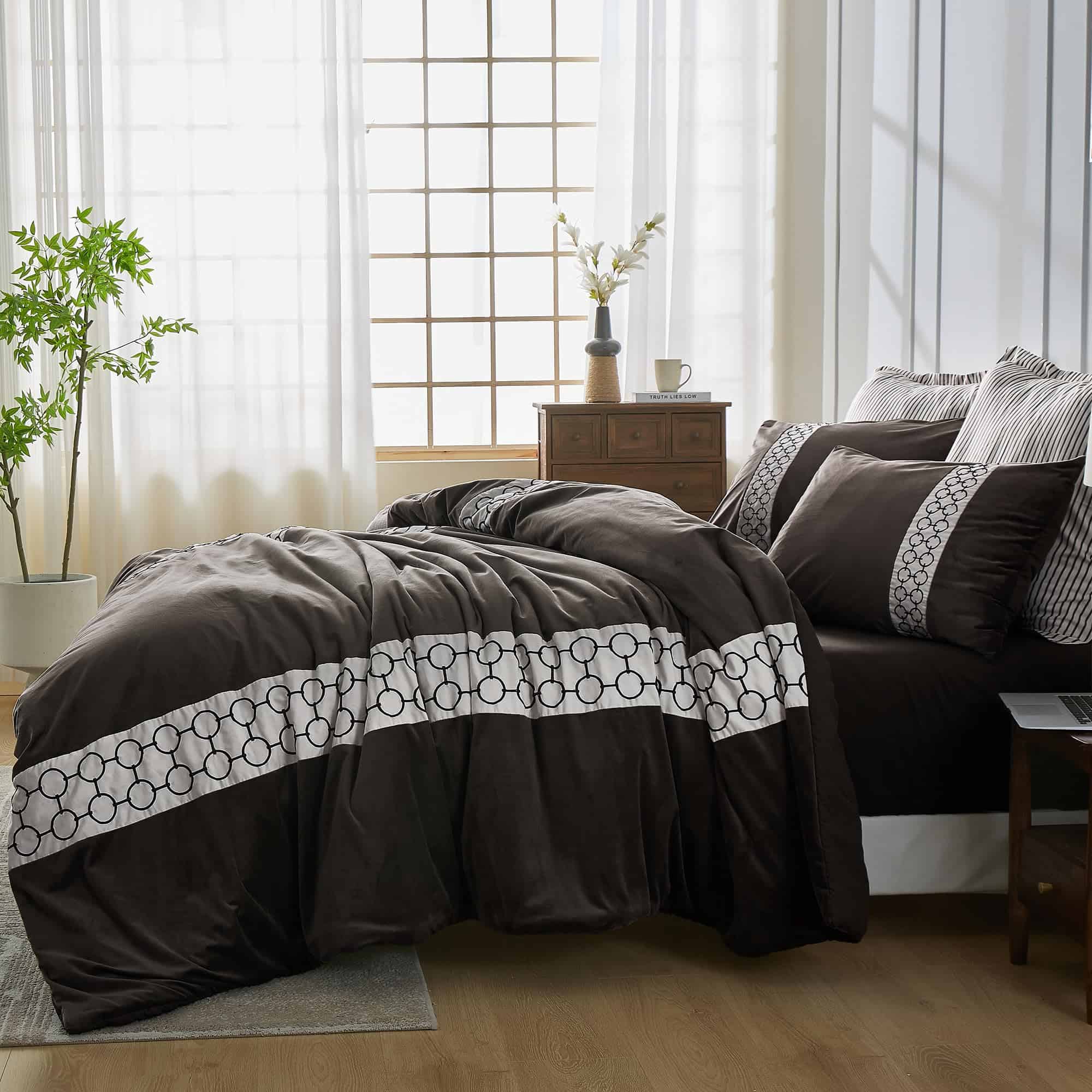 Transforma tu dormitorio en un refugio cálido y acogedor con el Edredón Maravilloso. Sus tonos rústicos de Caramelo y sus telas lujosas aportan un toque de elegancia inspirada en el lodge a tu espacio. La parte delantera del edredón presenta una textura de terciopelo de algodón, conocida por su suavidad al tacto y calidez, mejorada con elegantes bordados. La parte trasera de tela cepillada, suave y respetuosa con la piel, convierten esta colección en una elección ideal para quienes valoran tanto la comodidad como el estilo en su ropa de cama. Los detalles añaden un toque personalizado, convirtiendo tu cama en una pieza statement. Este conjunto de 3 piezas incluye todo lo que necesitas para un aspecto coherente: edredón Queen (90″x94″), 2 fundas de almohada (20″x26″). Los cojines presentan bordados intrincados y piezas, complementando a la perfección las telas superiores de la cama. Experimenta el equilibrio perfecto entre calidez y comodidad con esta colección de micro terciopelo, diseñada para mantenerte abrigado durante el invierno pero lo suficientemente ligera para la comodidad en los meses más cálidos. Nuestros juegos de edredón están certificados Oekotex 100, lo que garantiza que están libres de más de 400 sustancias nocivas para una elección segura y responsable. Disfruta de la comodidad de la ropa de cama lavable a máquina. Simplemente sigue las instrucciones de cuidado para un mantenimiento sin complicaciones, asegurando que tu conjunto se mantenga fresco y hermoso durante todo el año.