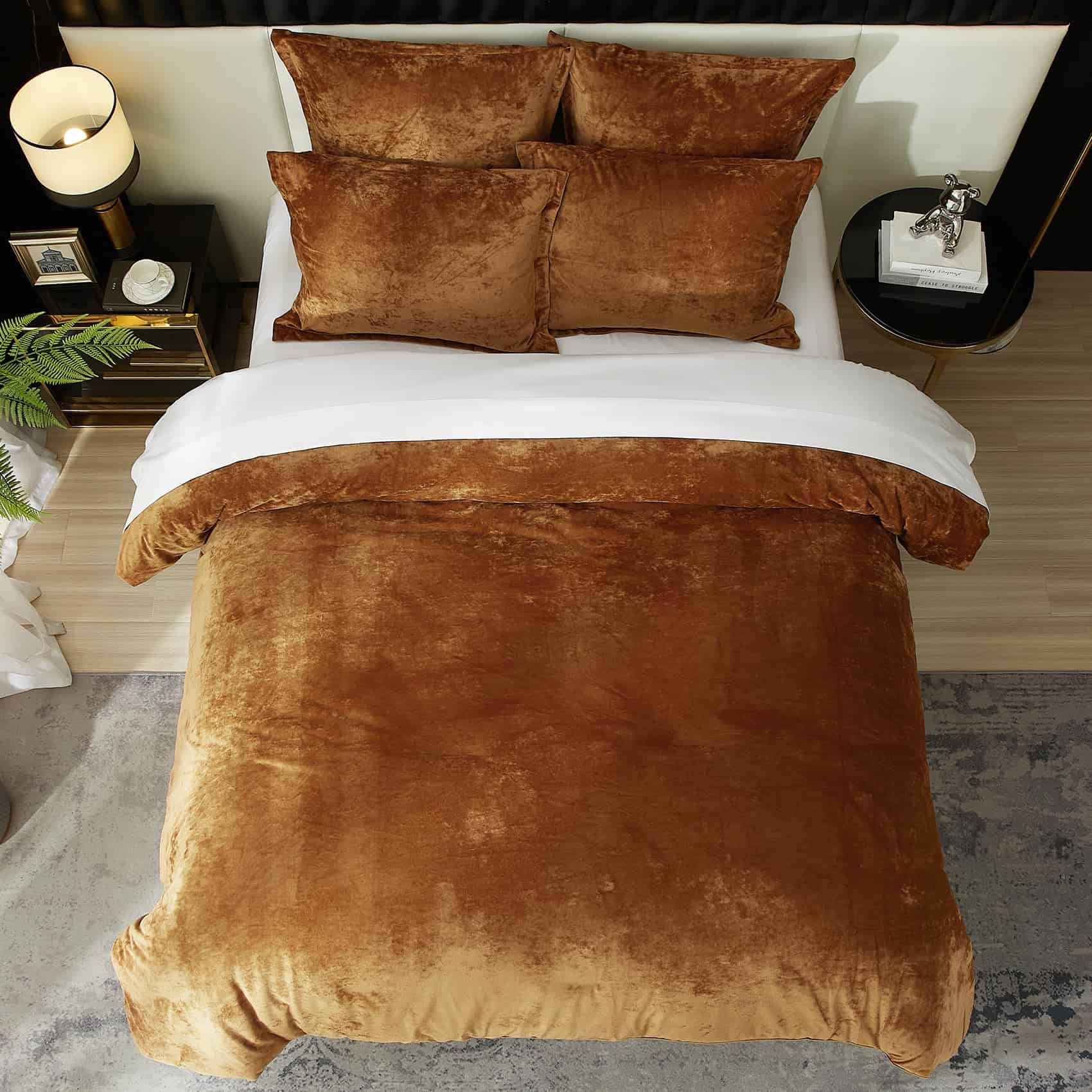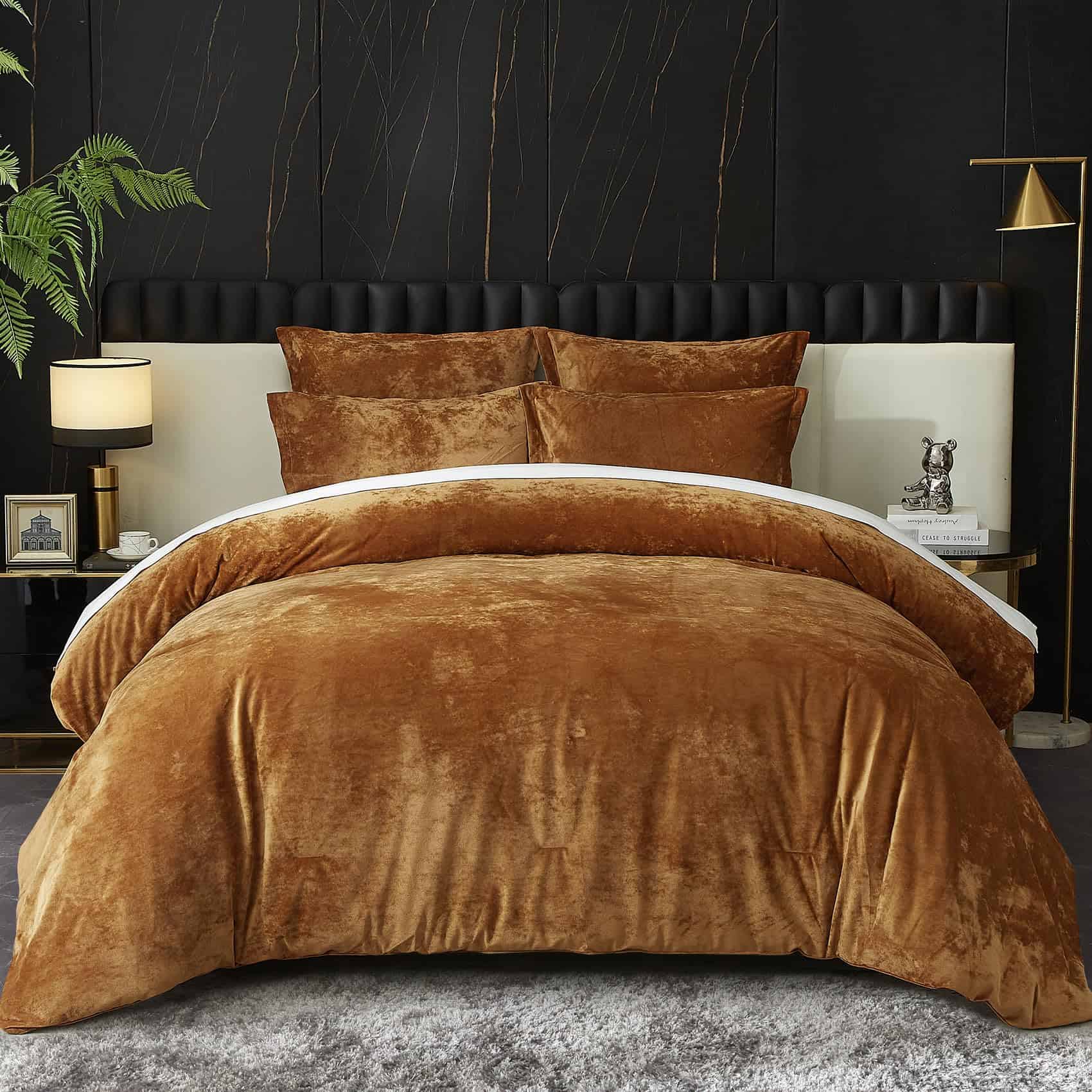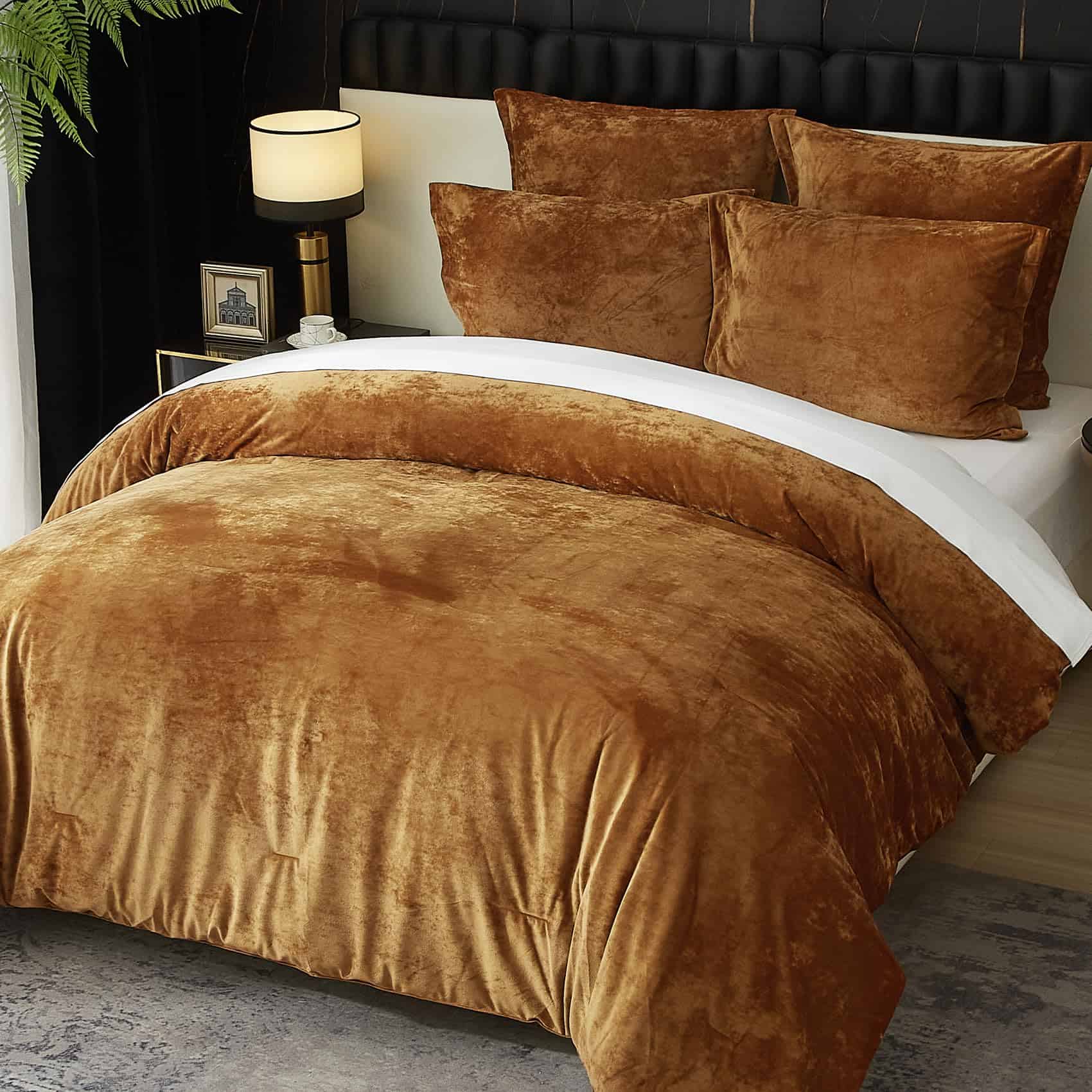 Juego de Edredón de Terciopelo Crushed Ivellow para Cama