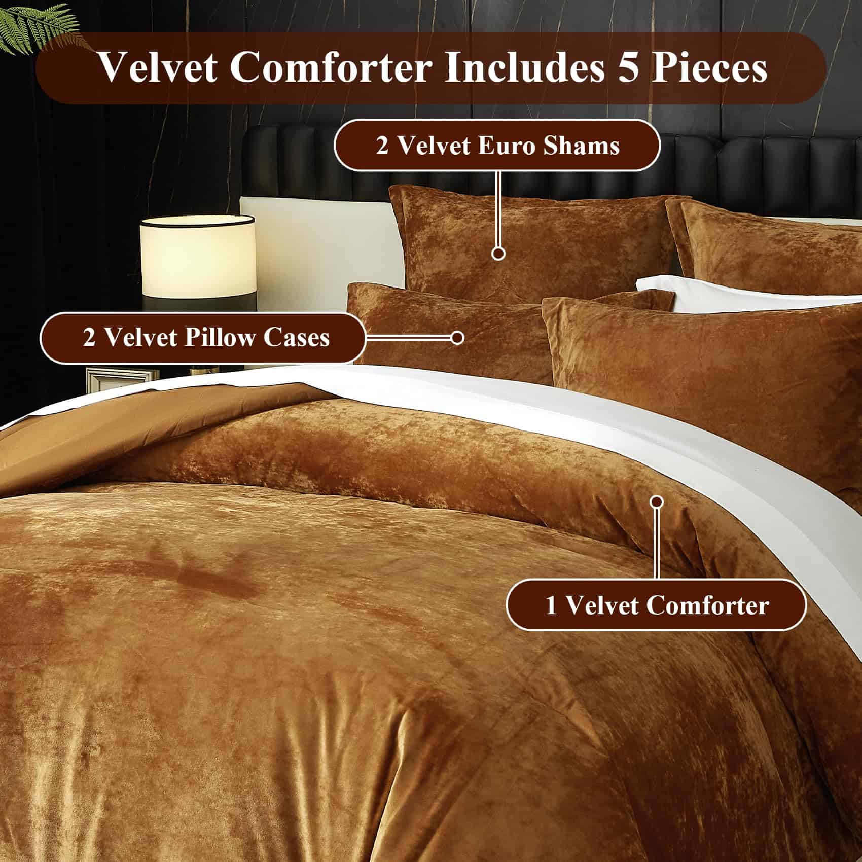 Juego de edredón de terciopelo Ivellow Crushed para cama King size, liviano y suave de 5 piezas. Nuestro juego de edredón de terciopelo aplastado para cama King incluye 1 edredón de terciopelo King 104 pulgadas (ancho) x 90 pulgadas (largo), 2 fundas de almohada de terciopelo King 20 pulgadas x 36 pulgadas con 2 pulgadas de volante, y 2 fundas de almohada Euro de terciopelo 26 pulgadas x 26 pulgadas con 2 pulgadas de volante. La tela de terciopelo elegida con una artesanía especial presenta un asombroso efecto de luz y sombra. Especialmente en el dormitorio, bajo las luces nocturnas, el edredón de color sólido pero moderno muestra una apariencia de contraste medio claro y medio oscuro, dando a tu dormitorio un estilo extraordinario y un atractivo lujoso. Nuestro juego de edredón ligero para todas las estaciones ofrece una colección de ropa de cama de tela ultra suave con la cantidad adecuada de relleno hipoalergénico alternativo a plumas. Nuestro acogedor juego de edredón te brindará la cantidad adecuada de calor y comodidad para un uso durante todo el año. Nuestro edredón de terciopelo es fácil de cuidar y seguirá siendo brillante y suave después de muchos lavados. Lavar a máquina en frío por separado con agua fría y colores similares, ciclo delicado, no usar lejía, para obtener mejores resultados, secar en línea o secar a temperatura baja, quitar inmediatamente.