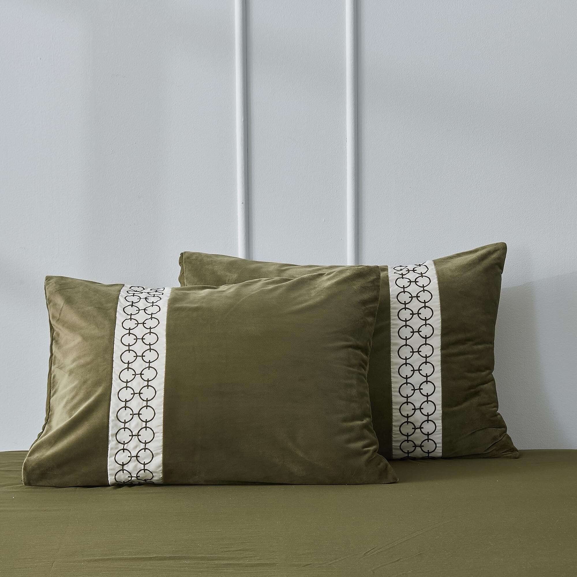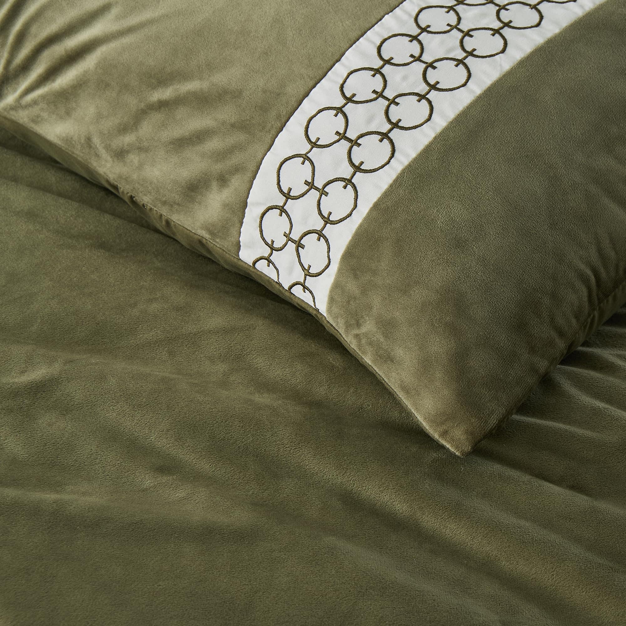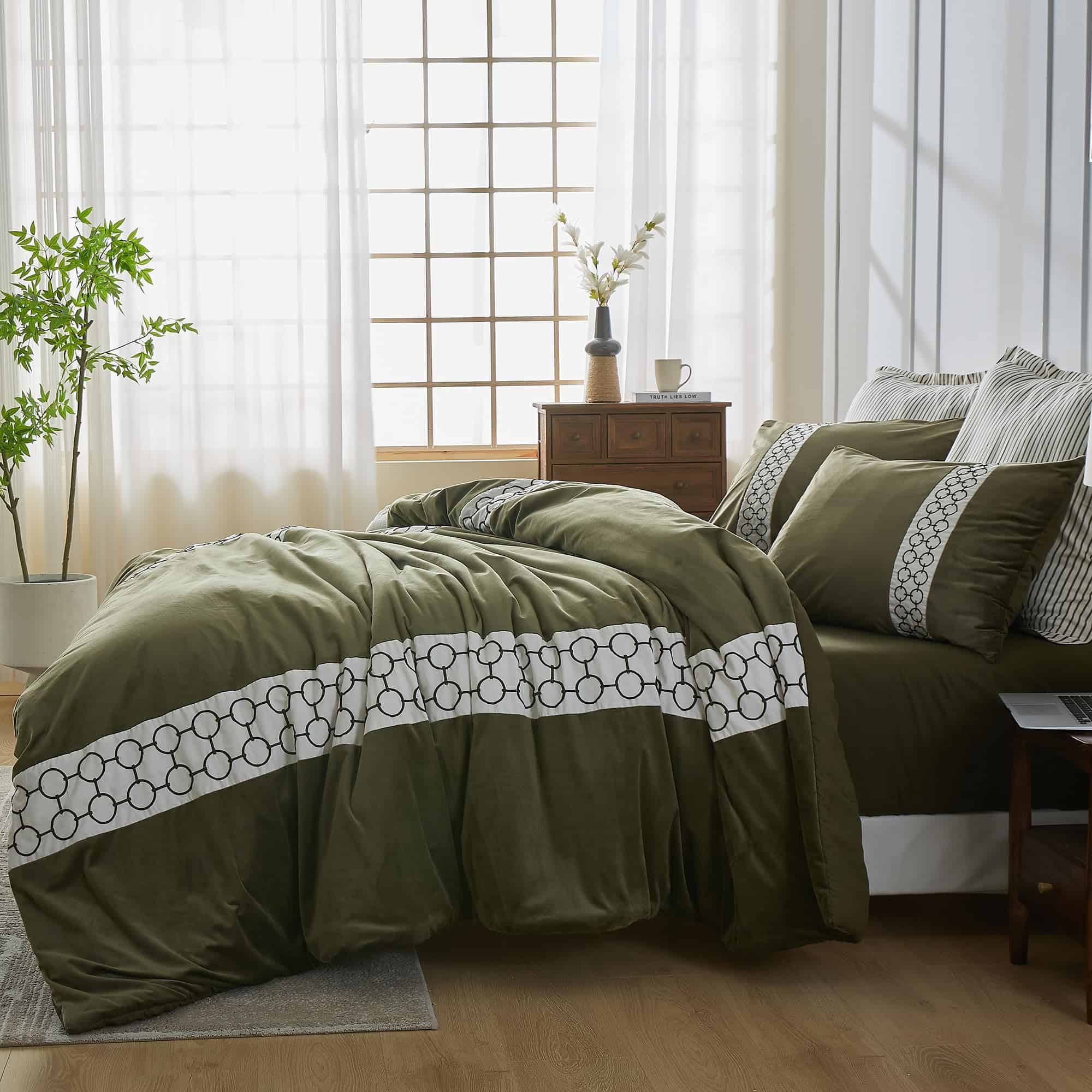 Transforma tu dormitorio en un refugio cálido y acogedor con el Edredón Maravilloso. Sus tonos rústicos en Verde Militar y sus lujosos tejidos aportan un toque de elegancia inspirada en lodges a tu espacio. El rostro del edredón presenta una textura de terciopelo de algodón suave al tacto, conocido por su suavidad y calidez, realzado con elegantes bordados. La parte trasera cuenta con un tejido de cepillado lavado suave y respetuoso con la piel, lo que lo convierte en una elección ideal para aquellos que valoran tanto la comodidad como el estilo en su ropa de cama. Los detalles añaden un toque personalizado, convirtiendo tu cama en una pieza declarativa. Este set de 3 piezas incluye todo lo que necesitas para un look cohesivo: edredón king (106″ x 94″), 2 fundas de almohada (20″ x 36″). Las almohadas cuentan con intrincados bordados e inlayers, complementando perfectamente los tejidos de la parte superior de la cama. Experimenta el equilibrio perfecto entre calidez y comodidad con este edredón. El tejido de microterciopelo está diseñado para mantenerte acogedor durante el invierno mientras sigue siendo lo suficientemente ligero para la comodidad en los meses más cálidos. Nuestros juegos de edredón cuentan con la certificación Oekotex 100, lo que garantiza que está libre de más de 400 sustancias nocivas para una elección segura y responsable. Disfruta de la conveniencia de ropa de cama lavable a máquina. Simplemente sigue las instrucciones de cuidado para un mantenimiento sin complicaciones, asegurando que tu set se mantenga fresco y hermoso durante todo el año.
