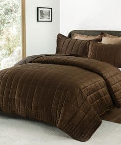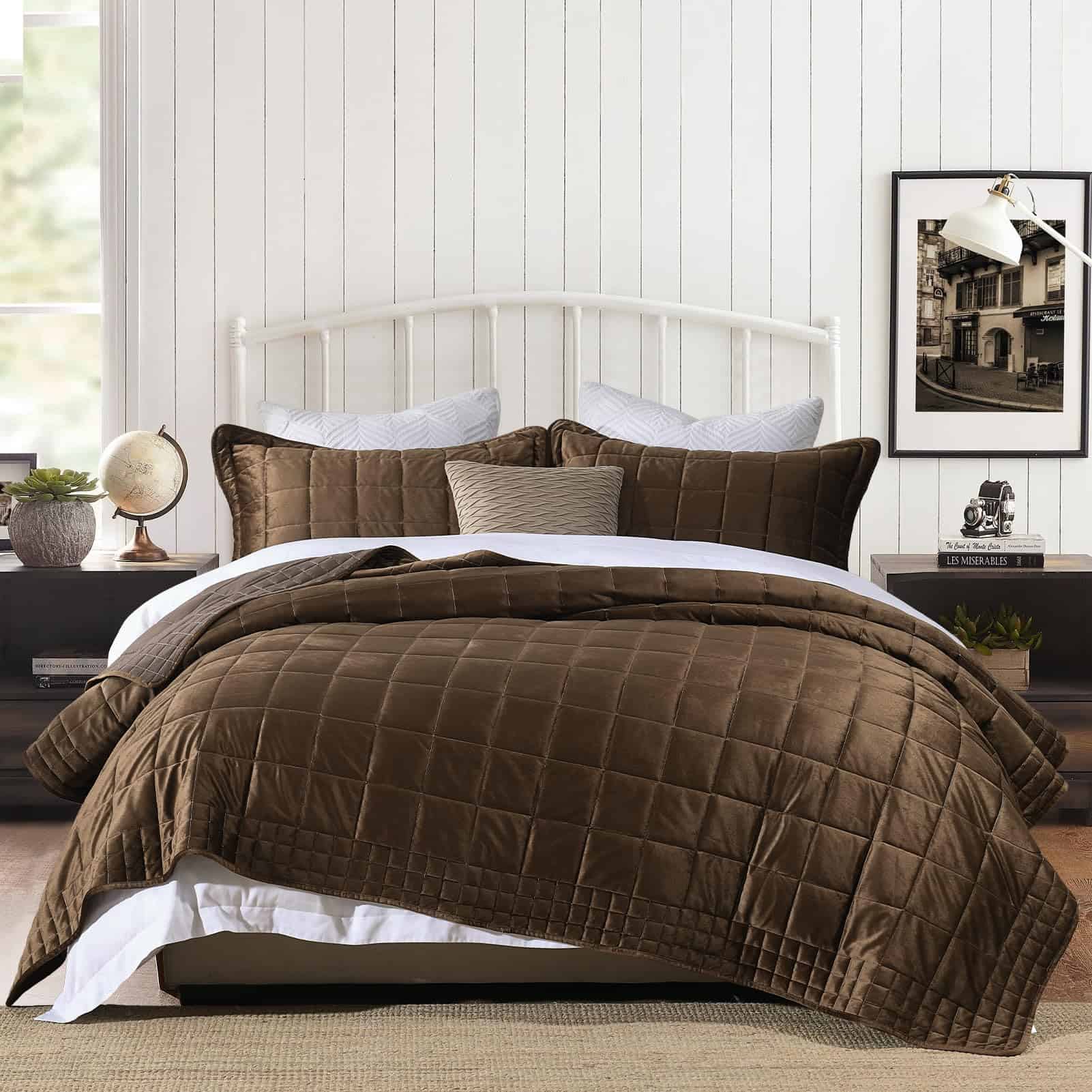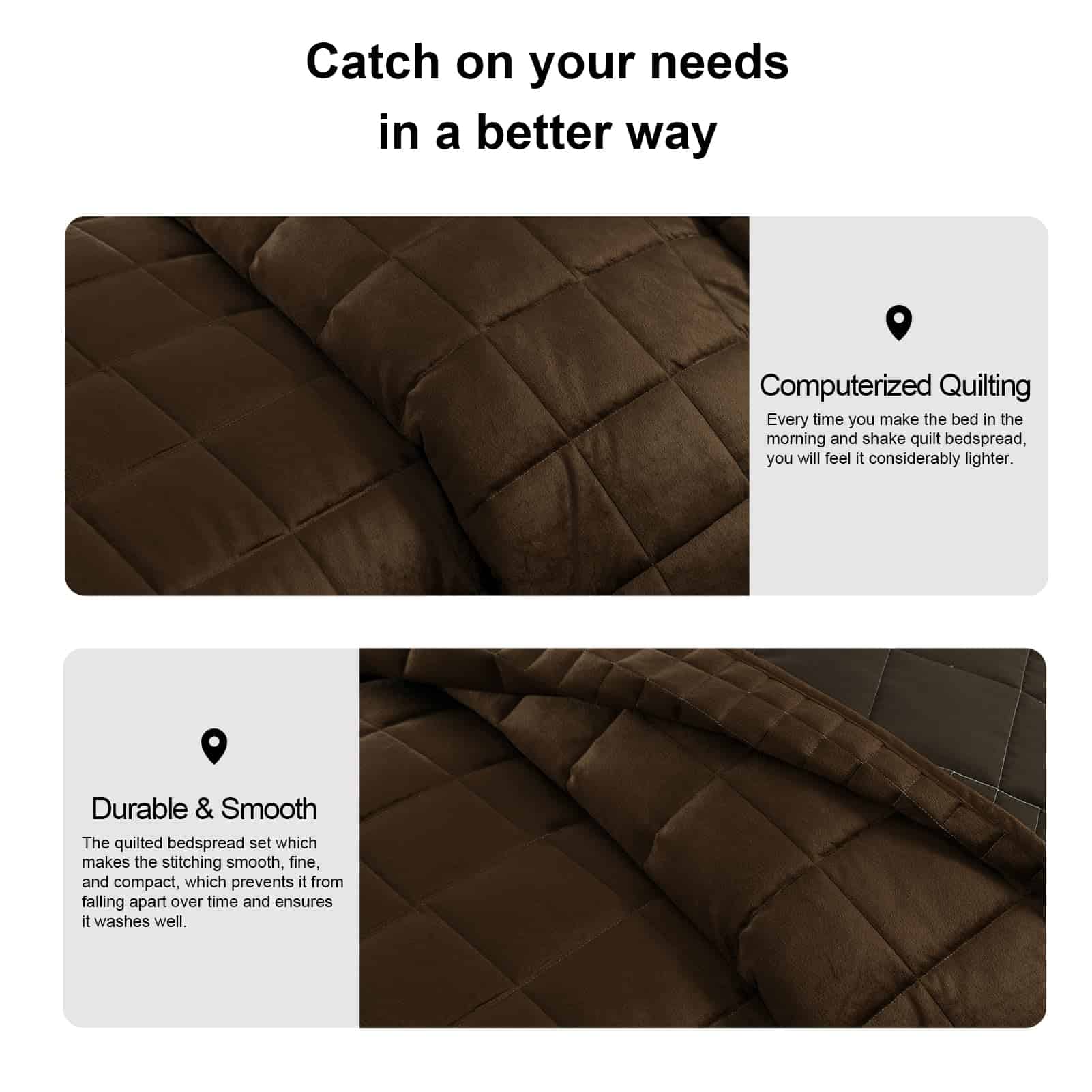 1. Elegantemente decorativo: este elegante juego de edredón de terciopelo presenta una apariencia hermosa y chic. Con una textura y sensación ultra suaves, creando un brillo rico e acogedor que varía en tonos de color según el ángulo y la iluminación, los puntos de acolchado geométricos uniformes hacen que sea más elegante. Todo esto lo convierte en una excelente adición para refrescar la decoración de tu habitación y hogar.