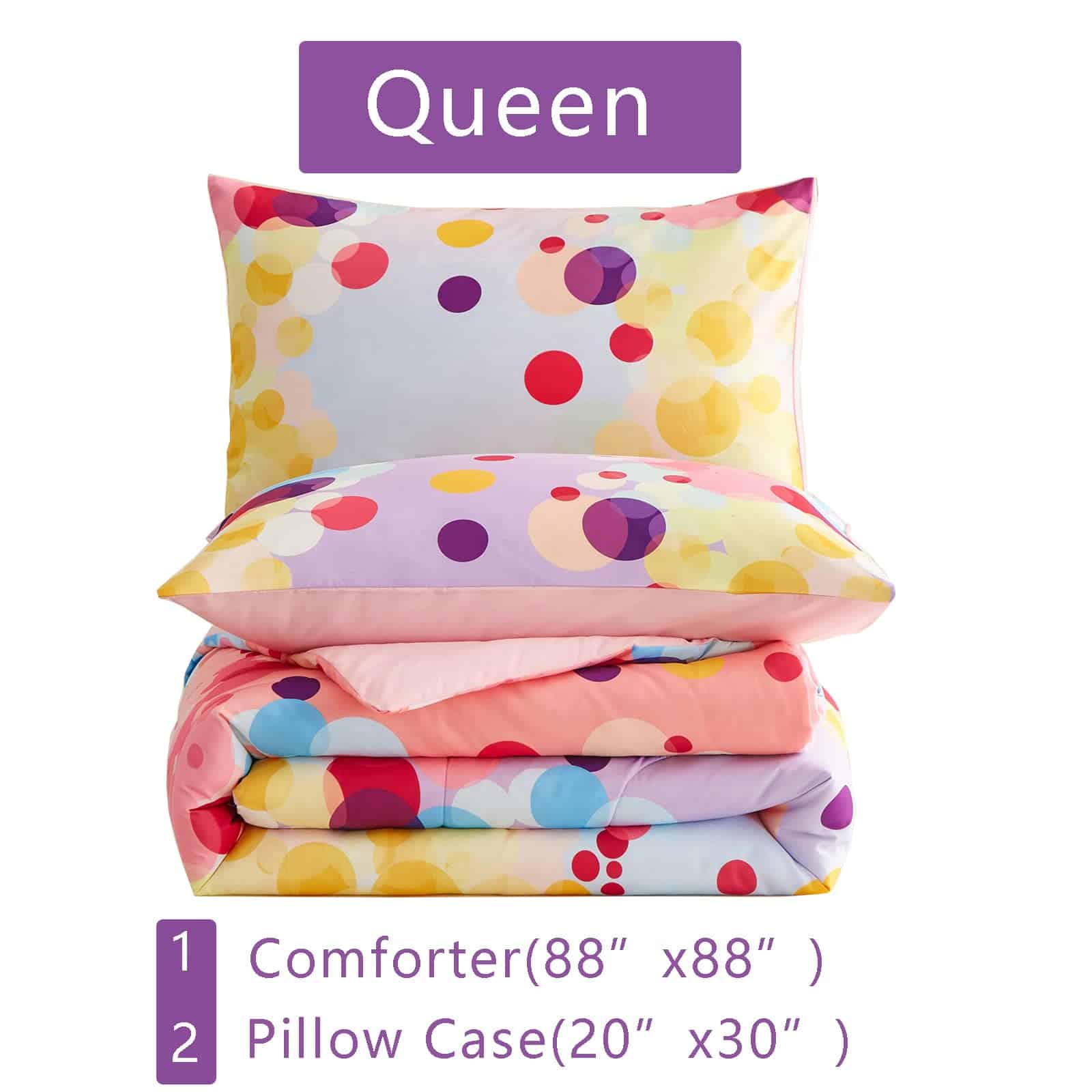 2. Juego de 3 piezas Queen: 1 edredón de tamaño queen de arco iris (88 x 88 ), 2 fundas de almohada (20 x 30 ).