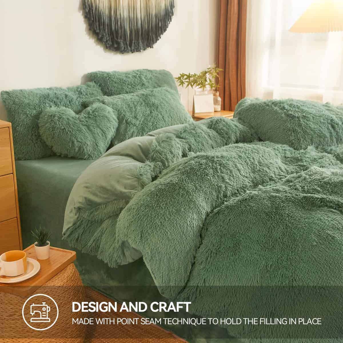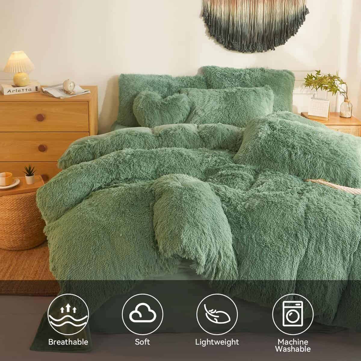 Juego de edredón esponjoso verde Queen/Conforter de
