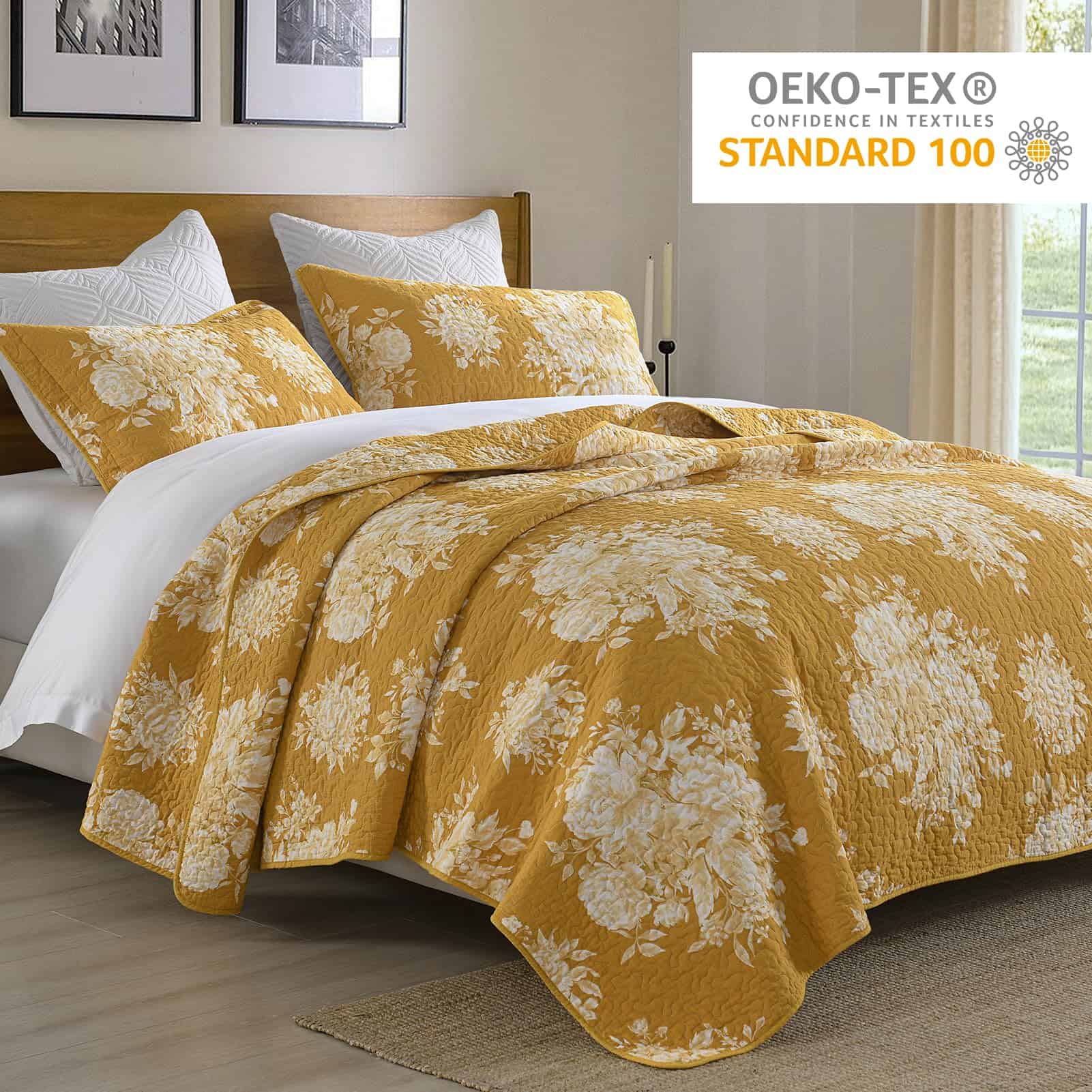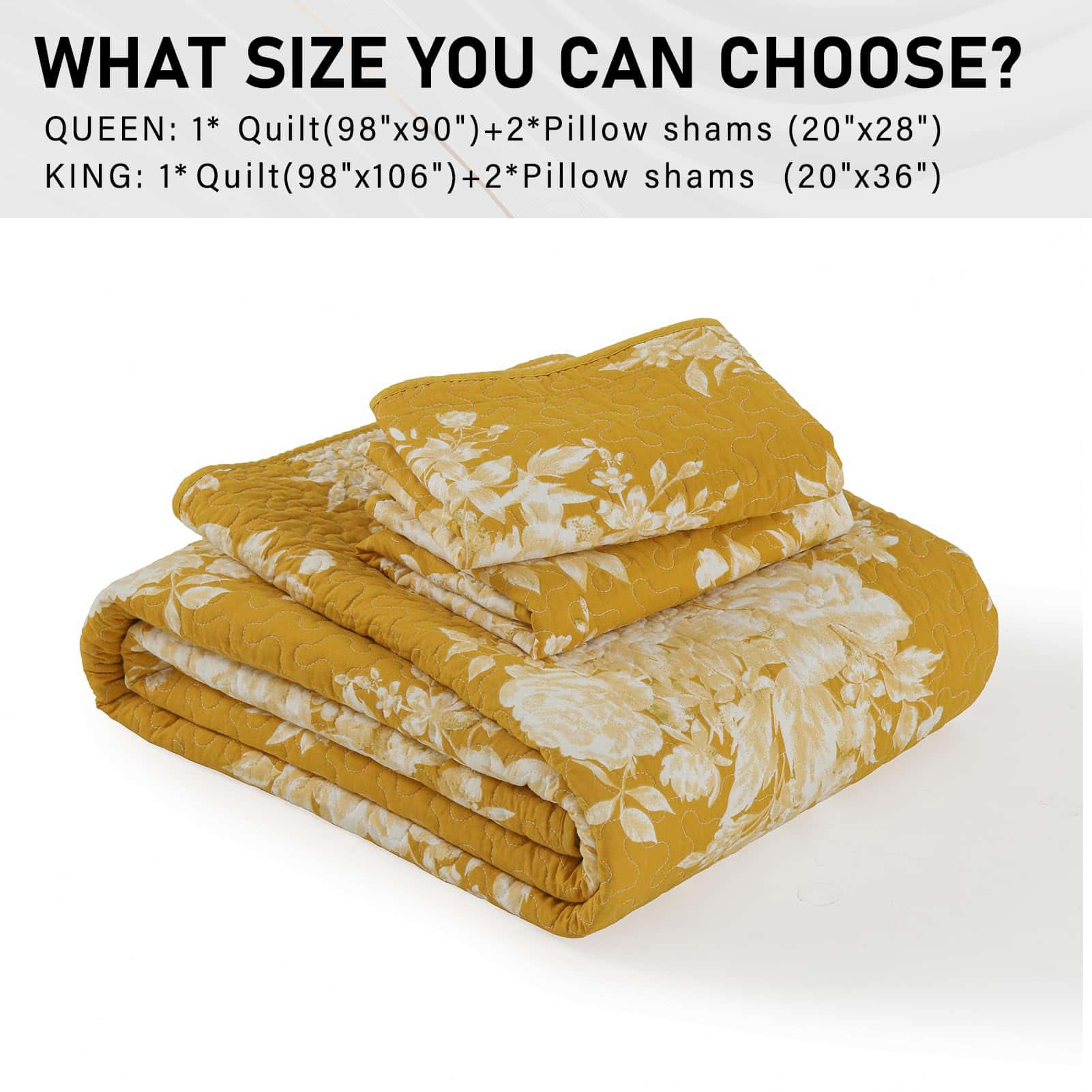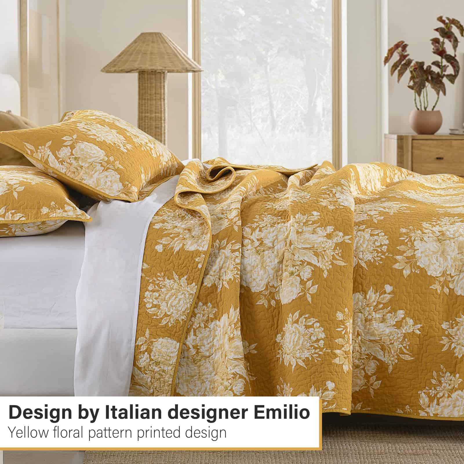 Juego de edredón estampado floral amarillo PERHOM en tamaño