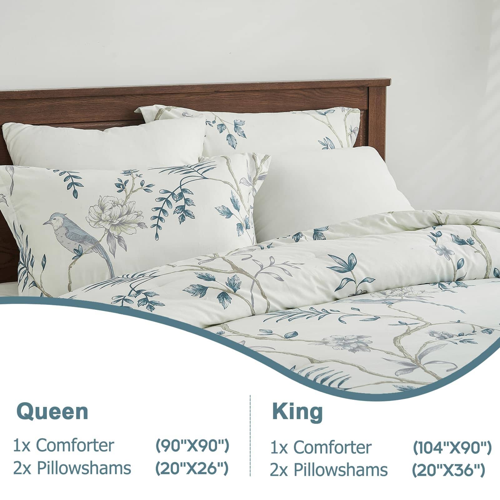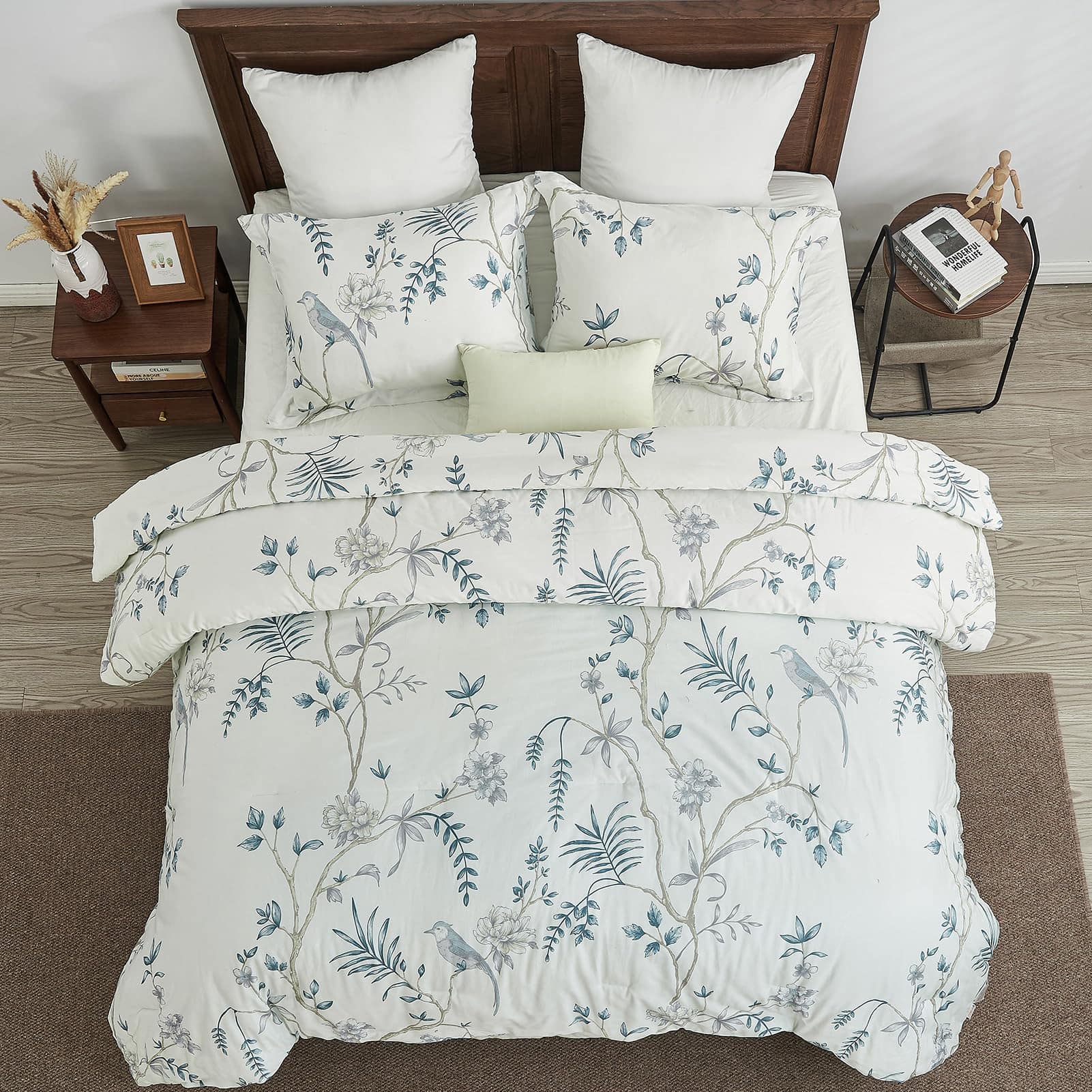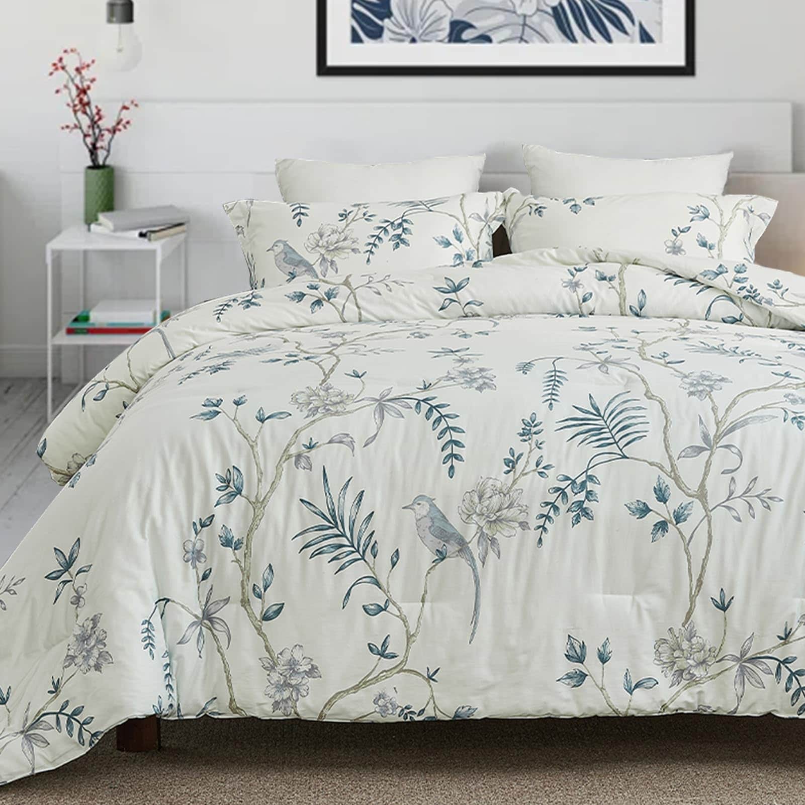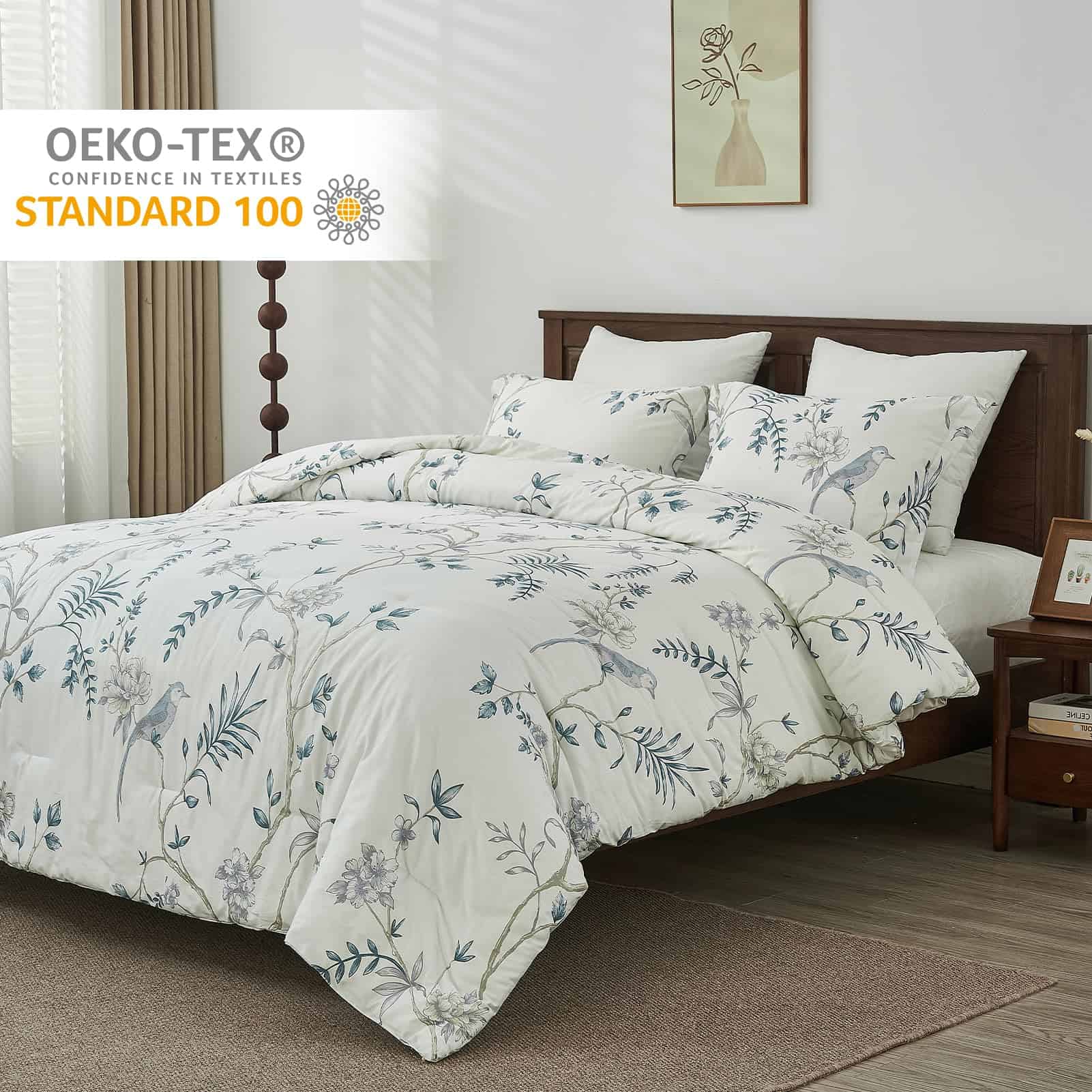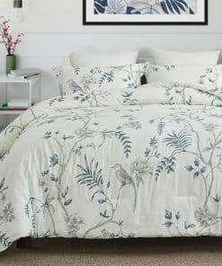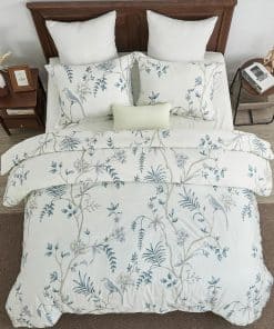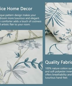 El diseño exquisito y simplista de este juego de edredón agrega un toque artístico a tu habitación, con un patrón de paisaje floral en tonos de azul e índigo sobre un fondo blanco. Tanto los lados del edredón están adornados con estos hermosos diseños, lo que lo convierte en un complemento perfecto para tu decoración. Además, con su certificación Oeko-Tex Standard 100, puedes dormir tranquilo sabiendo que este edredón está libre de sustancias químicas dañinas.