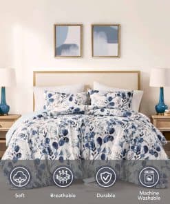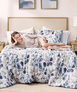 Juego de edredón Codi para mujer con un diseño floral en tonos de lavanda y morado. Este juego incluye un edredón de flores y dos fundas de almohada a juego. El suave tejido Seersucker ofrece una sensación fresca, suave y cómoda, perfecta para una noche de sueño reparador. El color lavanda aporta tranquilidad y la intrincada floración añade un toque de vitalidad a tu dormitorio. Este juego de edredón es ideal como regalo para tus seres queridos, ya que transmite calidez y amor. Mantén este juego de cama botánico lavándolo por separado en agua fría y usando el ciclo suave. No blanquear. El paquete incluye un edredón queen de 66″ x 90″ y dos fundas de almohada de 20″ x 26″.