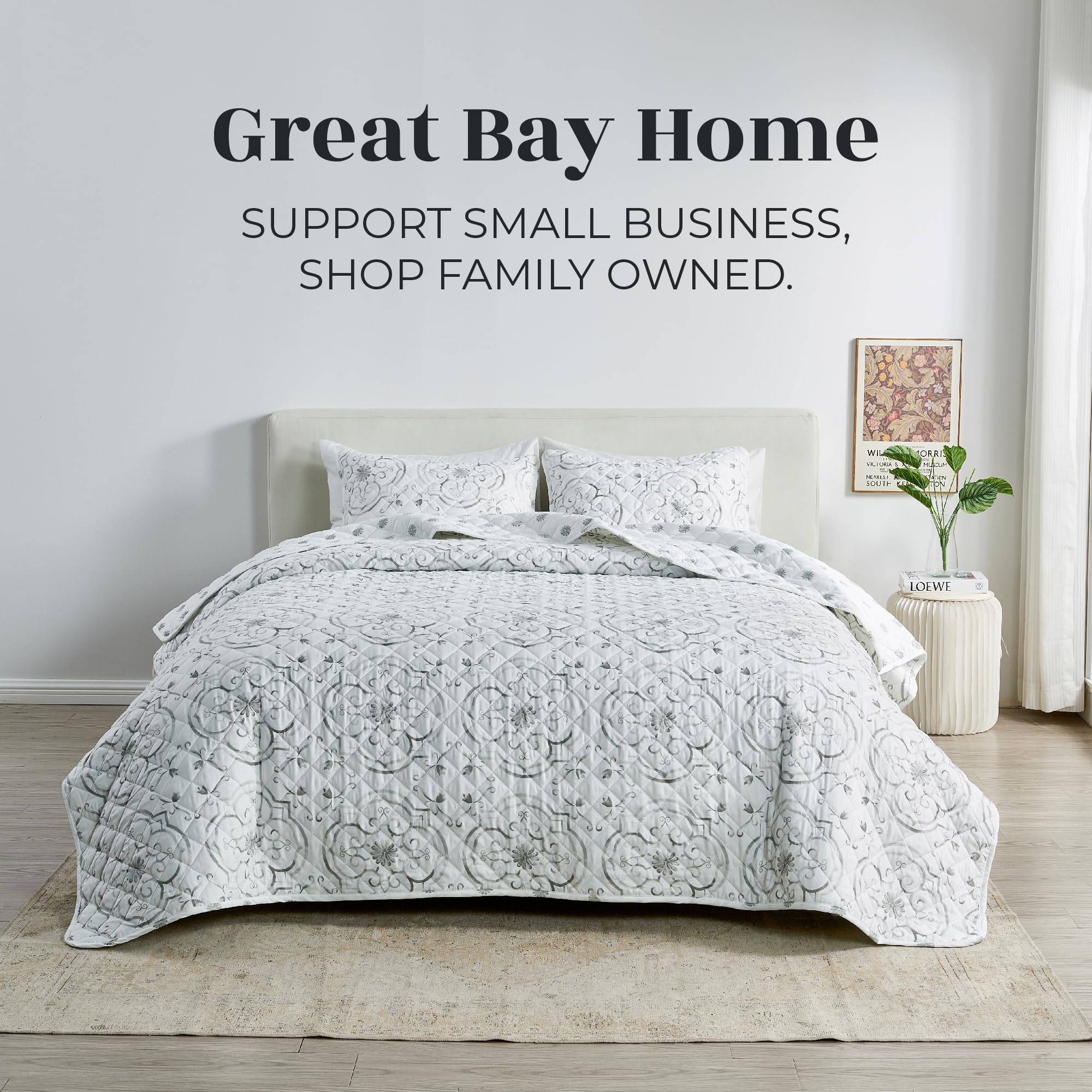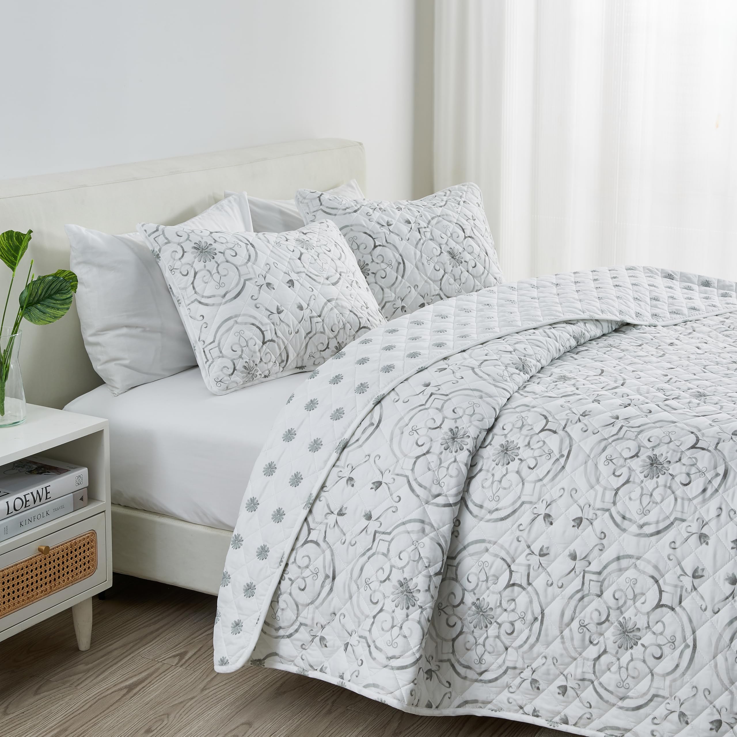 Juego de Edredón Floral King Size | Edredón Floral Gris