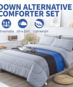 El juego de edredón gemelo Andency en azul gris es la elección perfecta para agregar un toque moderno y elegante a tu habitación. Con un patrón a rayas conciso y un patchwork de 3 colores, este edredón gemelo seguramente se convertirá en el centro de atención de tu habitación. La microfibra de doble cepillado seleccionada garantiza una suavidad tipo nube, ofreciéndote un edredón alternativo de alta calidad a un menor costo. Este edredón es transpirable y cómodo en todas las estaciones, manteniéndote cálido en invierno y fresco en verano para un sueño placentero y acogedor. La tecnología de relleno de microfibra distribuida en espiral 3D garantiza un relleno adecuado que se mantiene ligero y esponjoso, sin desplazamientos ni apelmazamientos. Las costuras exquisitas mejoran la conexión entre los tejidos sobrellenados, garantizando la durabilidad del edredón. Además, es fácil de cuidar, ya que se puede lavar a máquina y secar al aire o secar a baja temperatura. El juego de edredón gemelo Andency incluye un edredón de 66×90 pulgadas con esquineras (que se puede fijar con una funda de edredón) y una funda de almohada de 20×26 pulgadas con cierre de sobre. La funda de almohada presenta un patrón aleatorio debido al corte manual. Si tienes alguna necesidad o pregunta, no dudes en contactarnos por correo electrónico. Tu satisfacción es nuestra máxima prioridad.