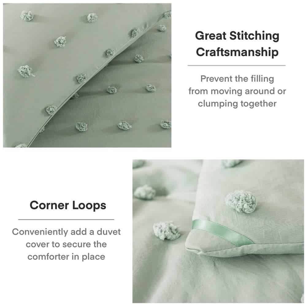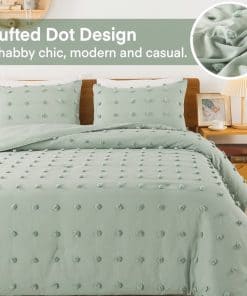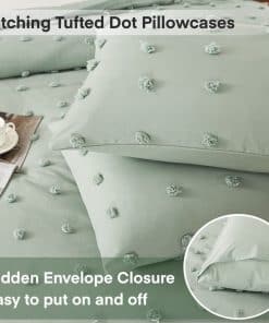 1. Diseño de bordado de topos de chenille: Encantadores lunares de textura acolchada están dispersos por este juego de edredón verde salvia, respaldado con una sábana de algodón plana que es tan suave al tacto. La belleza y la función están perfectamente integradas en este juego de edredón gemelo de lunares acolchados. 2. Suave y duradero: La parte delantera del juego de edredón Paxrac está hecha de 70% algodón y 30% microfibra y su reverso está hecho de 100% algodón. La microfibra al 30% hace que el edredón sea menos probable que se encoja o arrugue después del lavado. Mezcla de algodón al 70% y microfibra al 30% con tratamiento de lavado a la piedra que hacen que la tela tenga ventajas complementarias de transpirabilidad, suavidad y resistencia a la decoloración y a las arrugas. 3. Exquisita mano de obra y ligero y esponjoso: Este edredón ligero no ejercerá presión hacia abajo sobre tu cuerpo. Dormirás en una nube con este edredón de algodón, acentuado con topos acolchados por todas partes. La artesanía de costura única de Paxrac mantiene el relleno del edredón en su lugar y distribuido de manera uniforme, y evita que el relleno se mueva o se agrupe. Con bucles en las esquinas, puedes añadir fácilmente un cubrecamas para fijar el edredón gemelo en su lugar. 4. Cuidado fácil y apto para mascotas: Lavable a máquina en ciclo suave con agua fría por separado. Secar al aire o en secadora a baja temperatura. No usar lejía. Nuestro juego de edredón de cama no atrae el pelo de tus mascotas. Soporta las patas y los cepillos de pelo de perro/gato y se cepilla fácilmente. Adecuado para todas las estaciones. 5. Tamaño y medida: Gemelo: 1 edredón (66×90 pulgadas) y 1 funda de almohada (20×26 pulgadas). Completo: 1 edredón (80×90 pulgadas) y 2 fundas de almohada (20×26 pulgadas). Reina: 1 edredón (90×90 pulgadas) y 2 fundas de almohada (20×26 pulgadas). Rey: 1 edredón (90×104 pulgadas) y 2 fundas de almohada (20×36 pulgadas). Excelente elección para tus habitaciones de invitados y habitación principal. Regalos modernos para adolescentes, niños, niñas, hombres o mujeres.